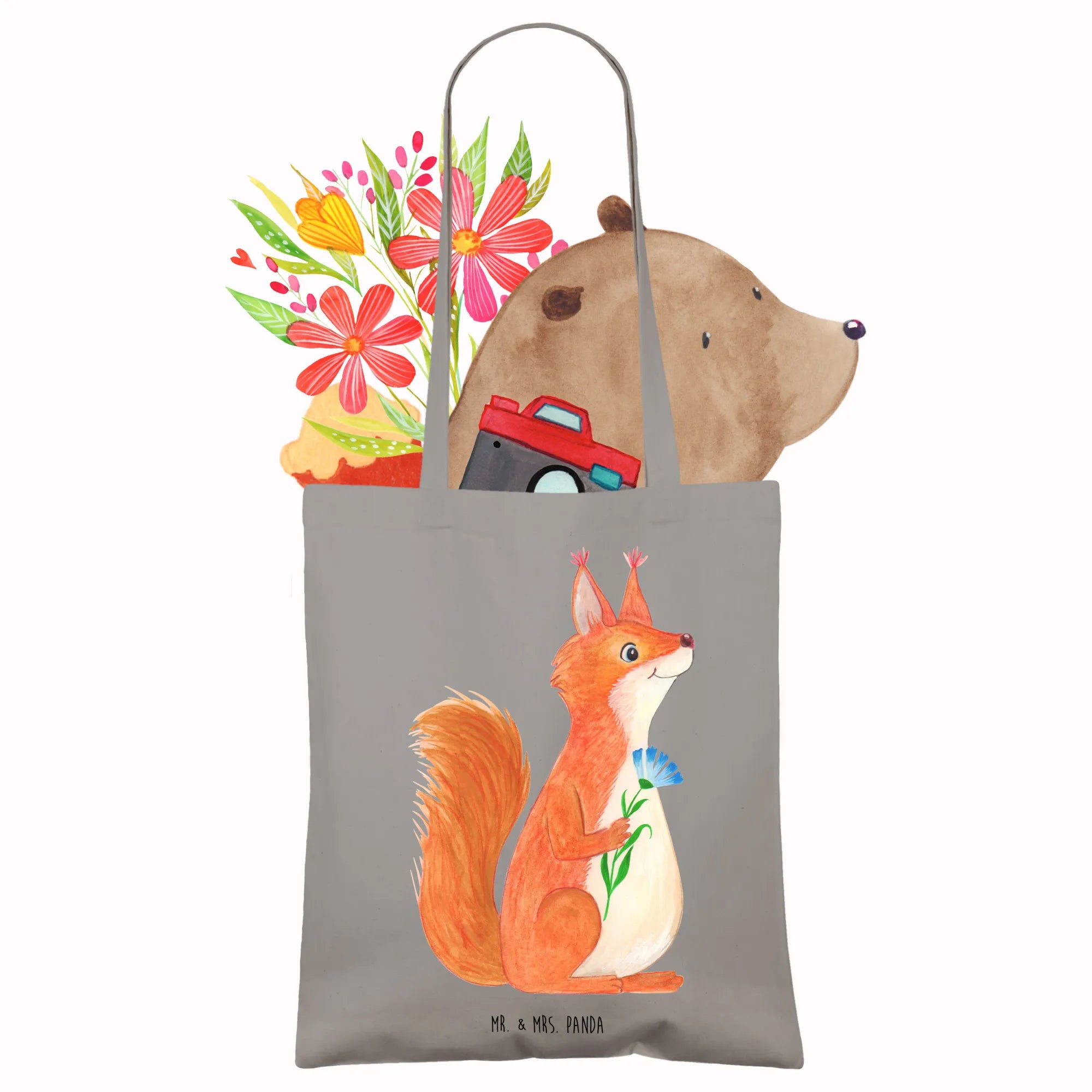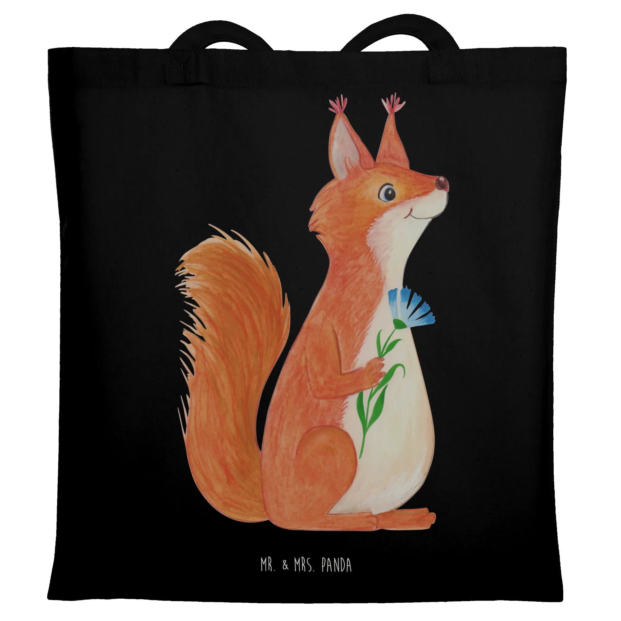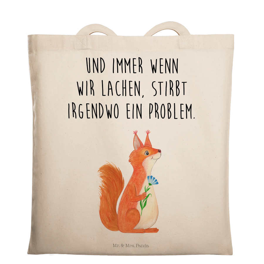 Tote bag Squirrel flower - with saying - Transparent