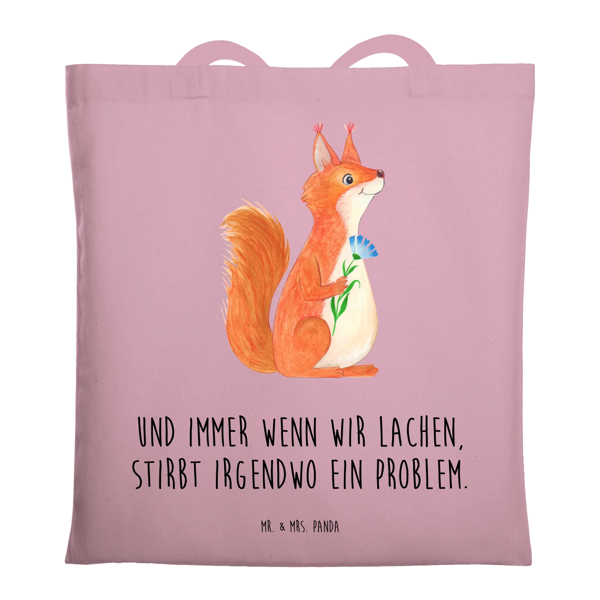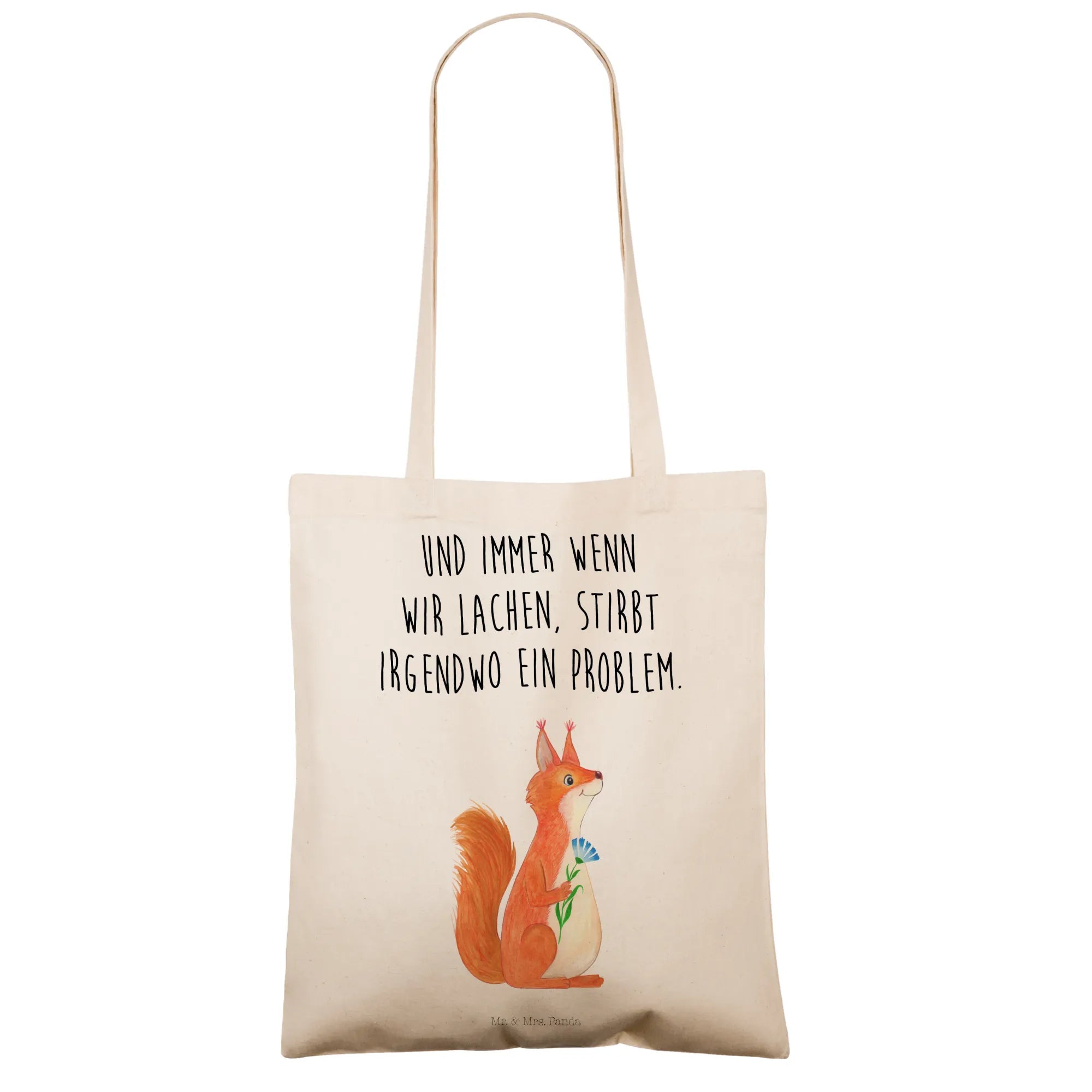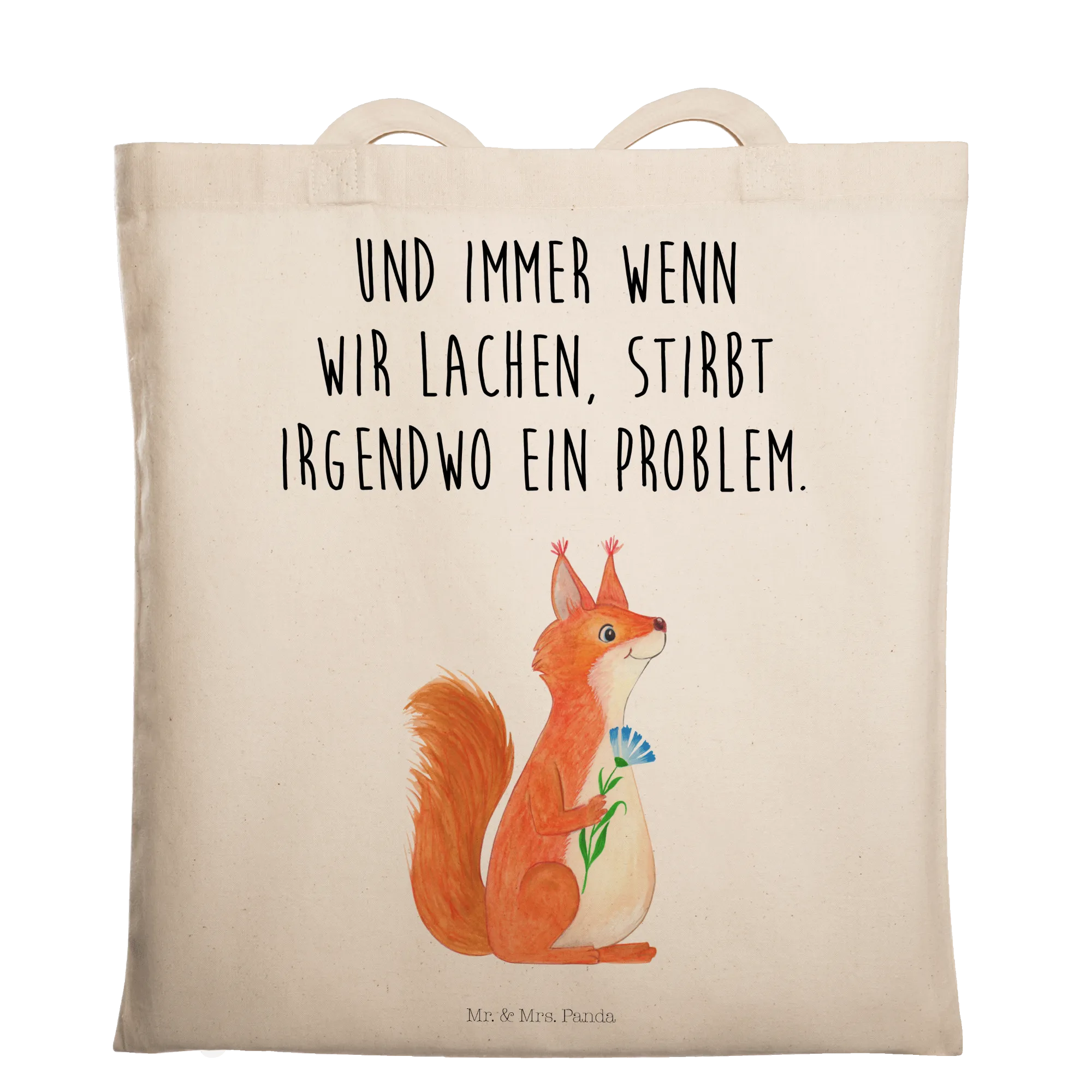 Tote bag Squirrel flower - with saying - Transparent