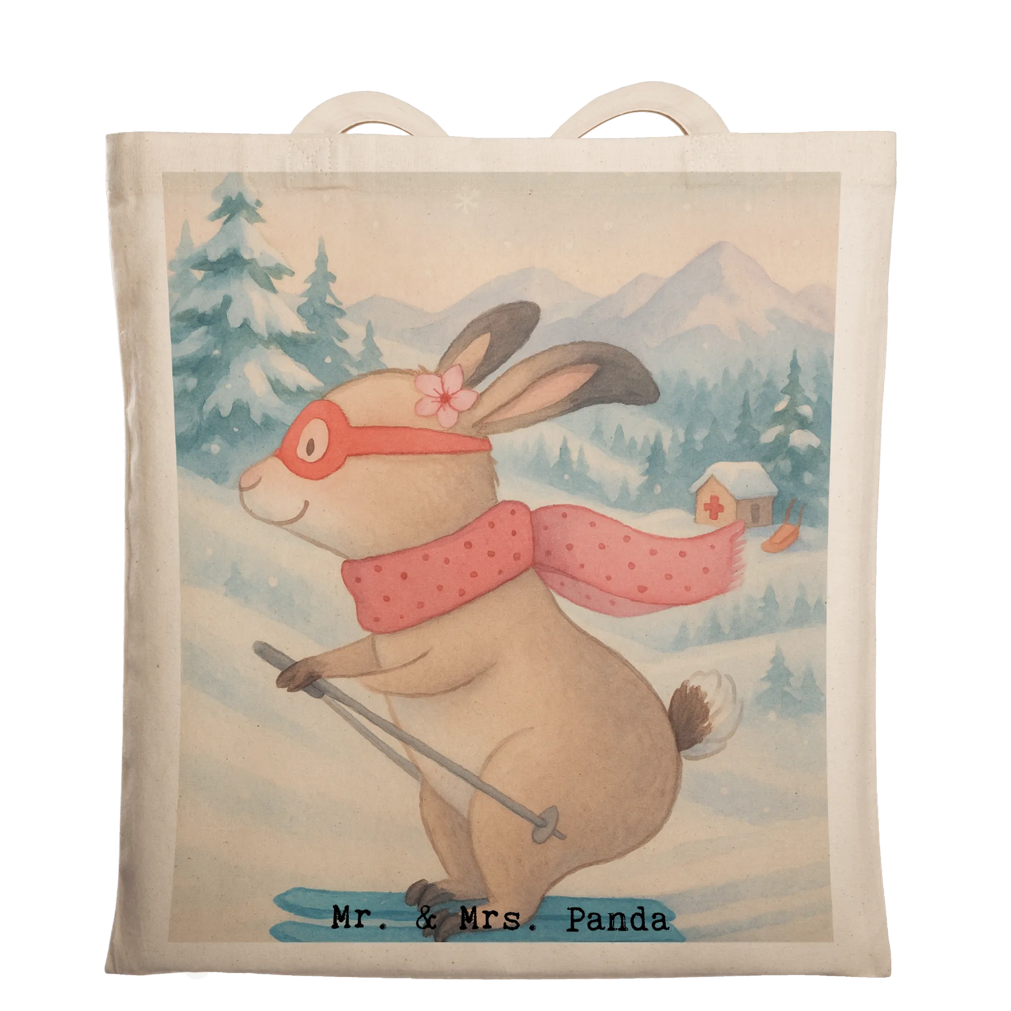 Bär Skifahren Medizin – Mr. & Mrs. Panda: Hase im Skiwettbewerb-Look mit Skibrille & Schal | Winterliche Geschenkideen
