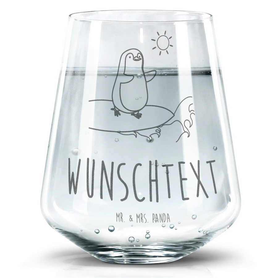 Personalized Drinking Glass Penguin surfer