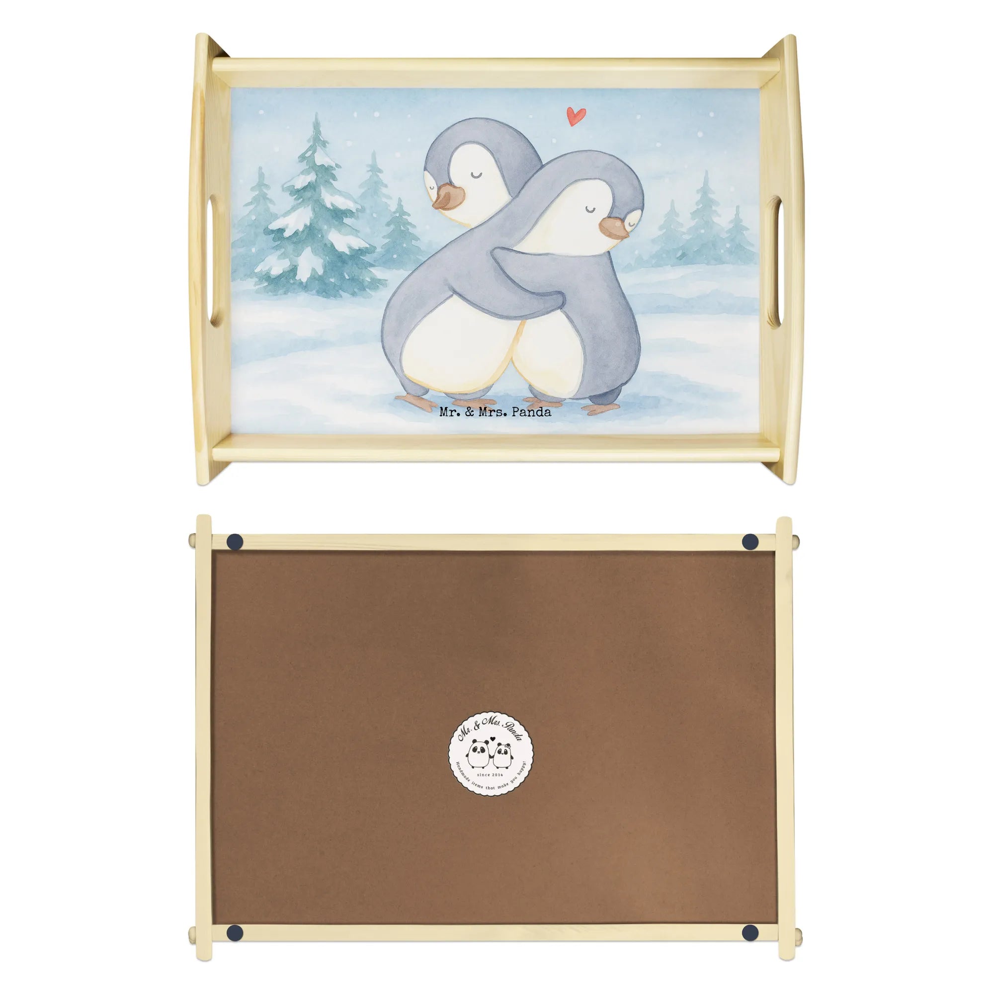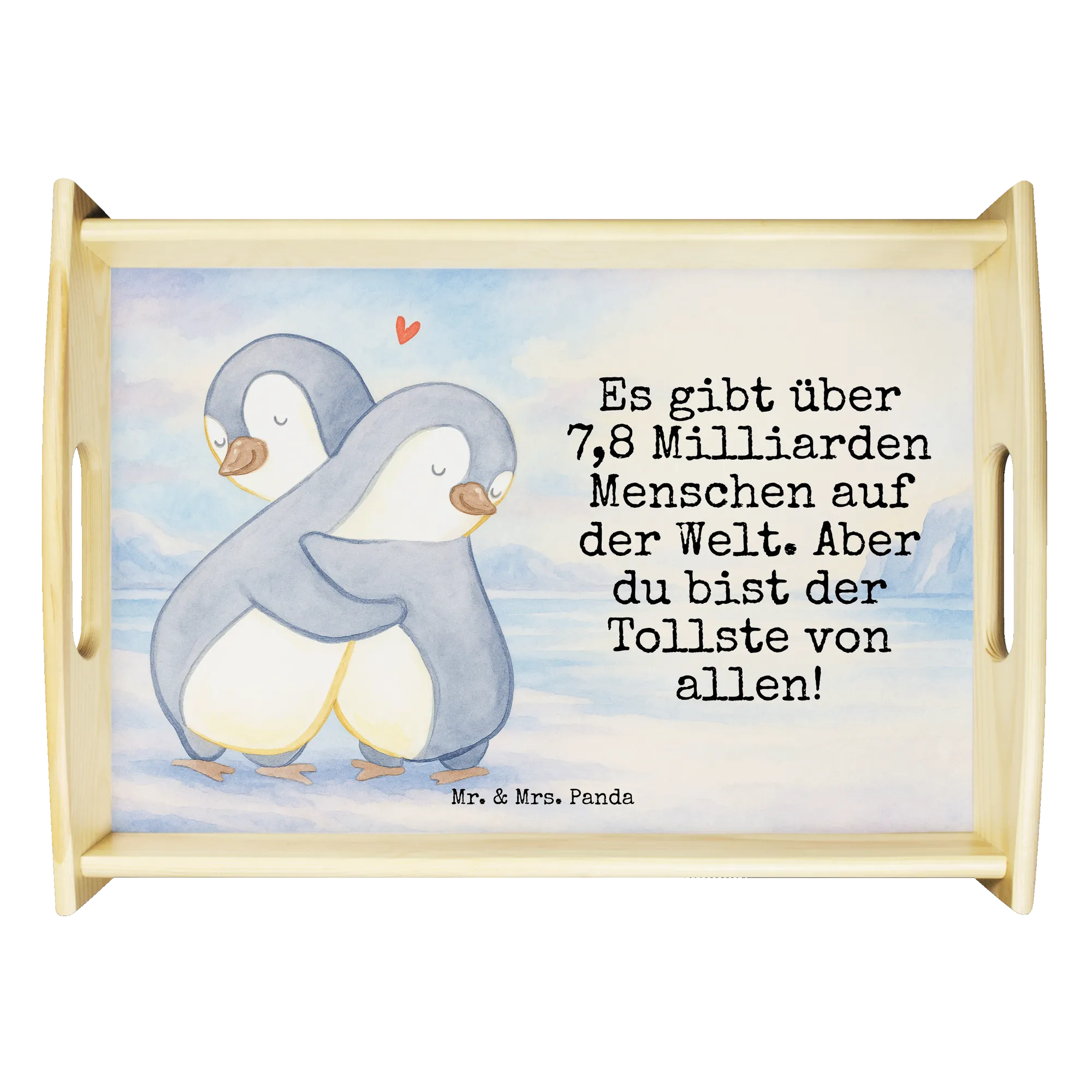 Serving tray penguins Cuddle Design - with saying
