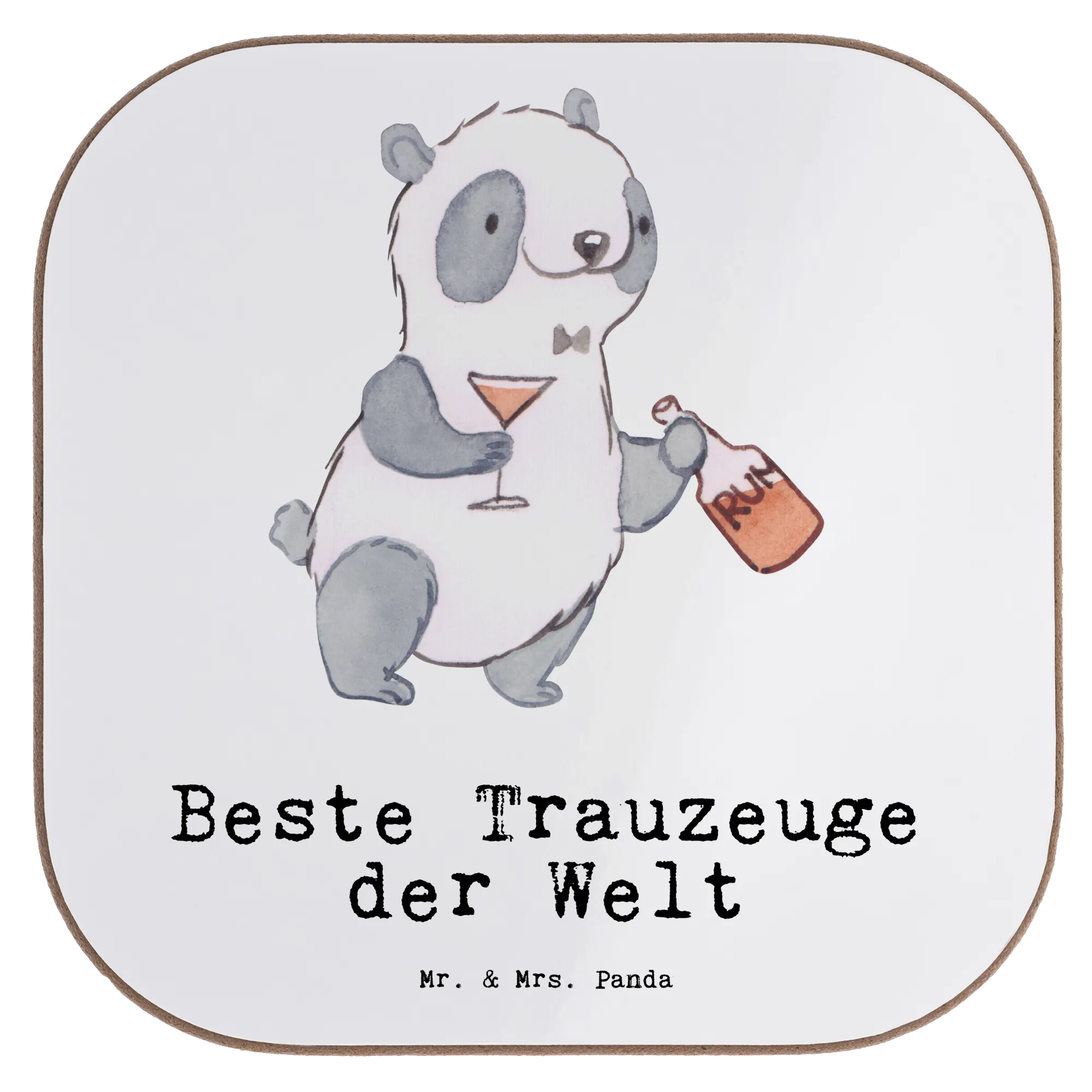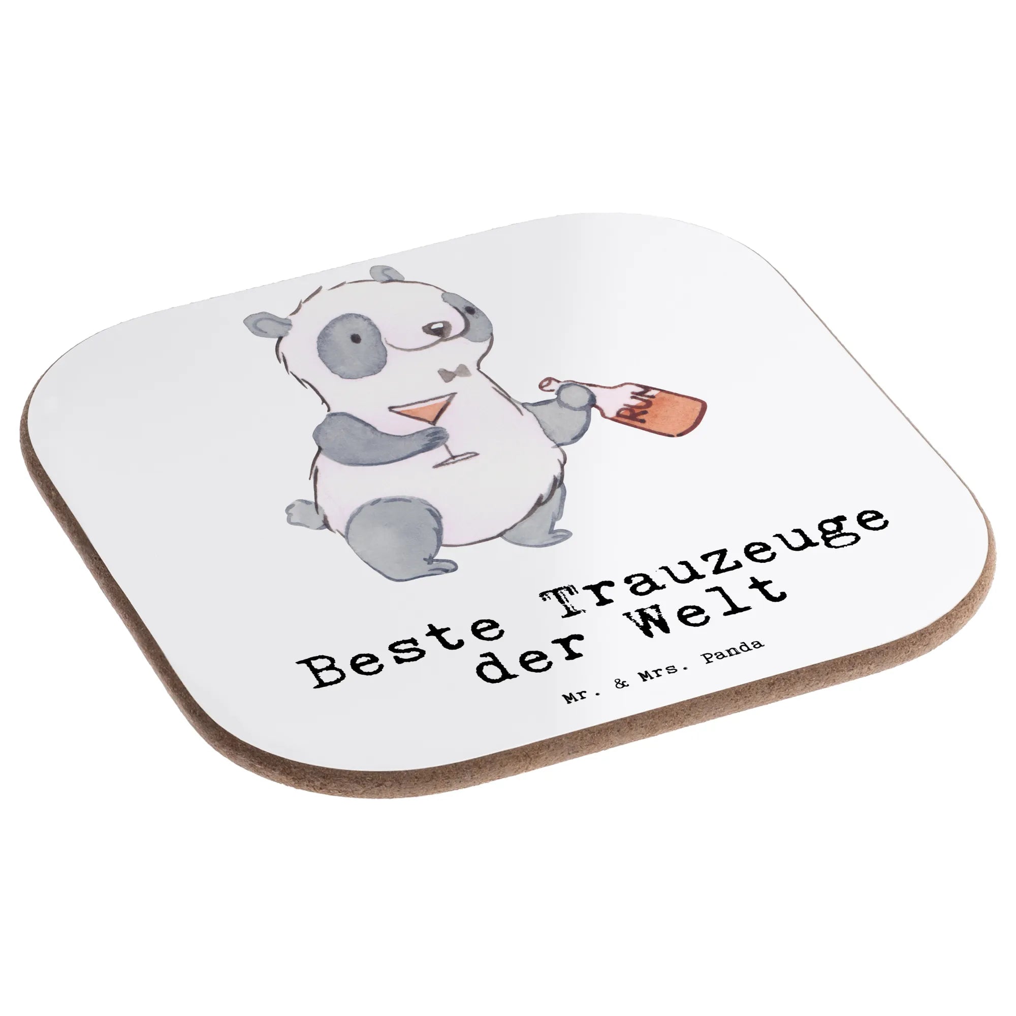 Picture a charming panda, looking dapper with a rum bottle in one hand and a glass in the other. This whimsical motif captures the essence of what it means to be the best man - a title that carries honor and joy. With our slogan, 'Bester Trauzeuge der Welt', we pay homage to that fabulous friend who stands by the groom, guiding him through the marriage whirlwind. Whether during a formal wedding ceremony in a church or an intimate registry office moment, this panda celebrates the joy of friendship, laughter, and bonding over shared experiences. It’s a beautiful reminder of the support that best men offer, from spearheading the JGA adventures to delivering unforgettable speeches that set the tone for a magical night.