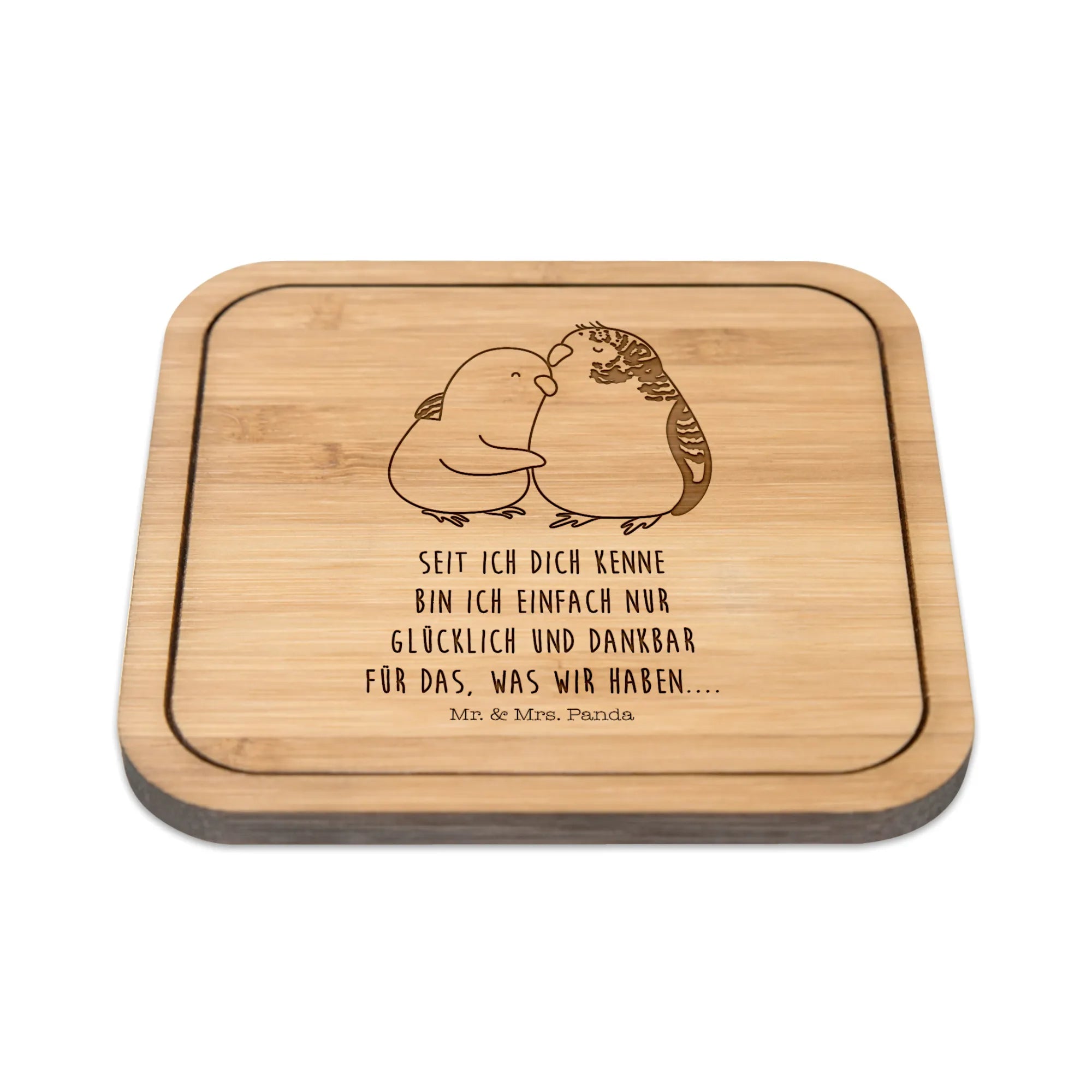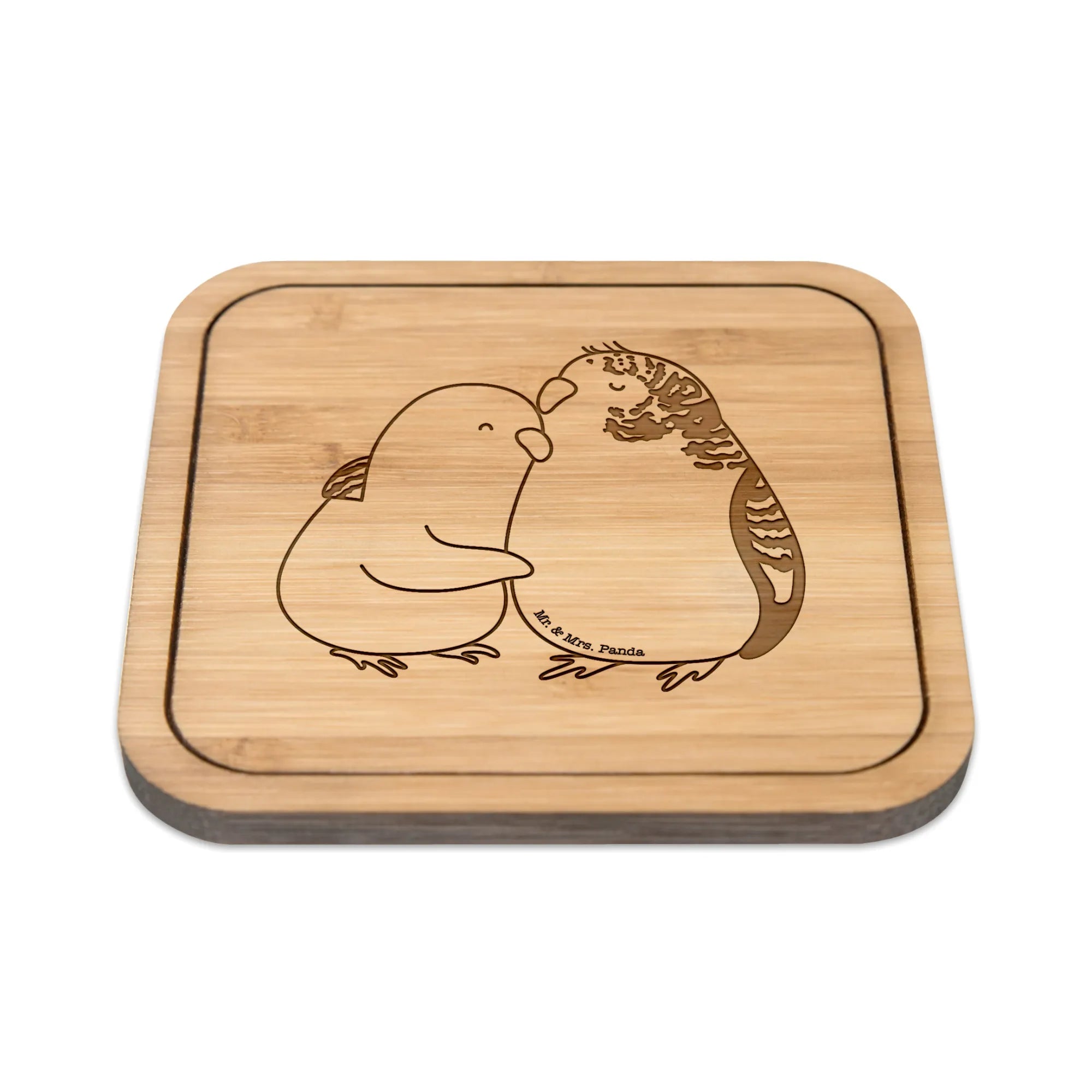 Square coaster Parakeets in love - with saying