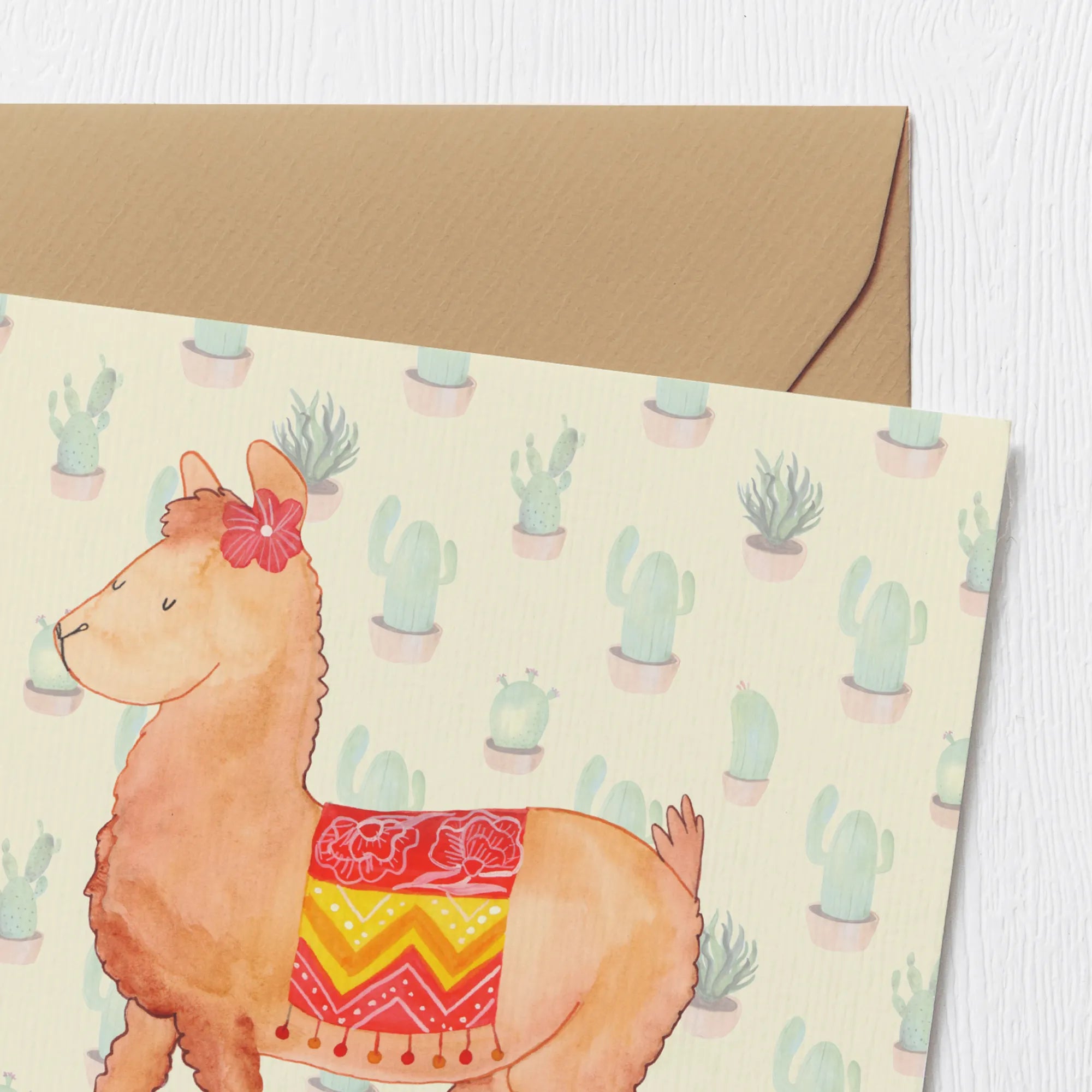 Entdecke die Deluxe Karte "Alpaka stolz" von Mr. & Mrs. Panda, die perfekte Grußkarte für all deine besonderen Anlässe. Diese hochwertige quadratische Karte misst 140 mm x 140 mm und ist aus edlem, 300 Gramm schweren Karton gefertigt.