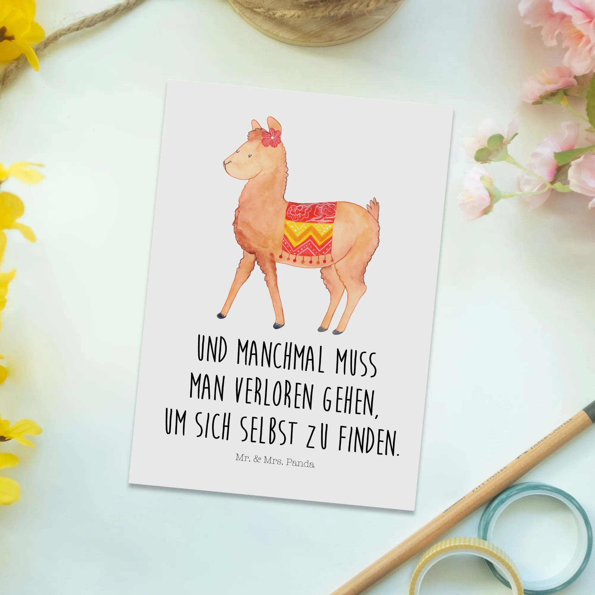 Pocztówka alpaka Dumny - z napisem - biały