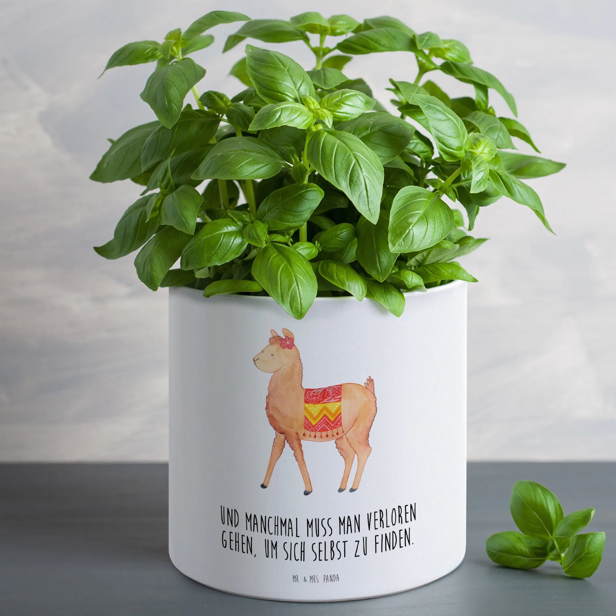 Der XL Blumentopf "Alpaka stolz" von Mr. & Mrs. Panda ist die perfekte Geschenkidee für alle Pflanzenliebhaber und Alpaka-Fans. Mit einem Durchmesser von 142 mm und einer Höhe von 135 mm bietet dieser hochwertige Keramiktopf ausreichend Platz für deine grünen Lieblinge, sei es ein duftendes Kräuterbeet oder eine auffällige Zimmerpflanze.