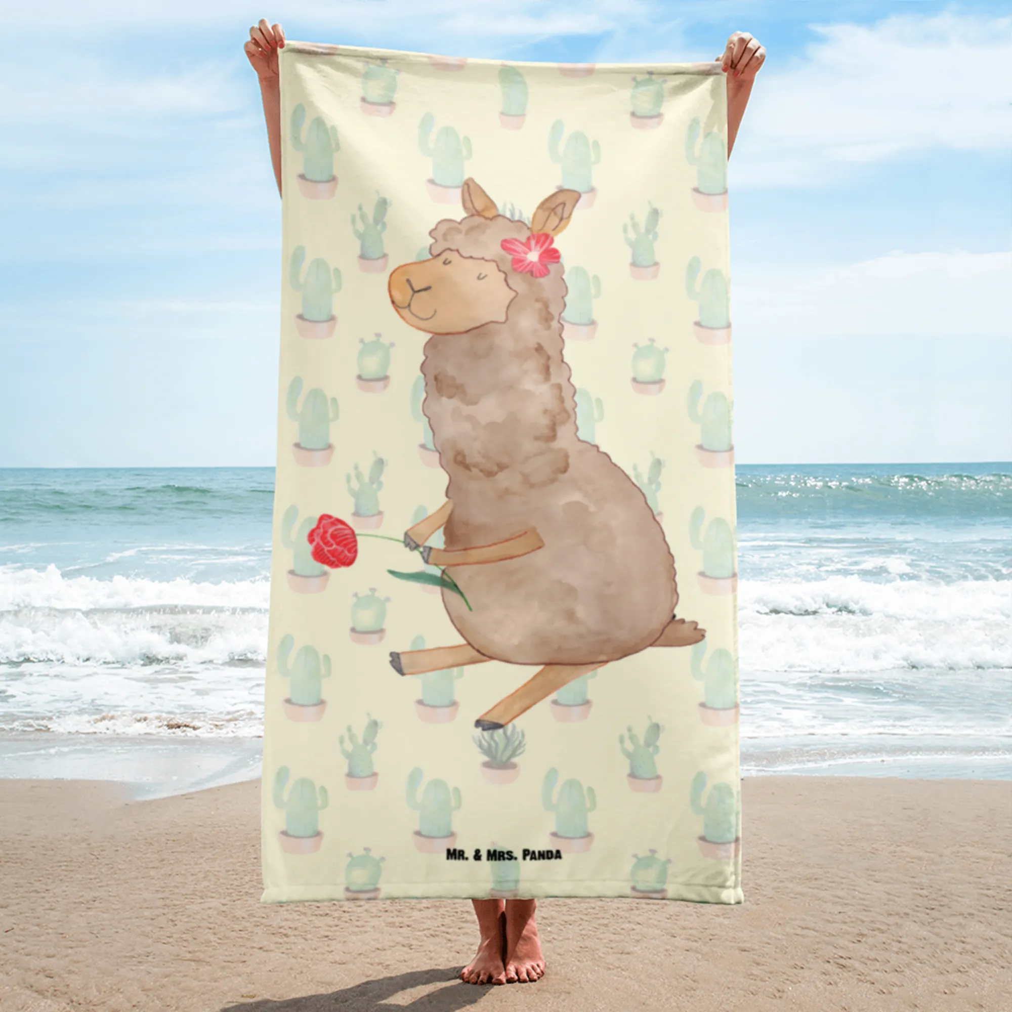 XL ręcznik kąpielowy alpaka kwiat – Mr. & Mrs. Panda