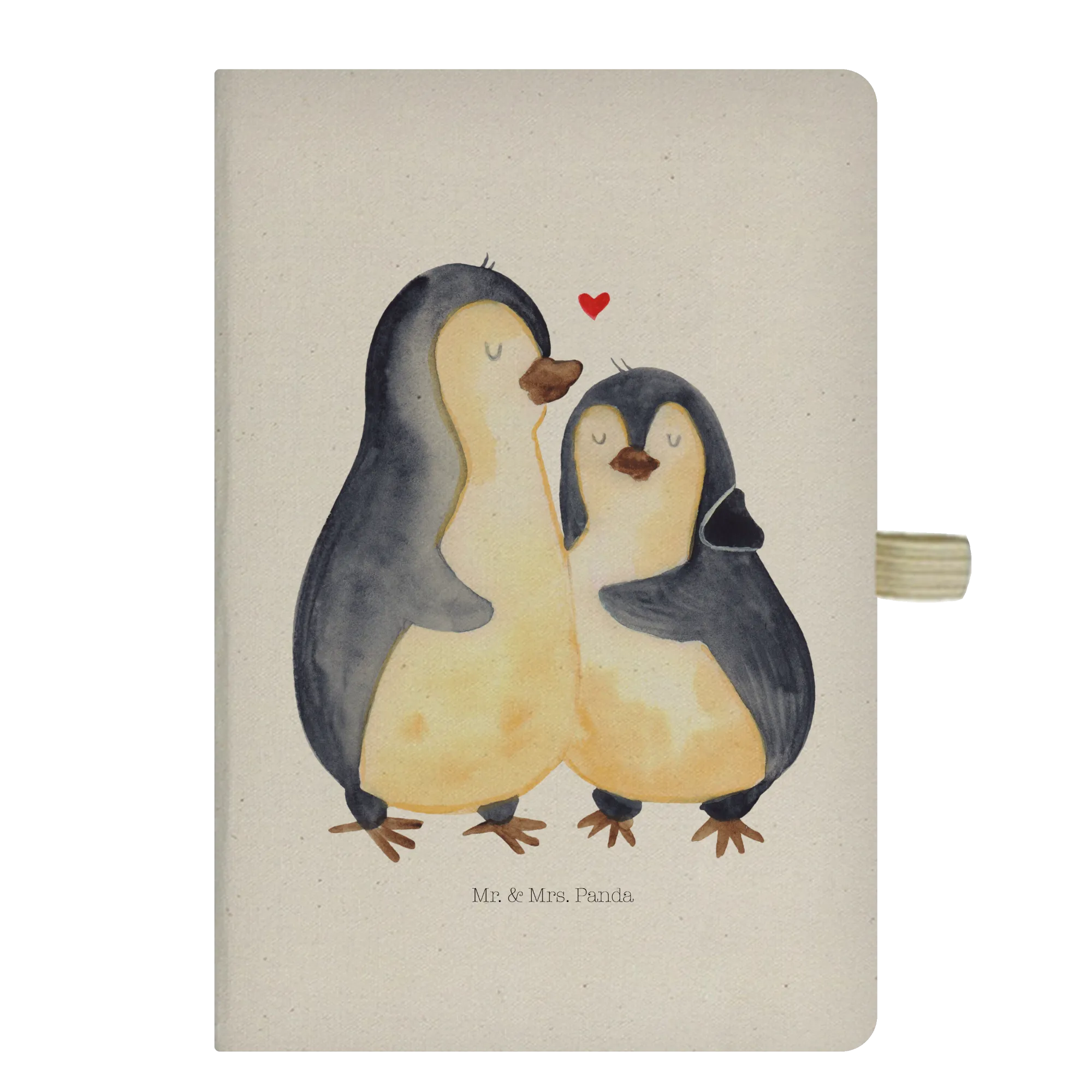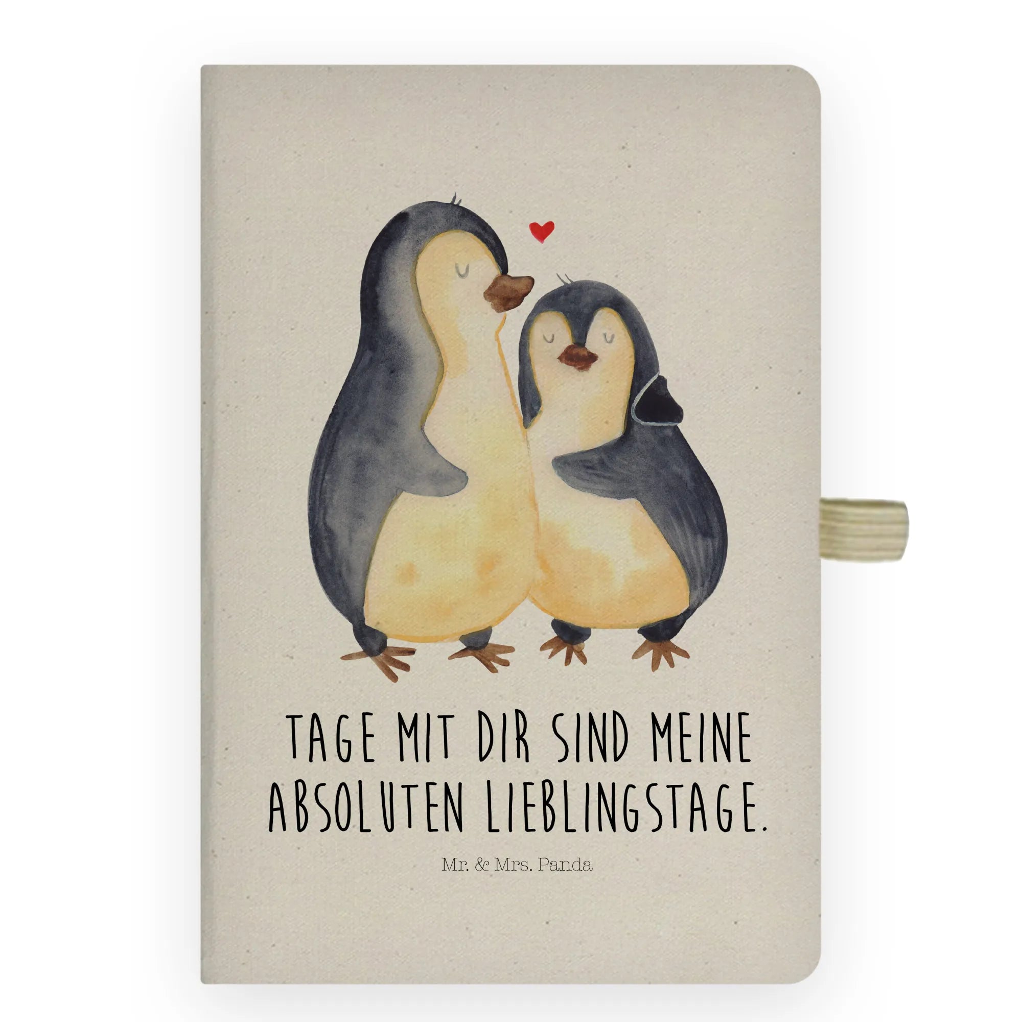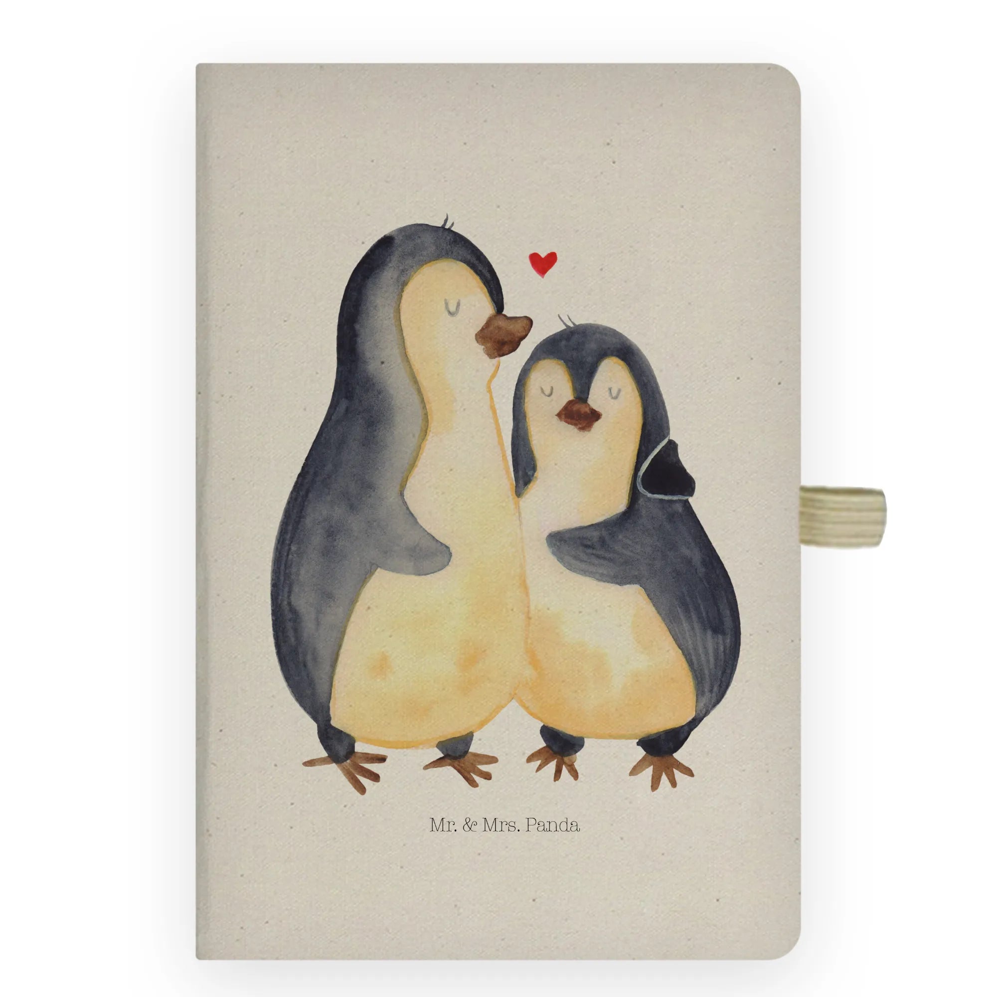 Bawełniany notes DIN A5 Pingwin przytulać - DIN A5 Baumwoll Notizbuch - z napisem