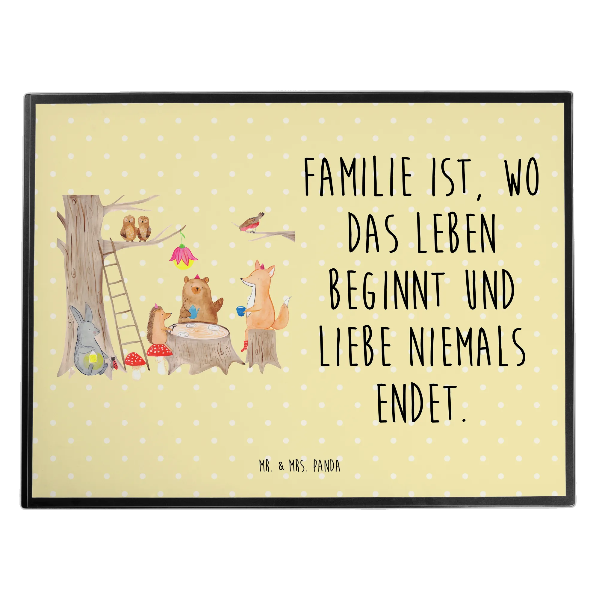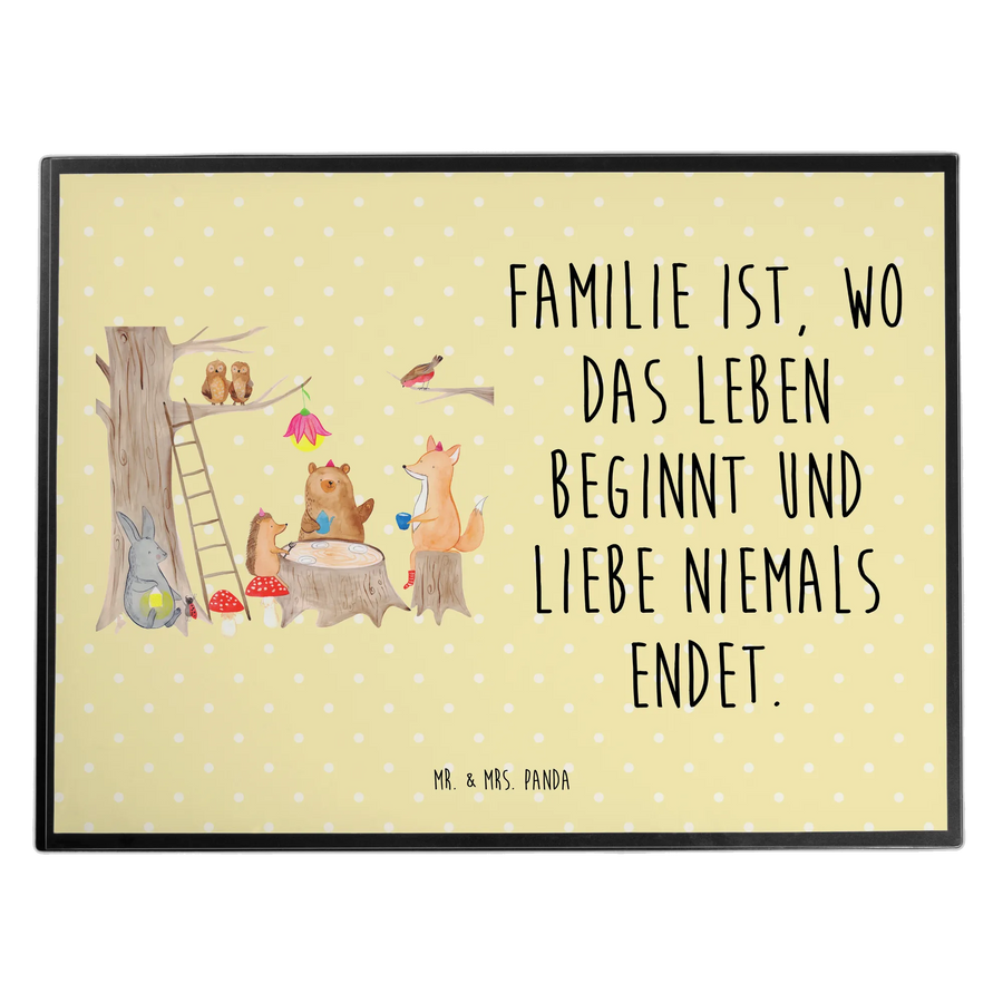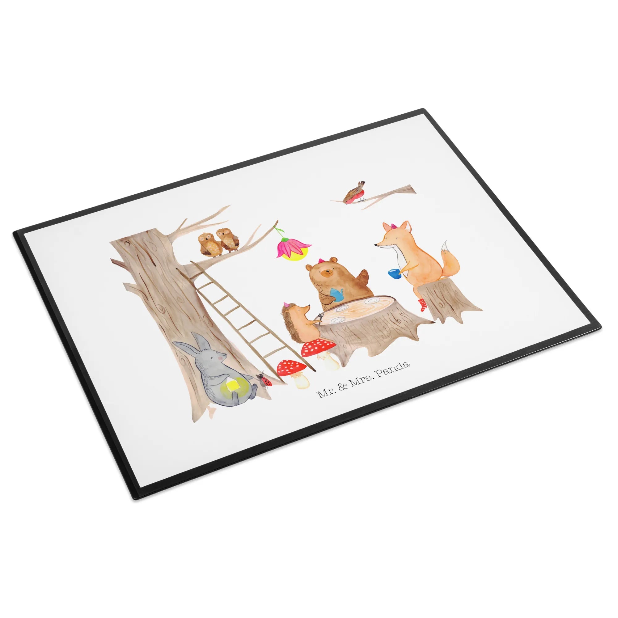Podkładka na biurko zwierzęta leśne piknik - z napisem - Pastelowy żółty