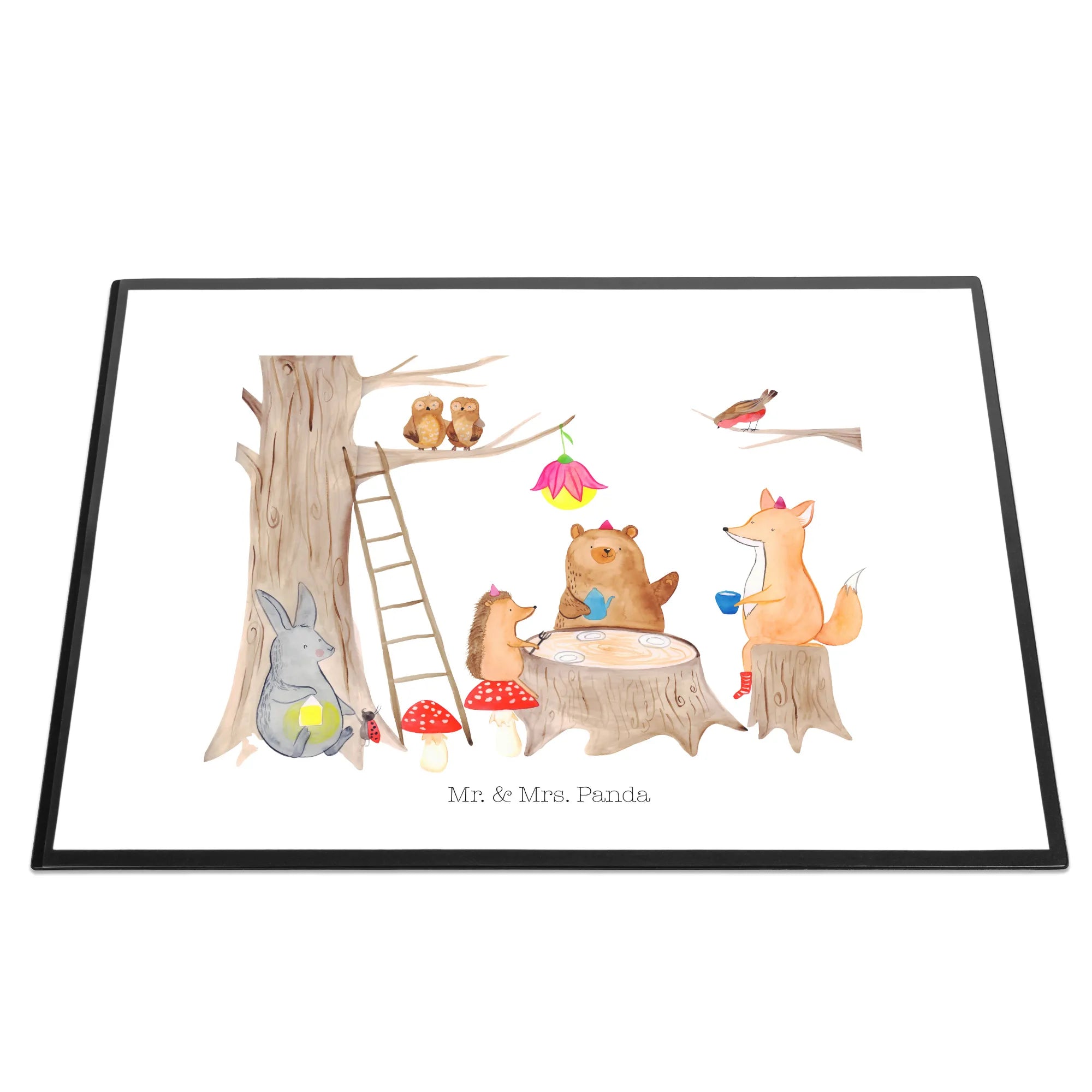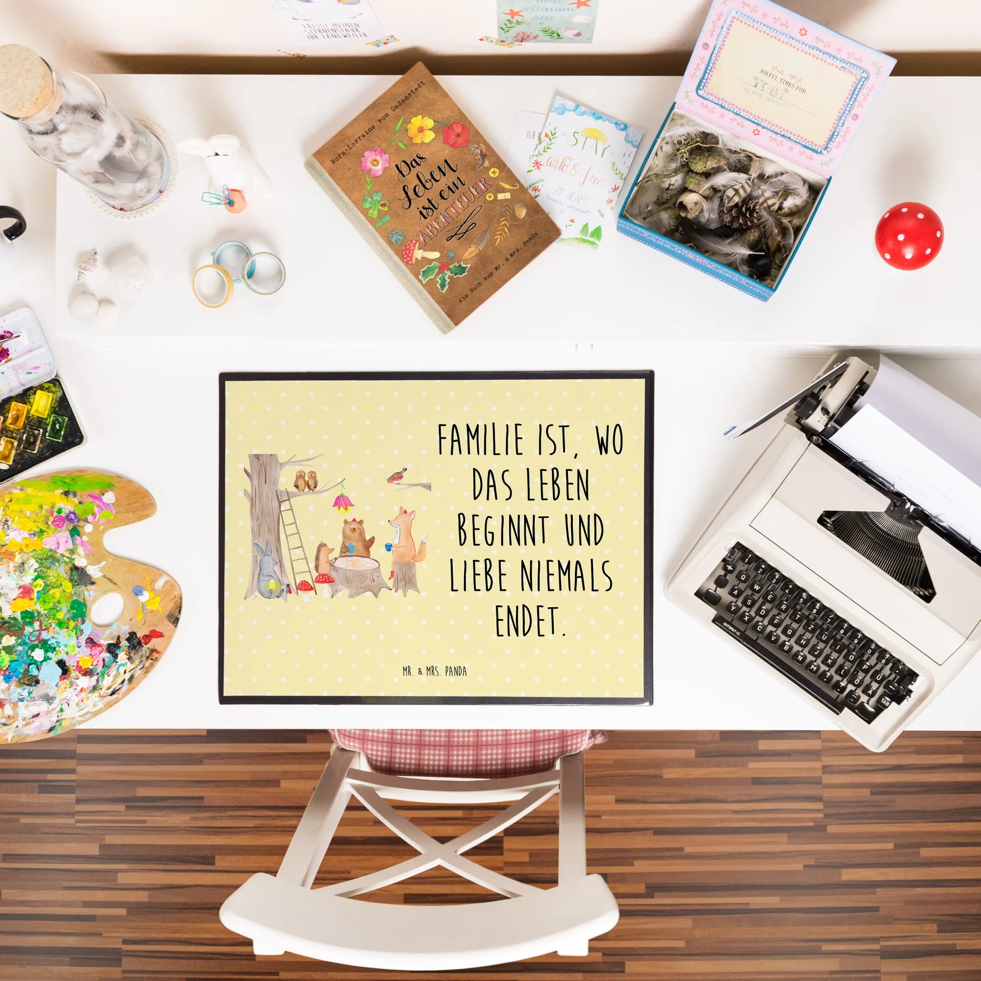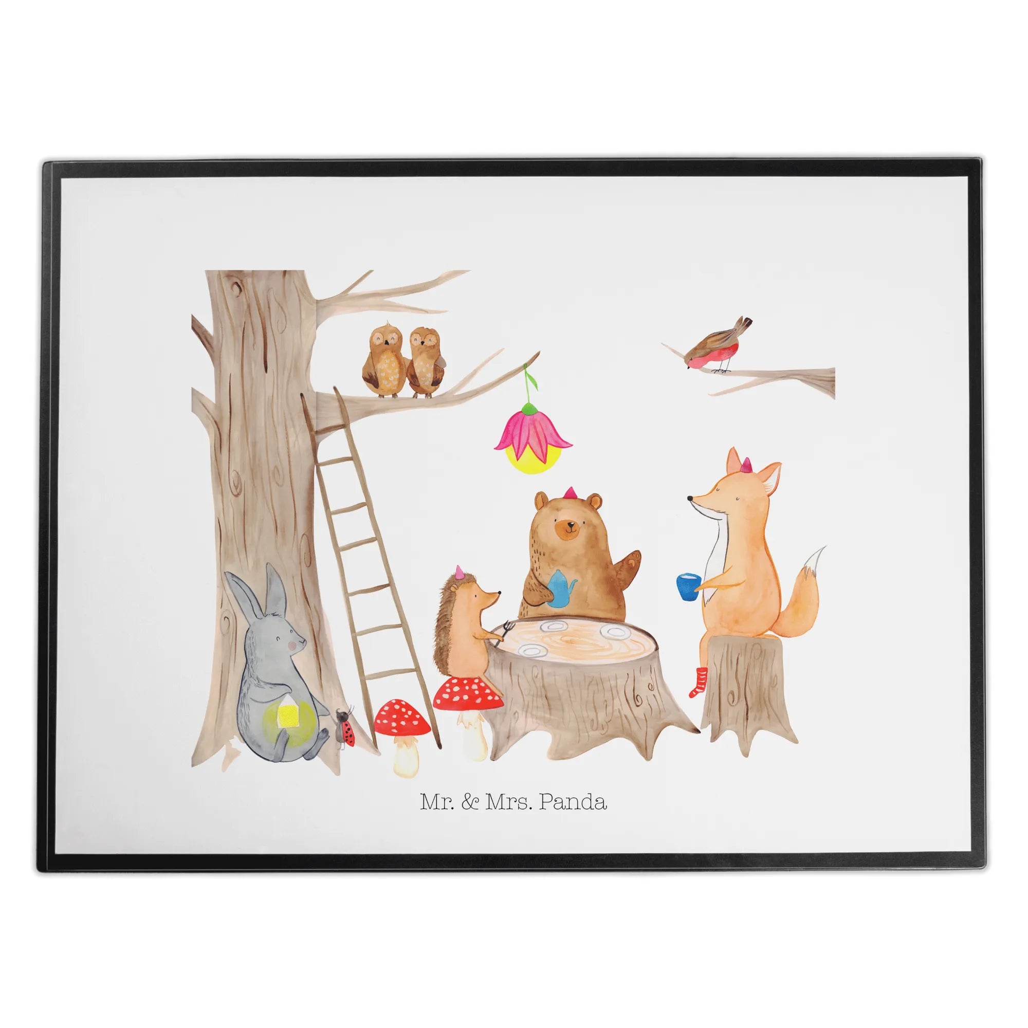 Podkładka na biurko zwierzęta leśne piknik - z napisem - Pastelowy żółty