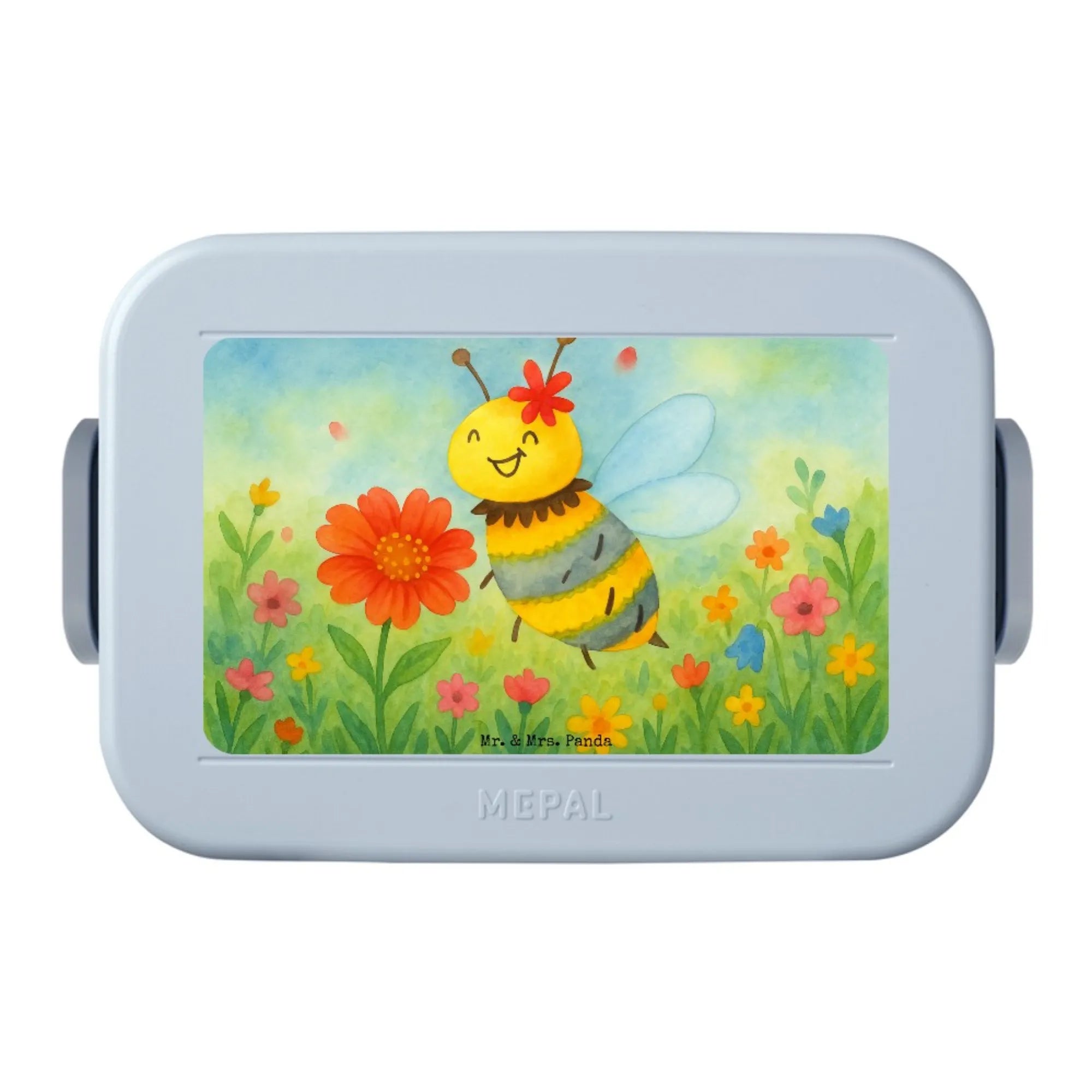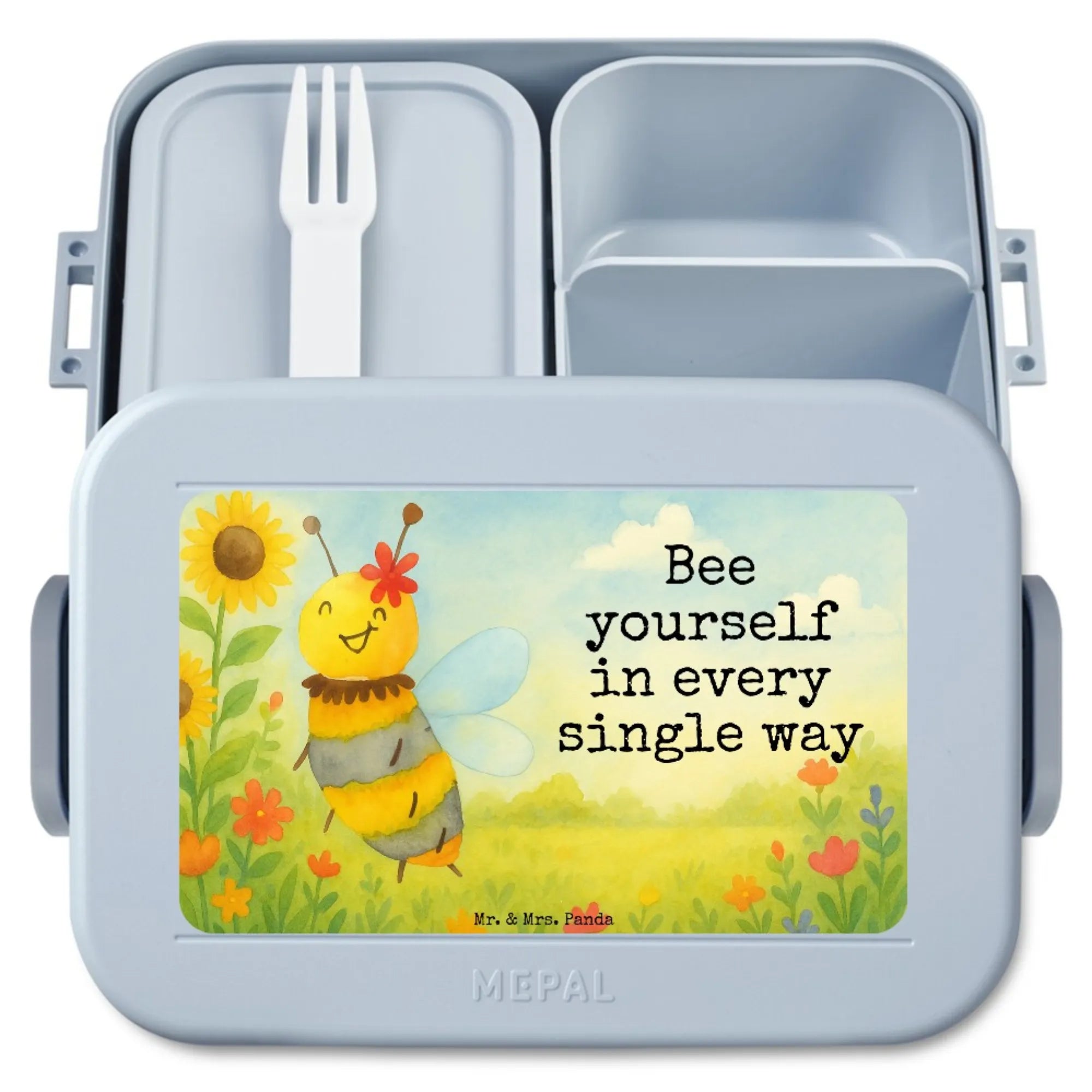 Bentobox Biene Blume Design - mit Spruch - Blau Pastell