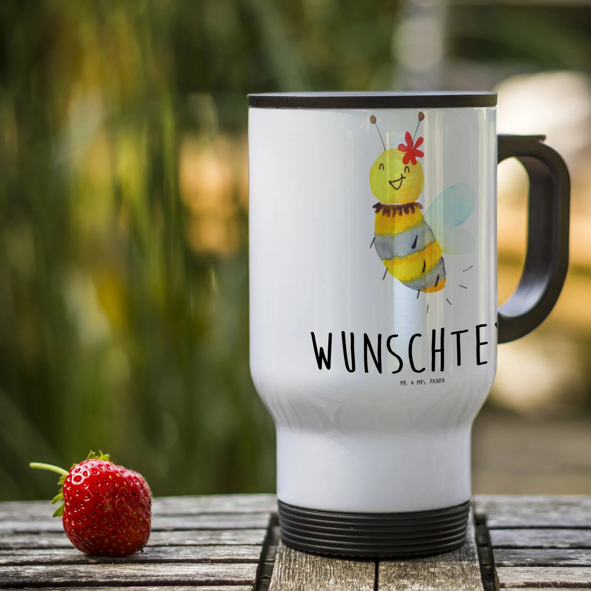 Entdecke den perfekten Begleiter für deinen Alltag – den personalisierten Thermobecher Biene Blume von Mr. & Mrs. Panda! Wenn du auf der Suche nach einem liebevollen und praktischen Geschenk bist, dann ist dieser isolierte Kaffeebecher genau das Richtige für dich. Er begeistert durch sein fröhliches Design mit einer süßen Biene, die mit einer zarten Blume auf dem Kopf durch die Luft schwebt. Mit dem inspirierenden Slogan "Bee yourself in every single way" erinnert der Becher dich daran, immer du selbst zu sein und das Leben in vollen Zügen zu genießen!