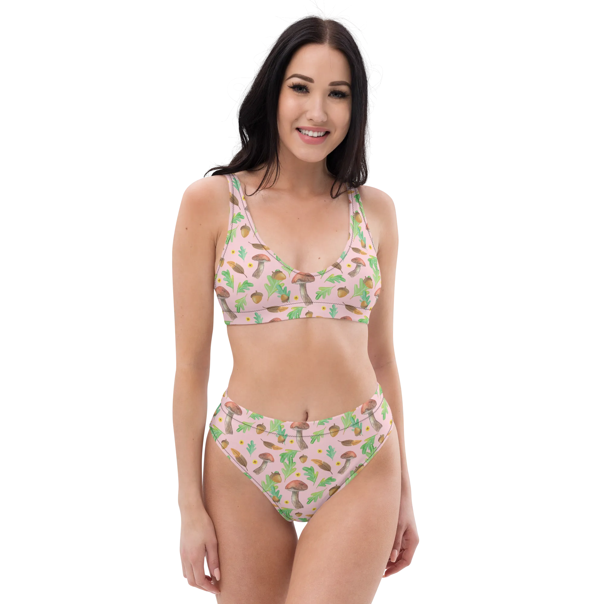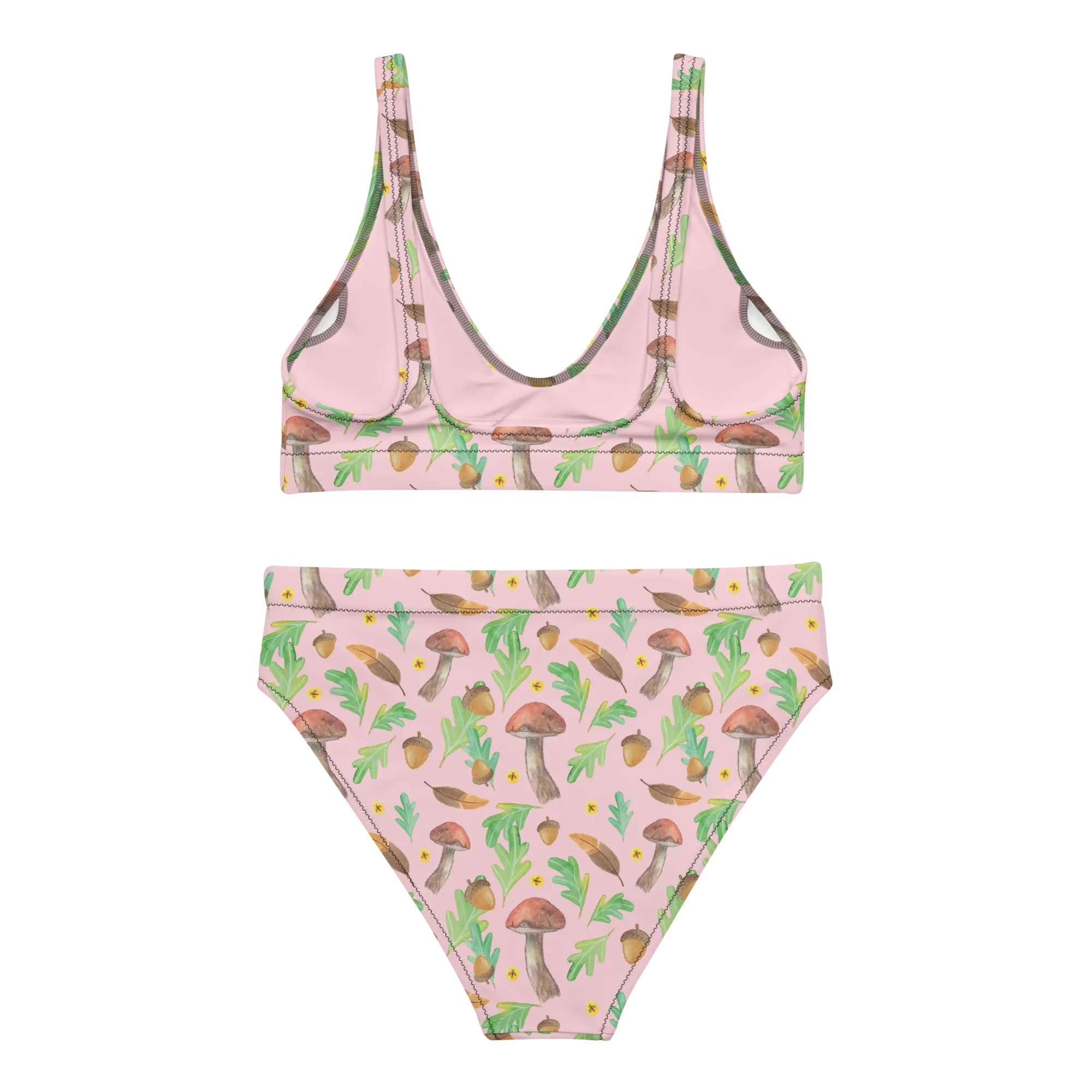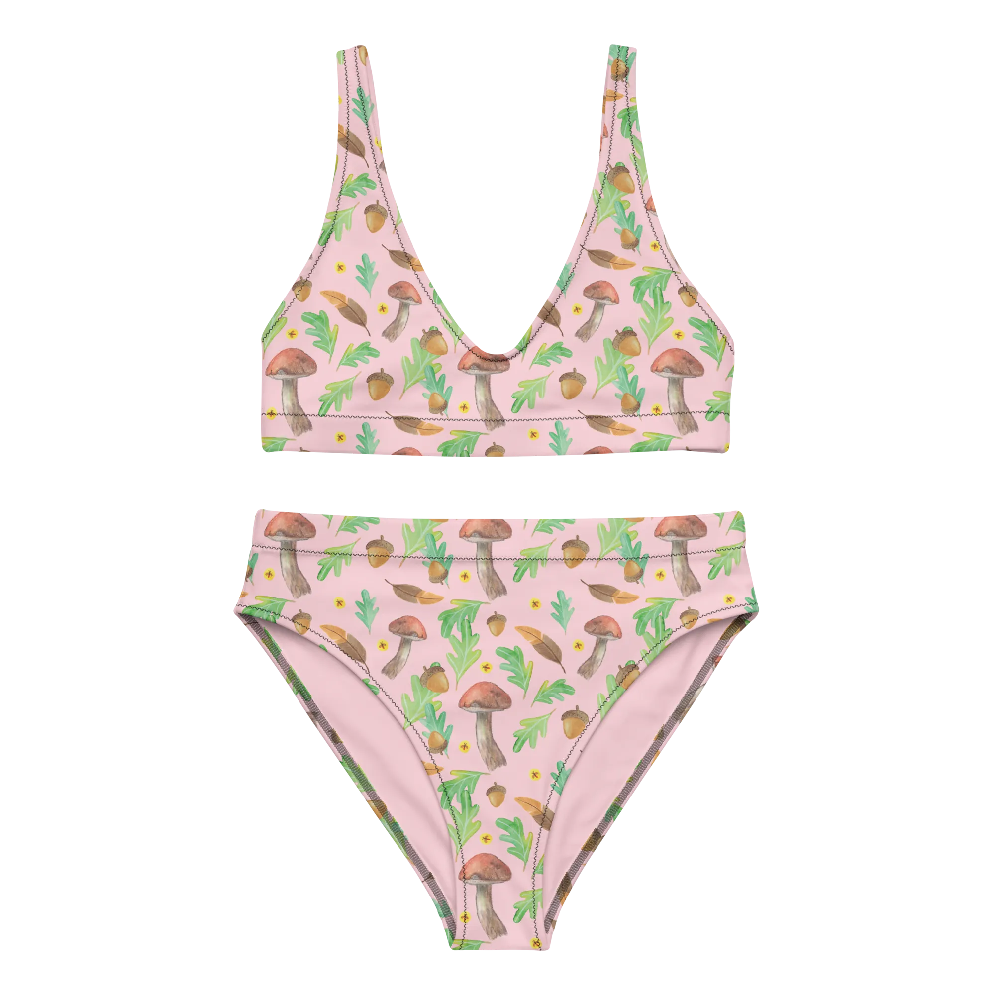 Bikini Leśne marzenia Wzornictwo Zweiteiler, High Waist Bikini, Bademode, 2er Set, Bikinioberteil, Bikinihose, Bikini, Pilze, Aquarell, Natur, Blätter, Glühwürmchen, Waldspaziergang, Wald, Aquarellmuster, Laub, Eiche