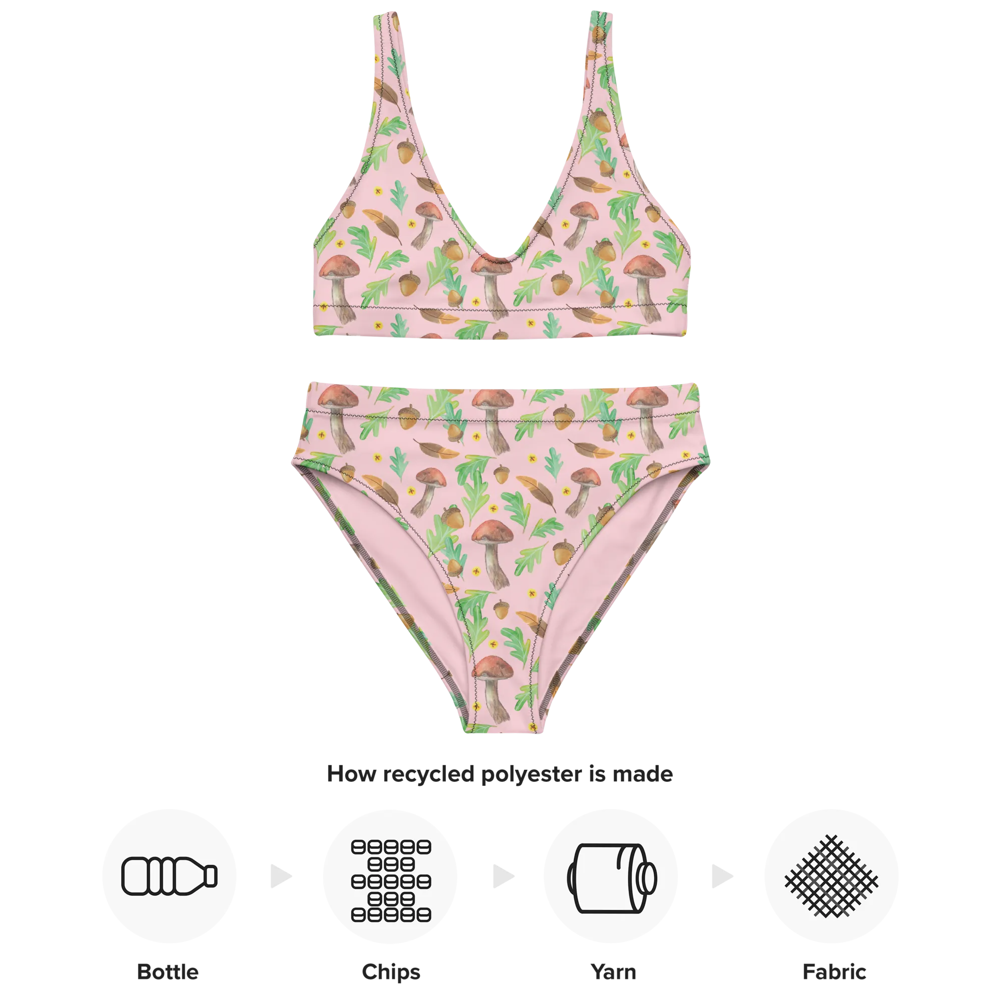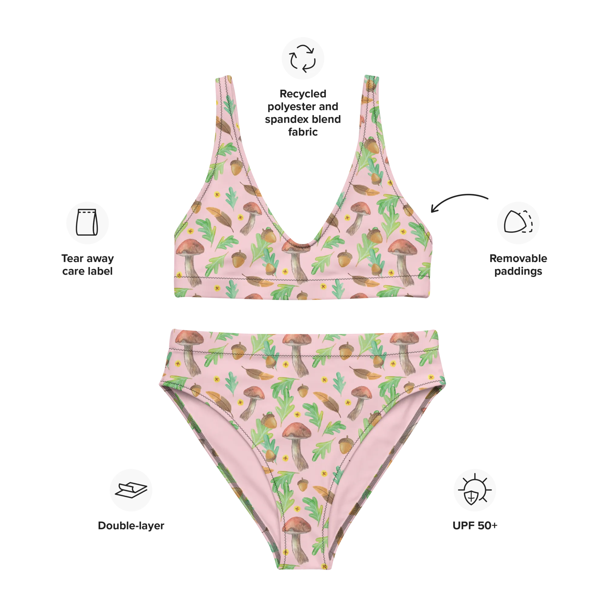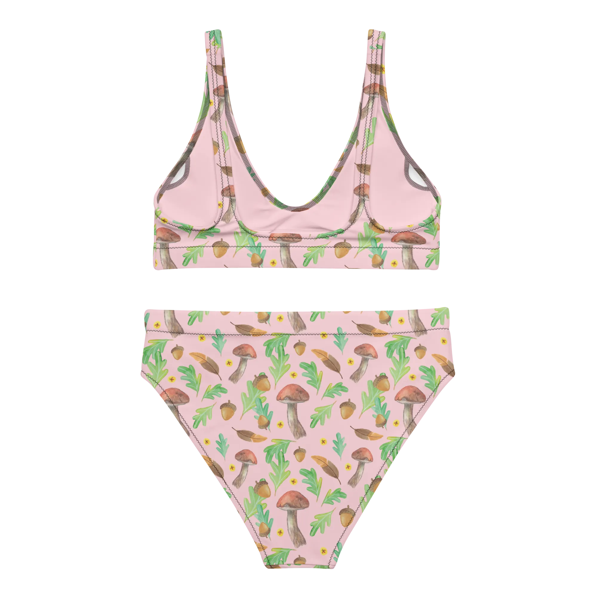 Bikini Leśne marzenia Wzornictwo Zweiteiler, High Waist Bikini, Bademode, 2er Set, Bikinioberteil, Bikinihose, Bikini, Pilze, Aquarell, Natur, Blätter, Glühwürmchen, Waldspaziergang, Wald, Aquarellmuster, Laub, Eiche