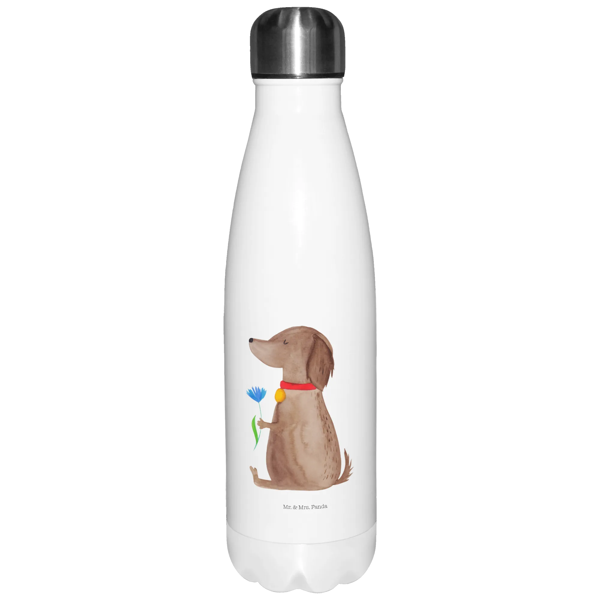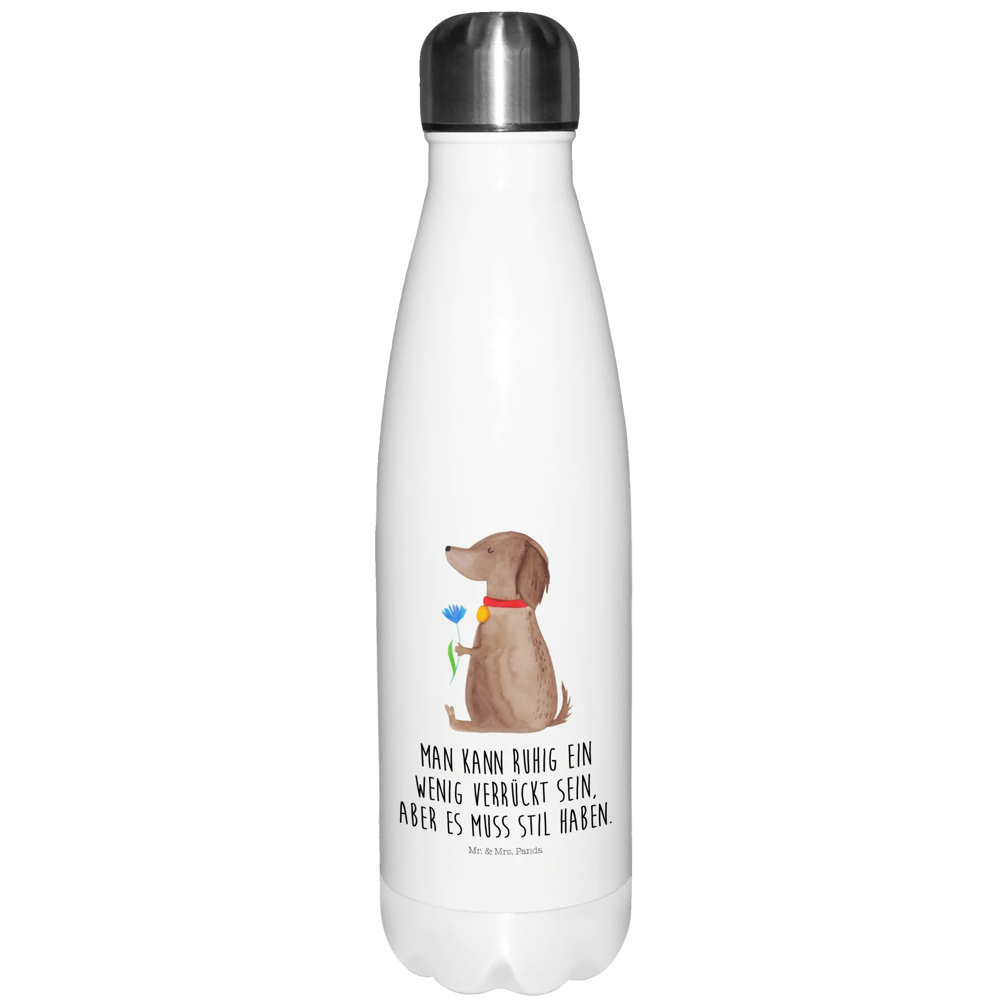 Butelka termiczna pies kwiat - z napisem
