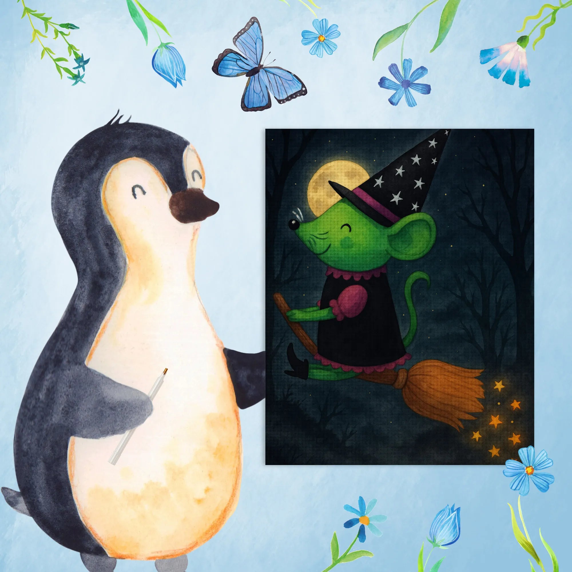 Obraz diamentowy Czarownica lata Design – Mr. & Mrs. Panda