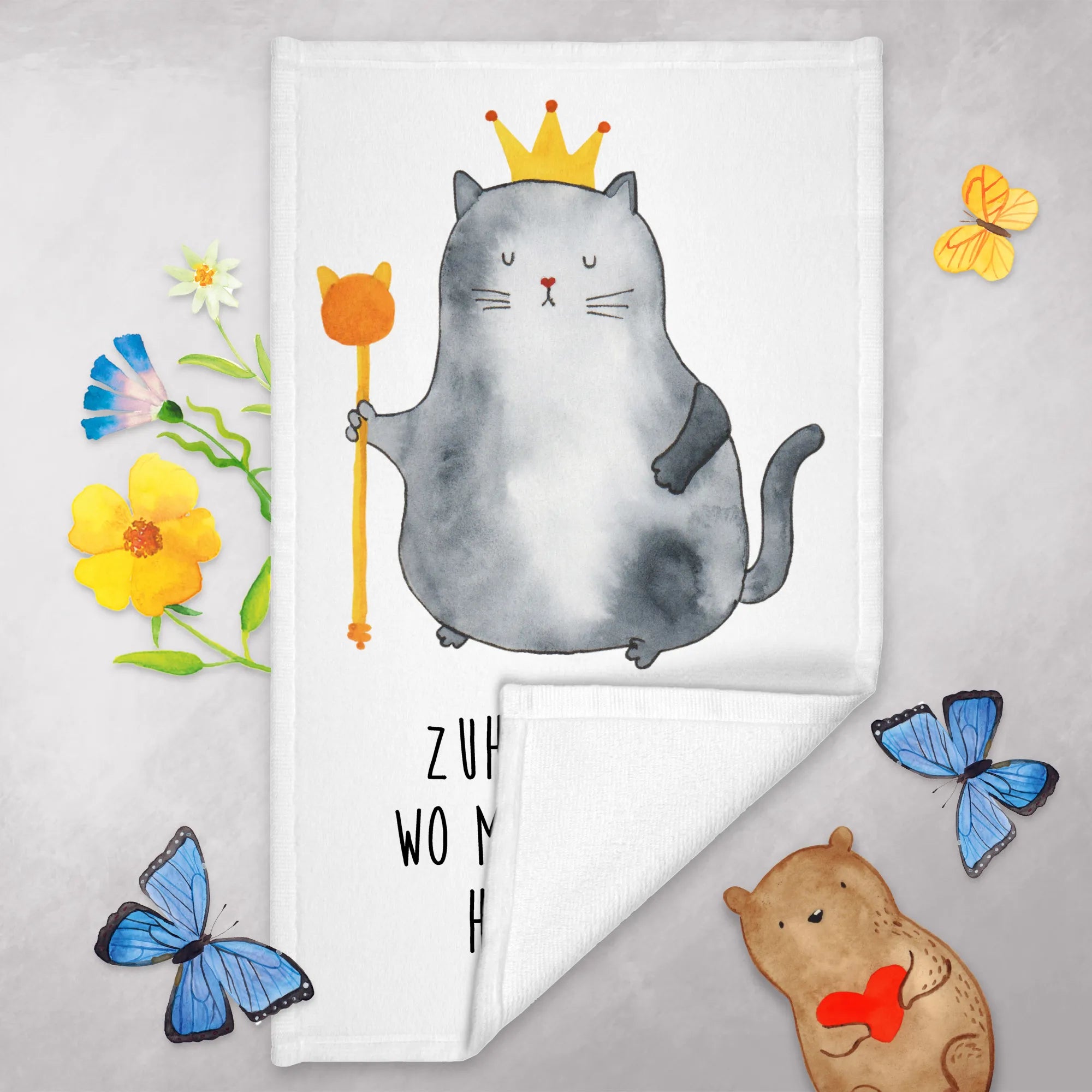 50 x 100 ręcznik kot Król - z napisem - biały