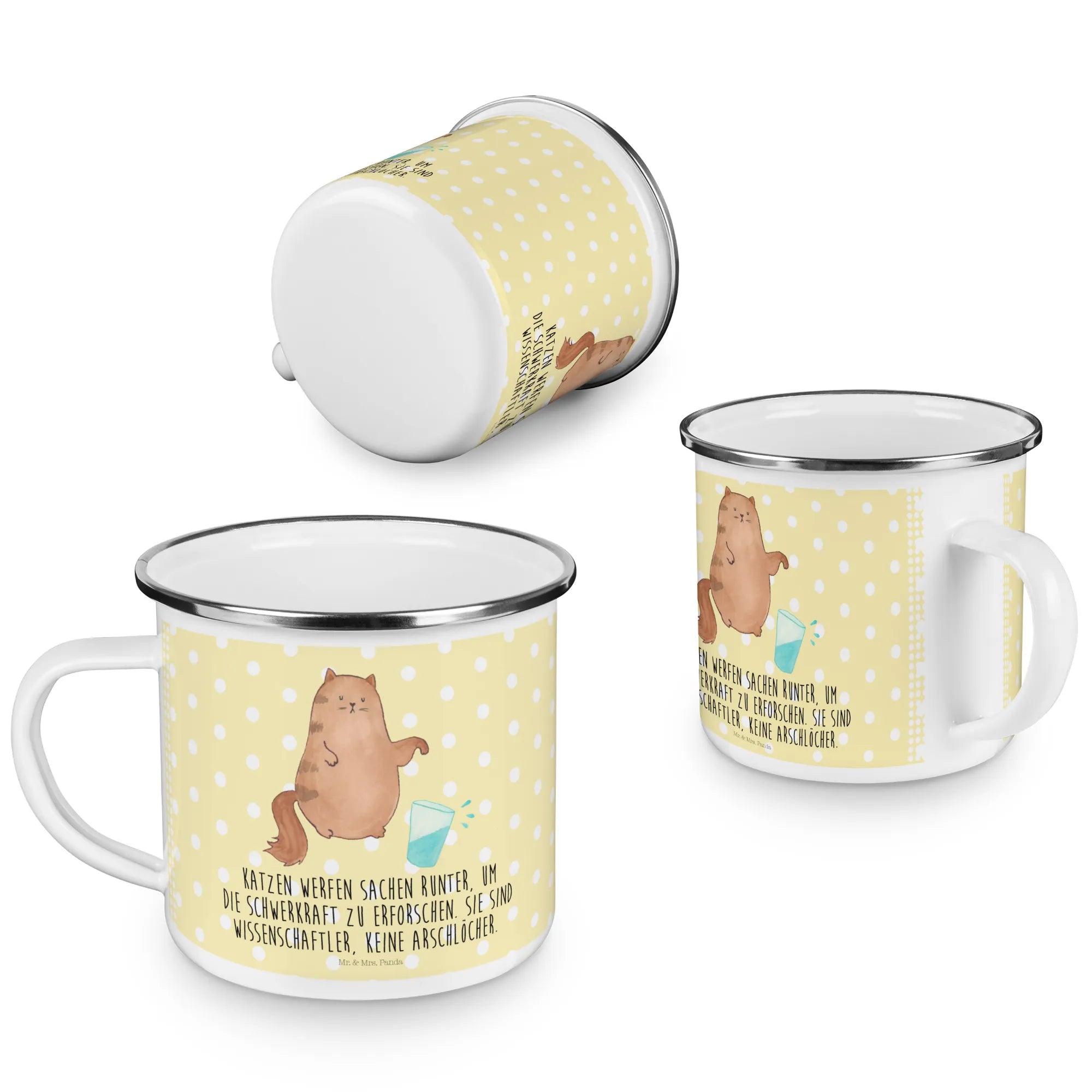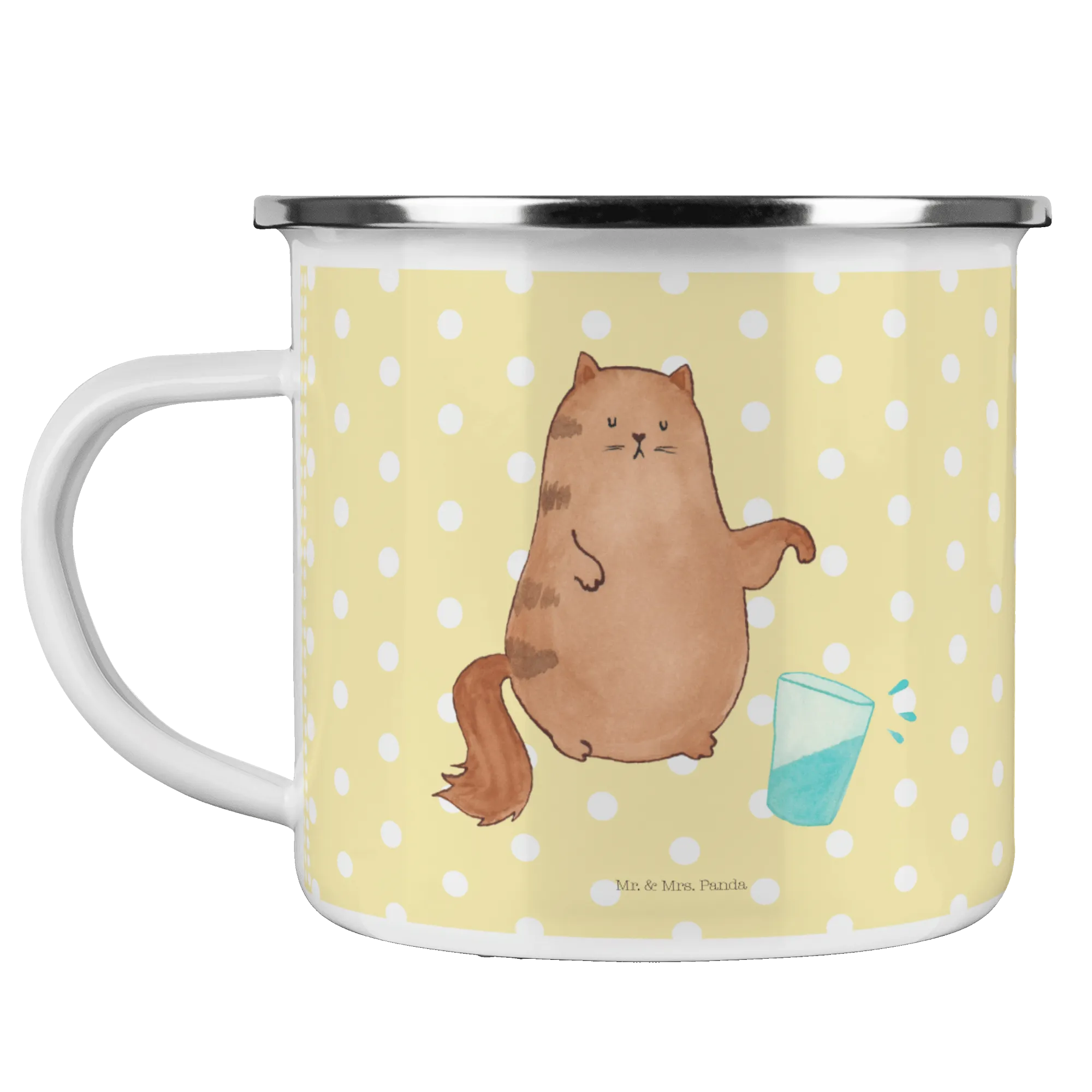 Kempingowy kubek emaliowany kot szklanka wody - z napisem - biały