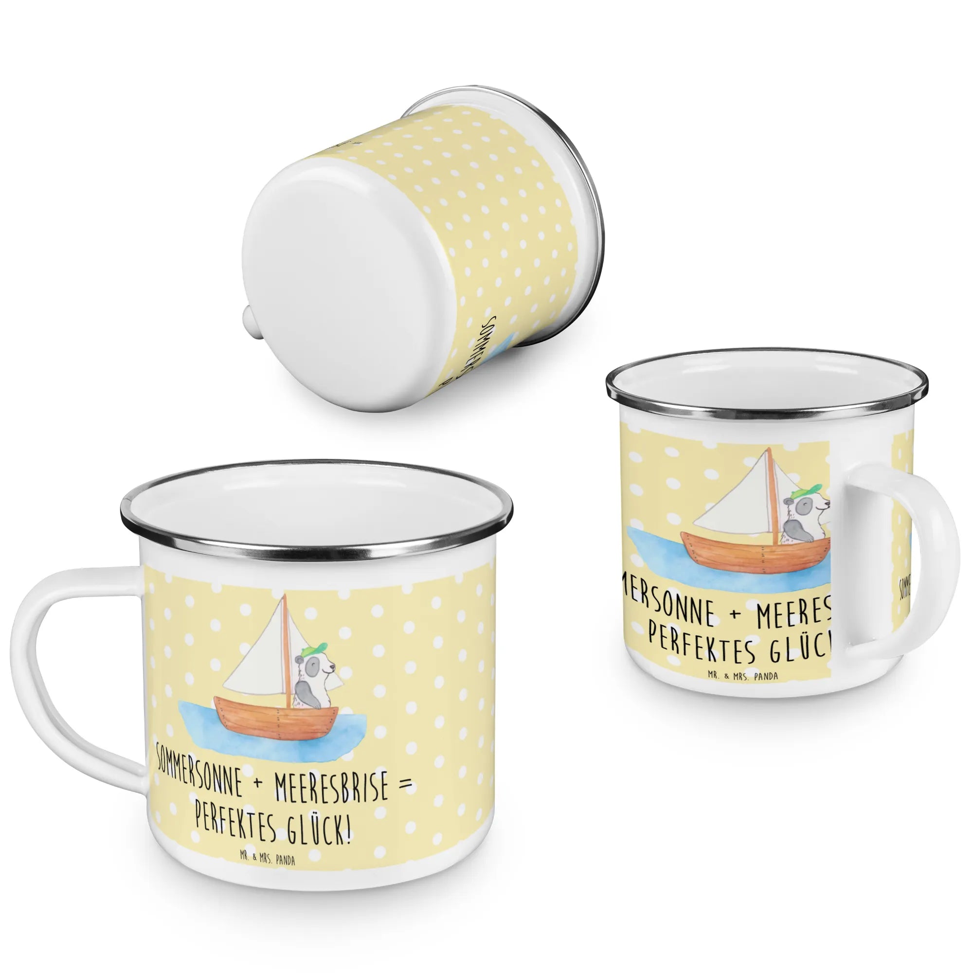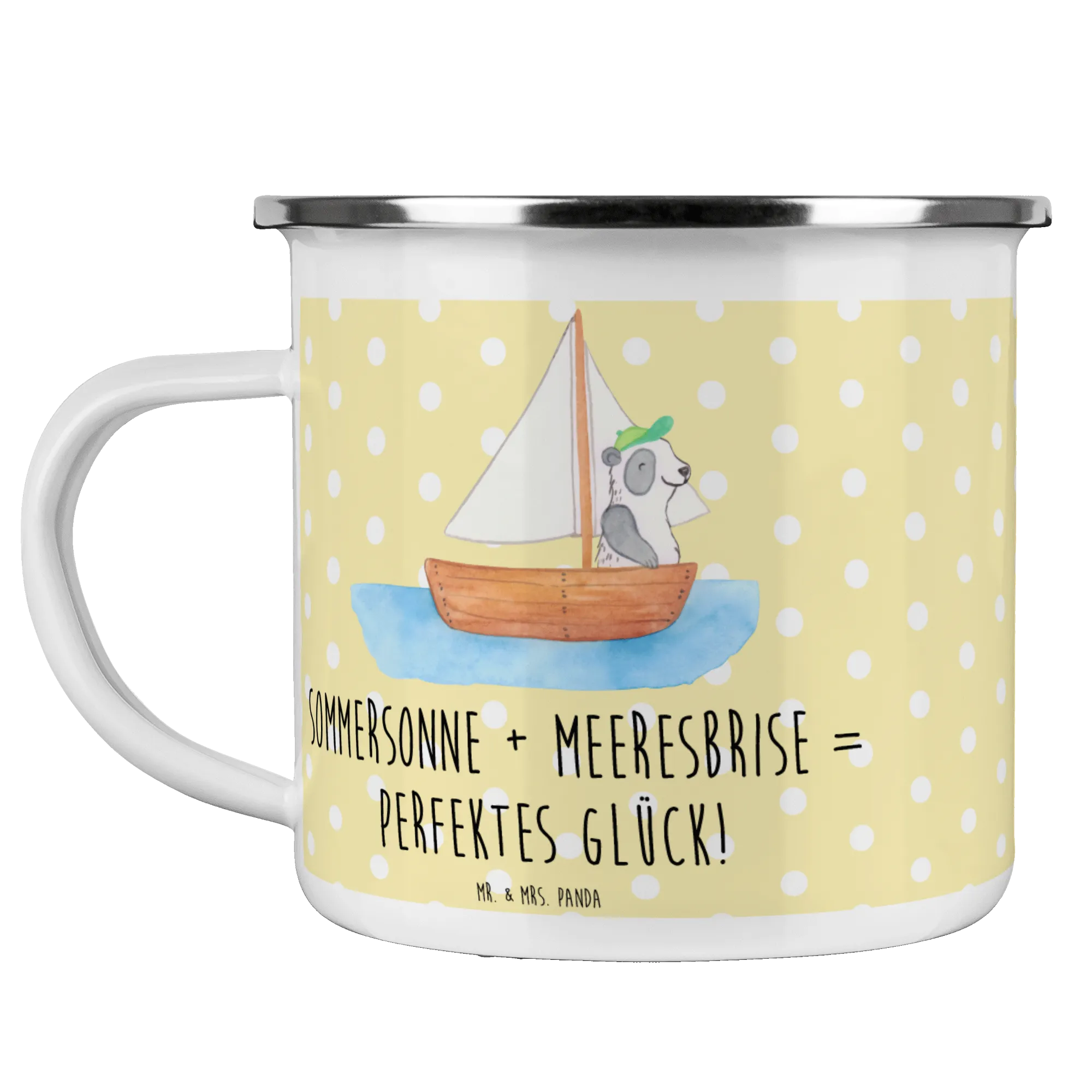 Die wunderschöne und beständige Camping Emaille Tasse von Mr. & Mrs. Panda ist das perfekte Geschenk für alle, die die Sommerzeit am Strand genießen möchten. Mit dem Motiv "Sommersonne + Meeresbrise = perfektes Glück!" ist diese Tasse nicht nur ein ideales Accessoire für Campingausflüge, sondern auch ein wunderbares Andenken an sonnige Tage.