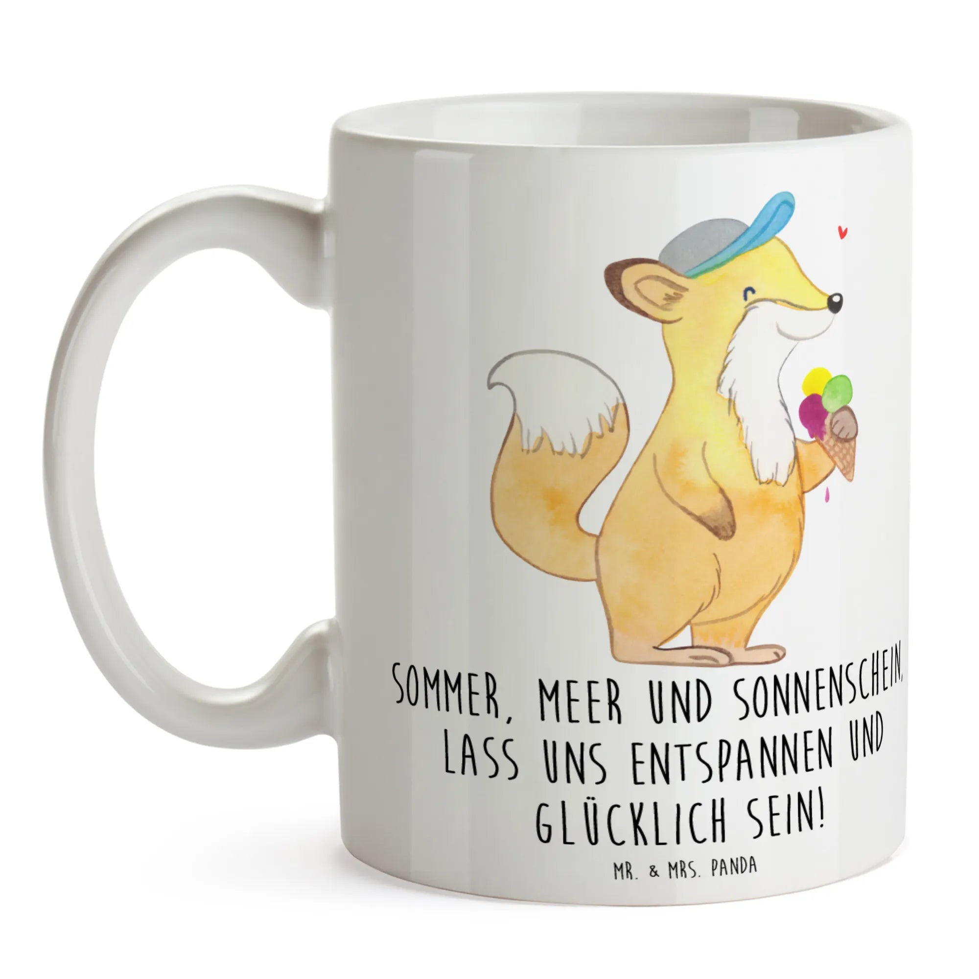 Kubek Sommer, Meer und Sonnenschein, lass uns entspannen und glücklich sein! - biały