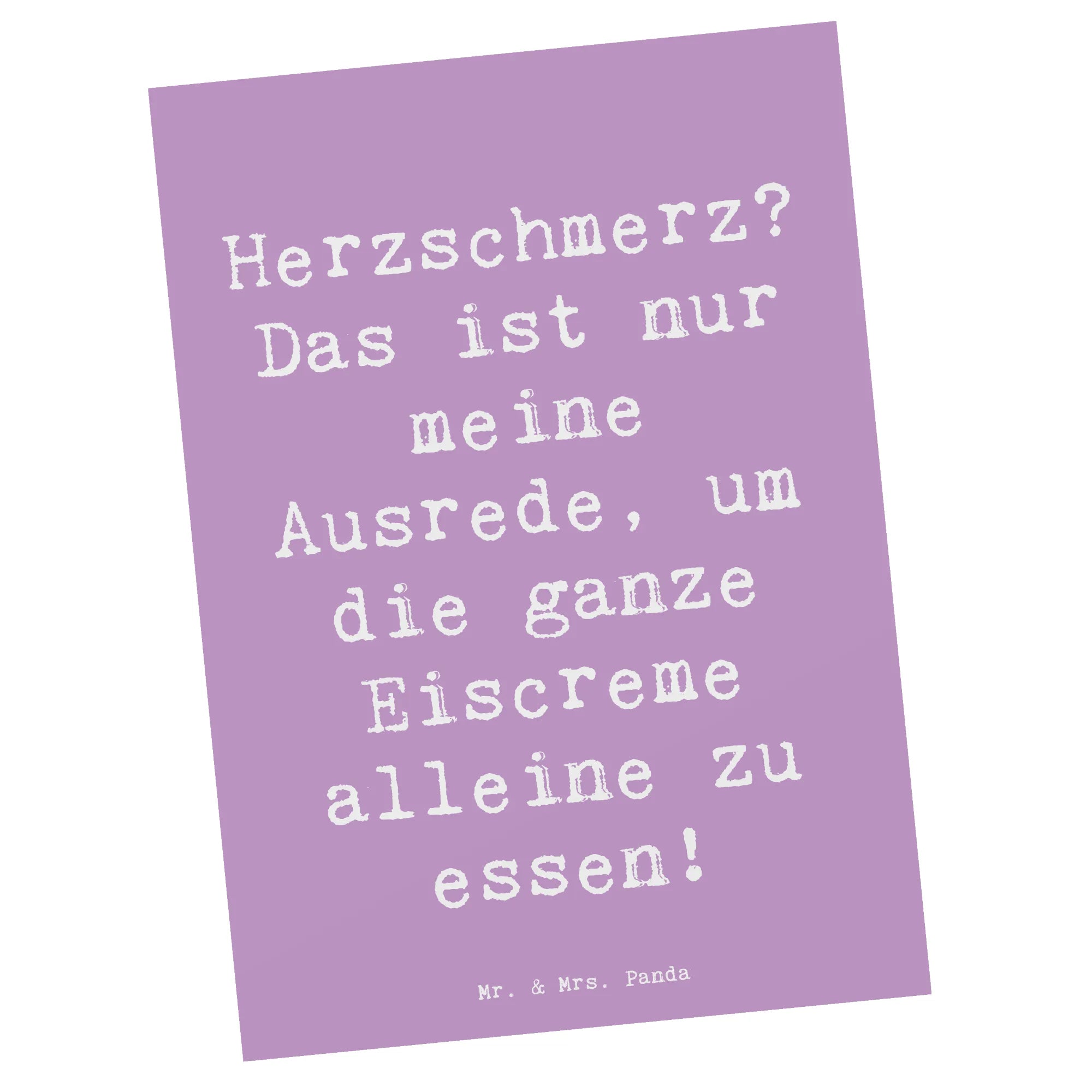 Pocztówka Powiedzenie Herzschmerz? Das ist nur meine Ausrede, um die ganze Eiscreme alleine zu essen! - biały