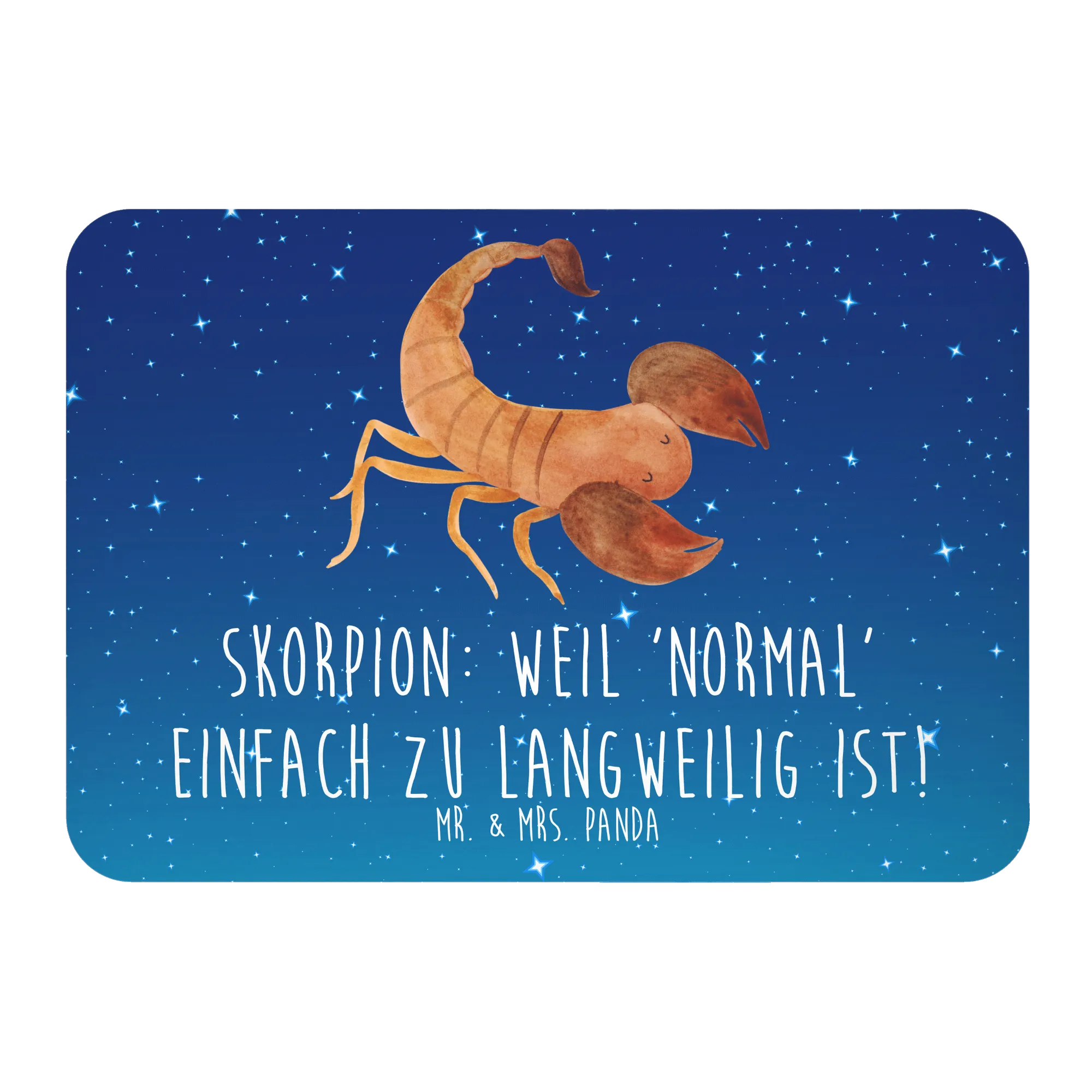 Der Skorpion Magnet von Mr. & Mrs. Panda ist nicht nur ein praktischer Kühlschrankmagnet, sondern auch ein ganz besonderes Geschenk für alle, die im Zeichen des Skorpions geboren sind! Mit dem Slogan „Skorpion: Weil 'normal' einfach zu langweilig ist!“ bringt dieser Magnet humorvoll die einzigartigen Eigenschaften und die starke Persönlichkeit des Skorpions zum Ausdruck. Er ist ein echter Hingucker in jeder Küche oder im Arbeitszimmer und perfekt geeignet, um Notizen, Einkaufszettel oder Erinnerungen am Kühlschrank oder Whiteboard anzubringen.