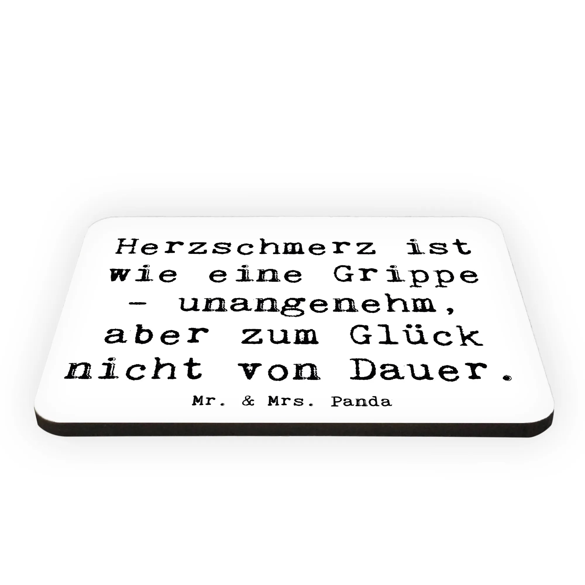 Der Magnet "Herzschmerz" von Mr. & Mrs. Panda ist nicht nur ein praktisches Küchenaccessoire, sondern auch ein kleiner Seelentröster. Mit seinem charmanten Spruch "Herzschmerz ist wie eine Grippe - unangenehm, aber zum Glück nicht von Dauer." bringt er einen Hauch von Humor in die manchmal trüben Momente des Lebens.