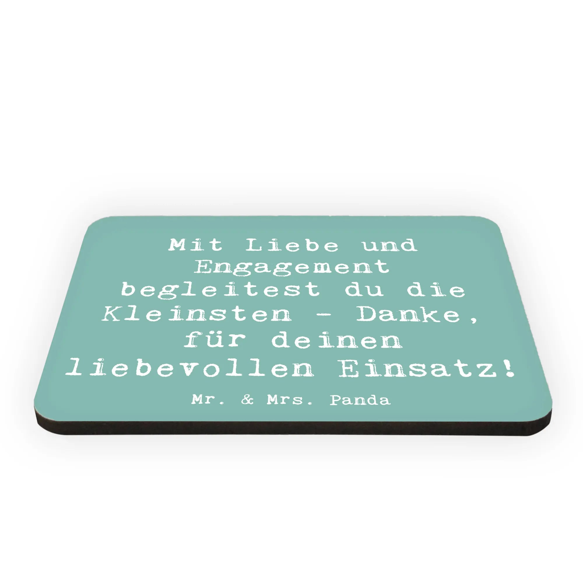 Der Magnet Erzieher aus der Kollektion Danke von Mr. & Mrs. Panda ist das perfekte Geschenk, um deinen Dank an die tollen Erzieher zu zeigen! Mit einem liebevollen Spruch, der besagt: "Mit Liebe und Engagement begleitest du die Kleinsten - Danke, für deinen liebevollen Einsatz!", übermittelt er auf herzliche Weise all deine Wertschätzung.