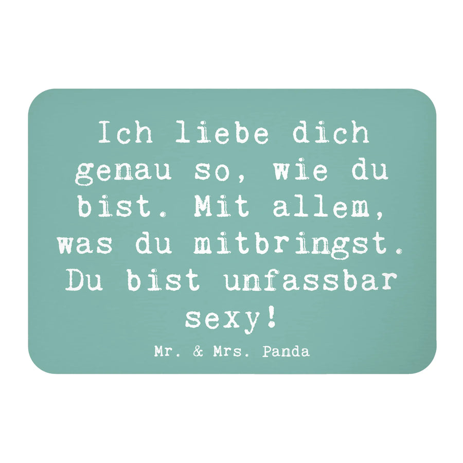 Entdecke den perfekten Kühlschrankmagneten von Mr. & Mrs. Panda aus der Sammlung Gefühle & Stimmungen! Dieser Magnet mit dem Motiv Sinnlichkeit ist nicht nur ein wunderschönes Deko-Element für deine Küche, sondern auch eine liebevolle Botschaft an deine Liebsten. Der Spruch "Ich liebe dich genau so, wie du bist. Mit allem, was du mitbringst. Du bist unfassbar sexy!" zaubert ein Lächeln auf jedes Gesicht und gibt jedem Tag eine besondere Note.