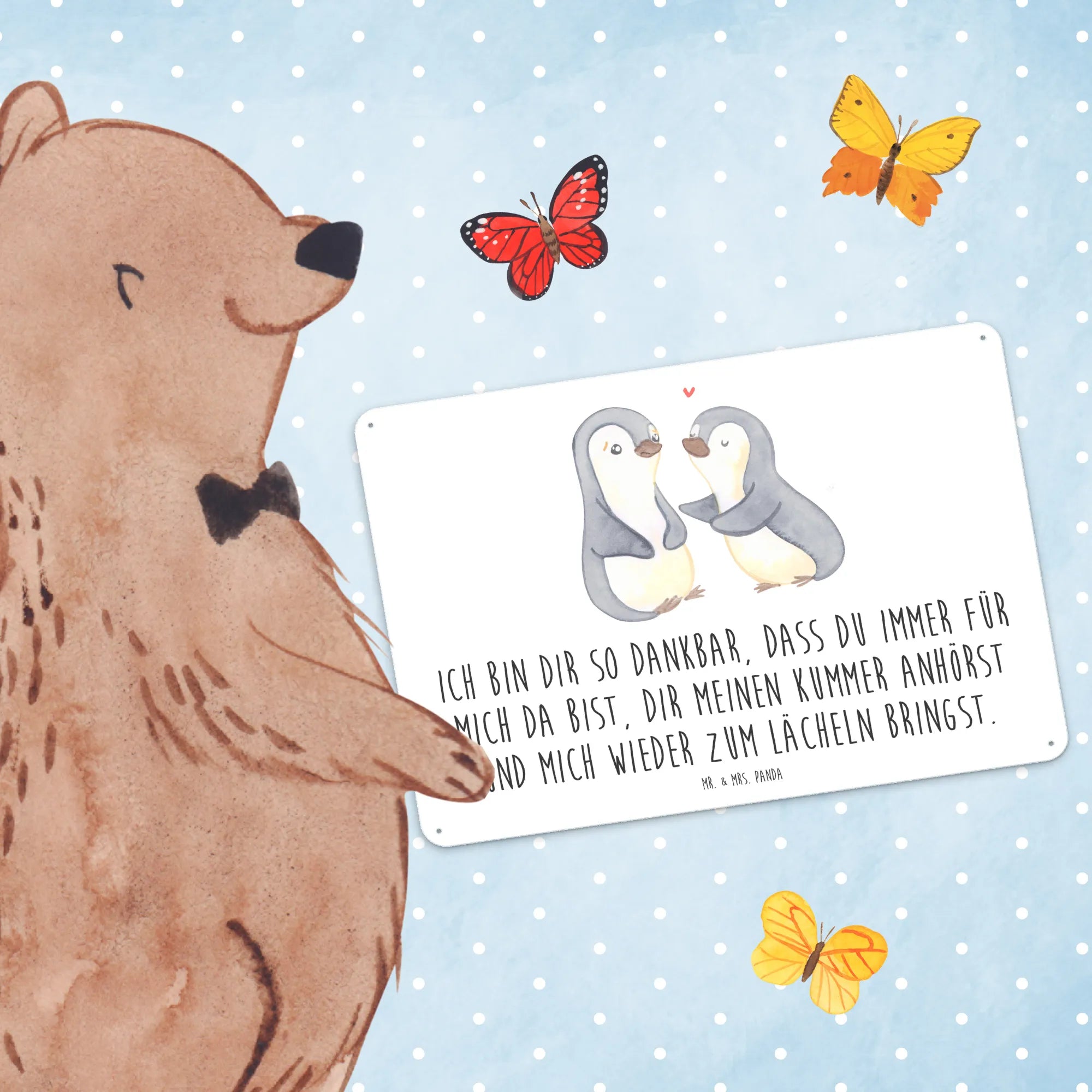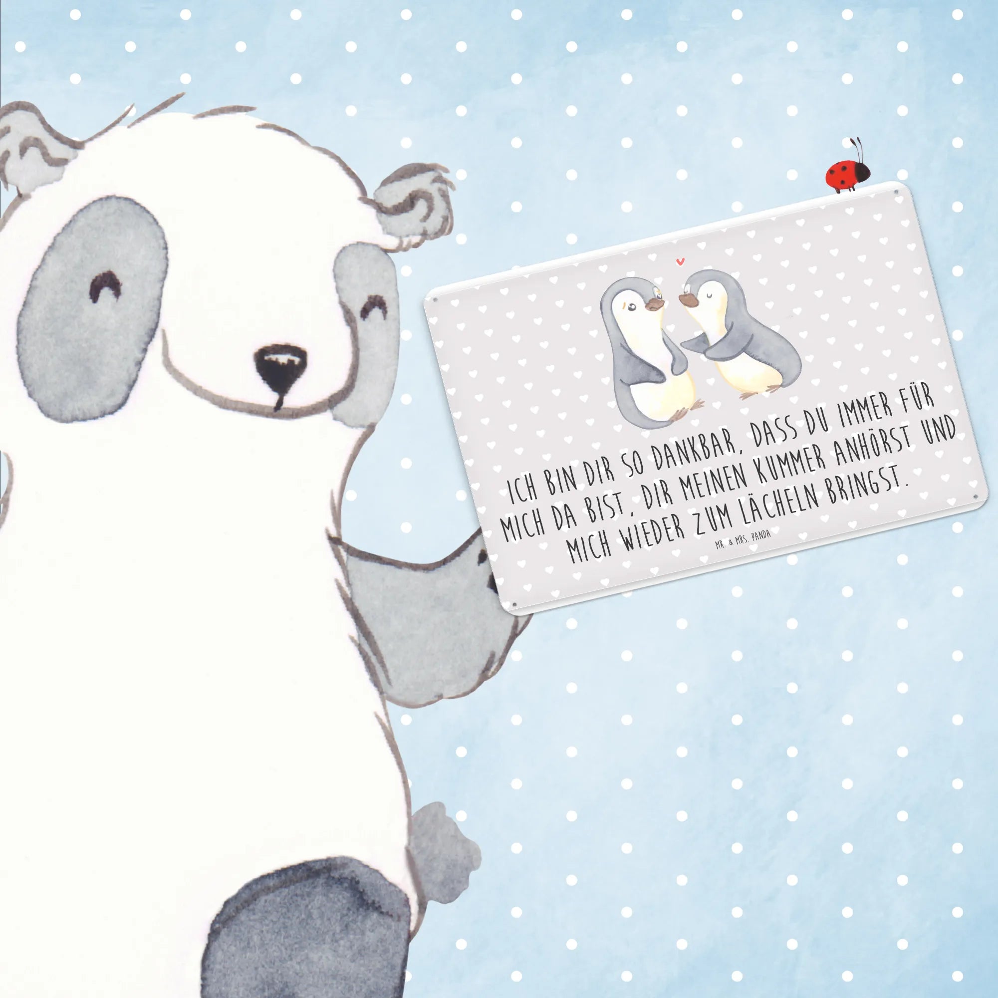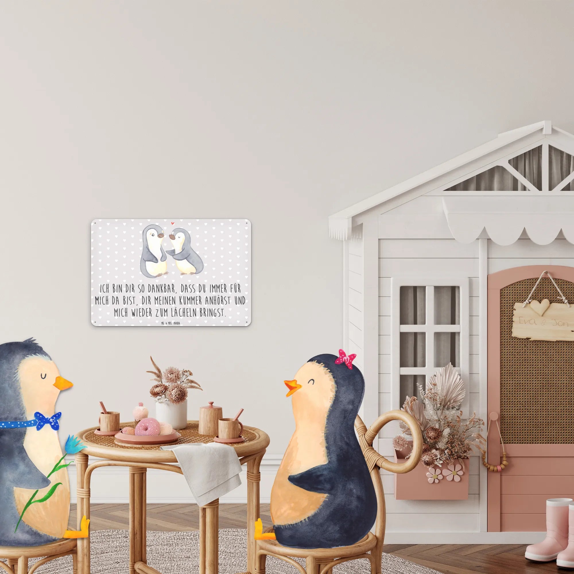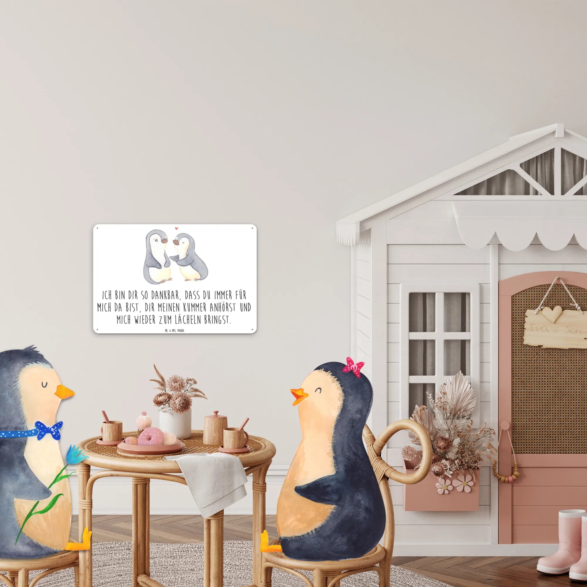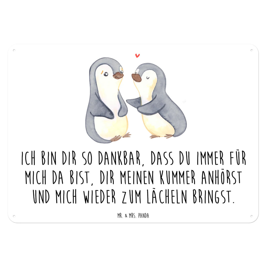 Metalowy szyld pingwiny pocieszyć - DIN A6 - biały