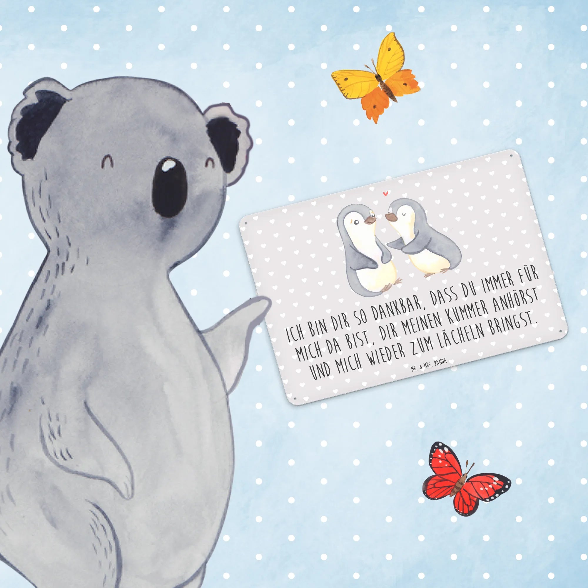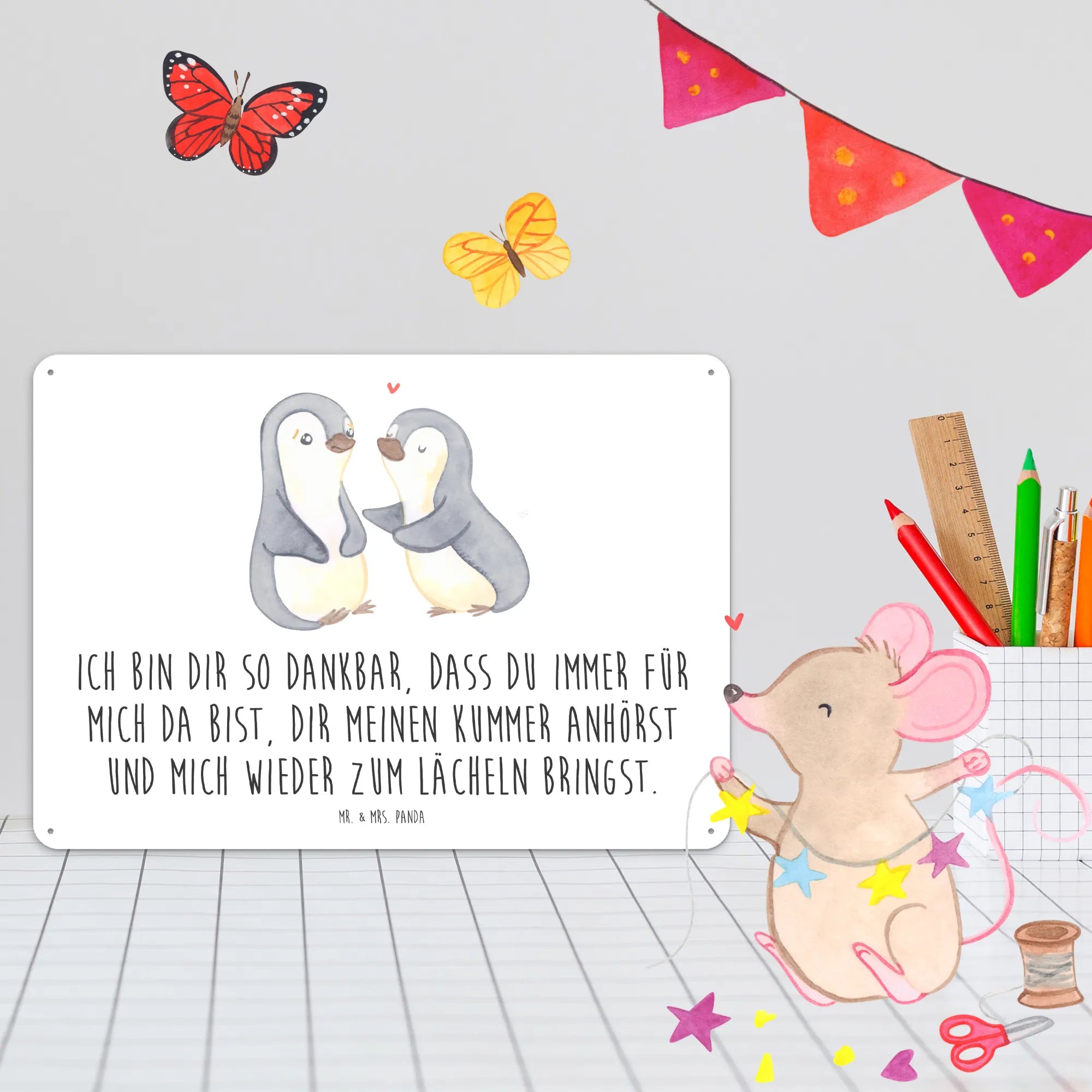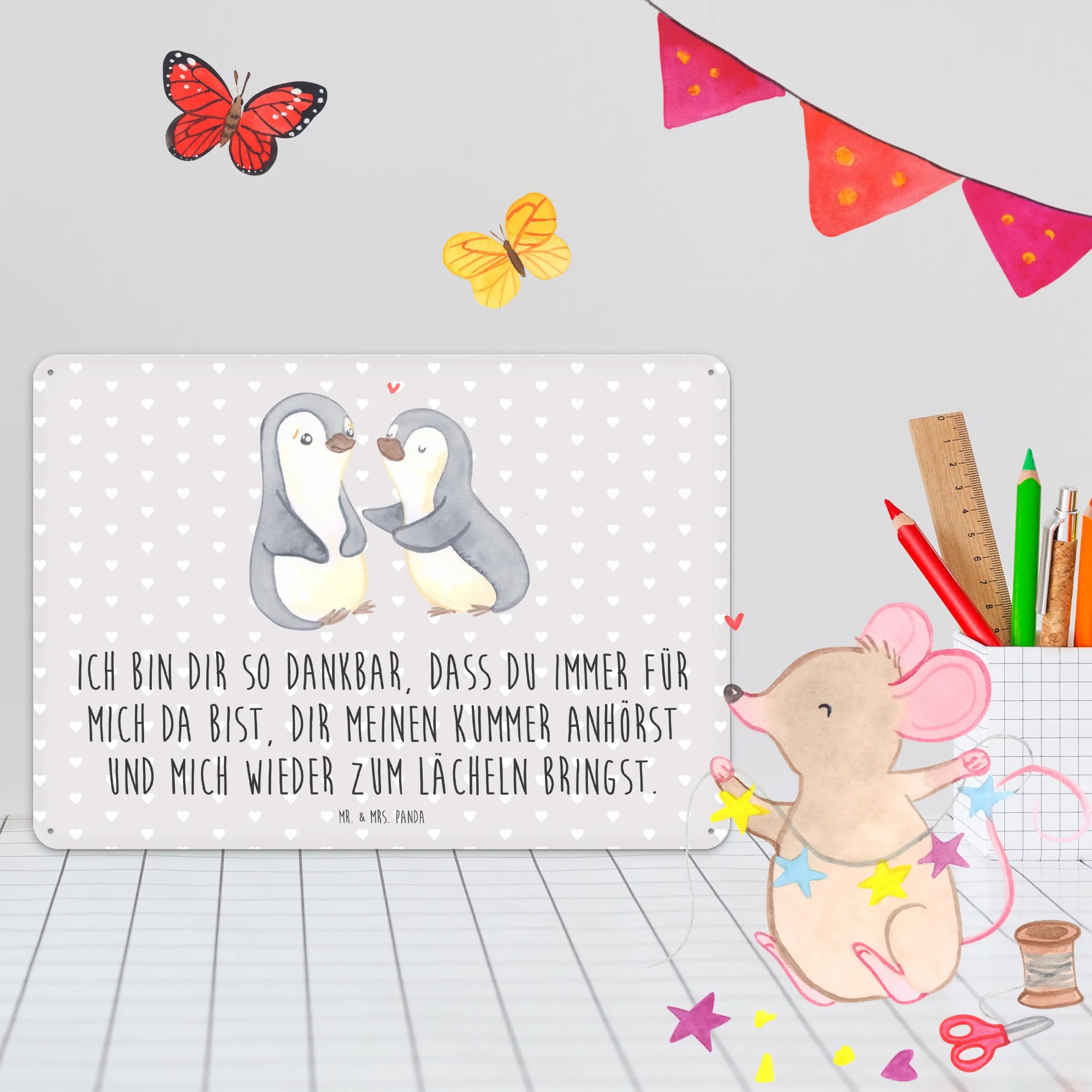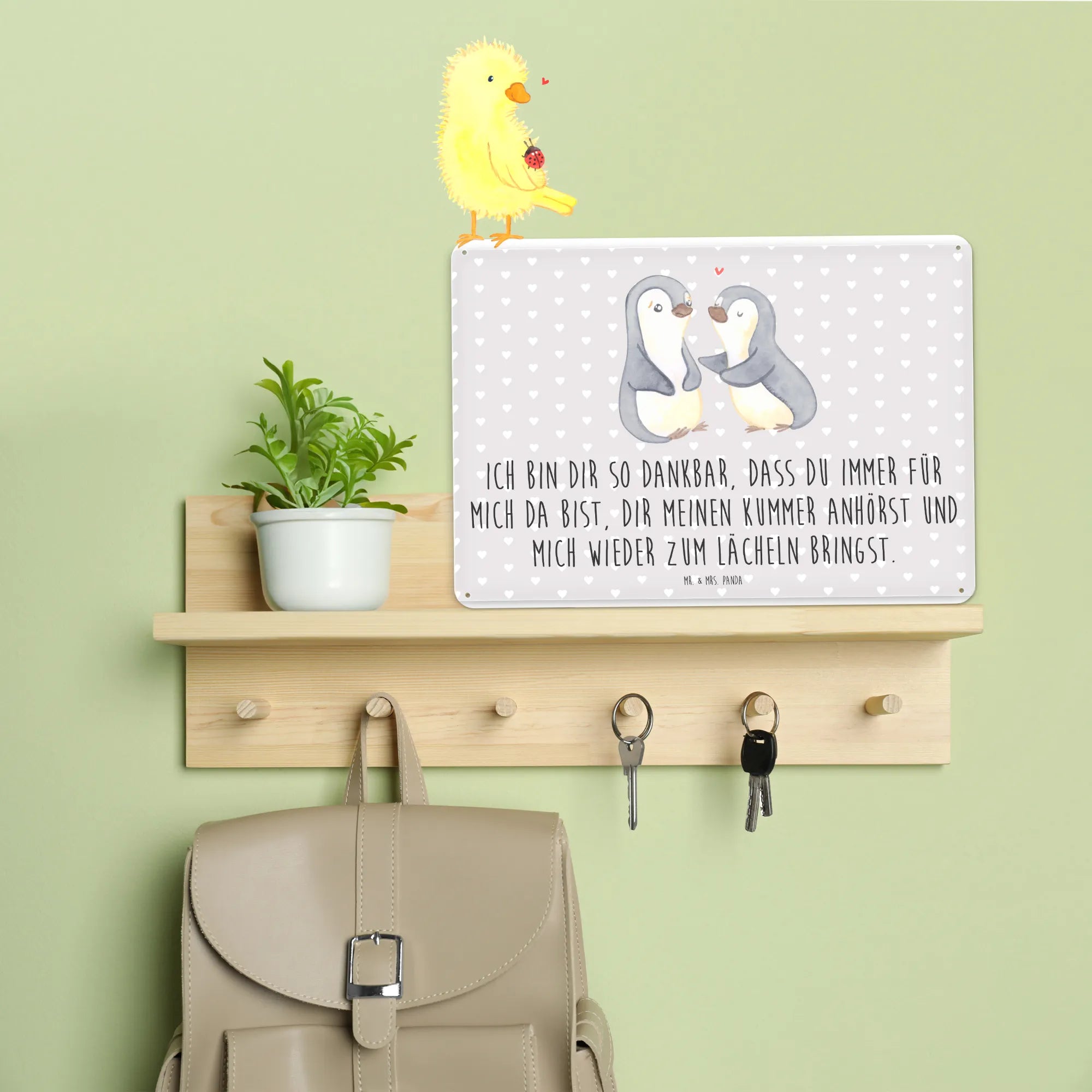 Metalowy szyld pingwiny pocieszyć - DIN A6 - biały