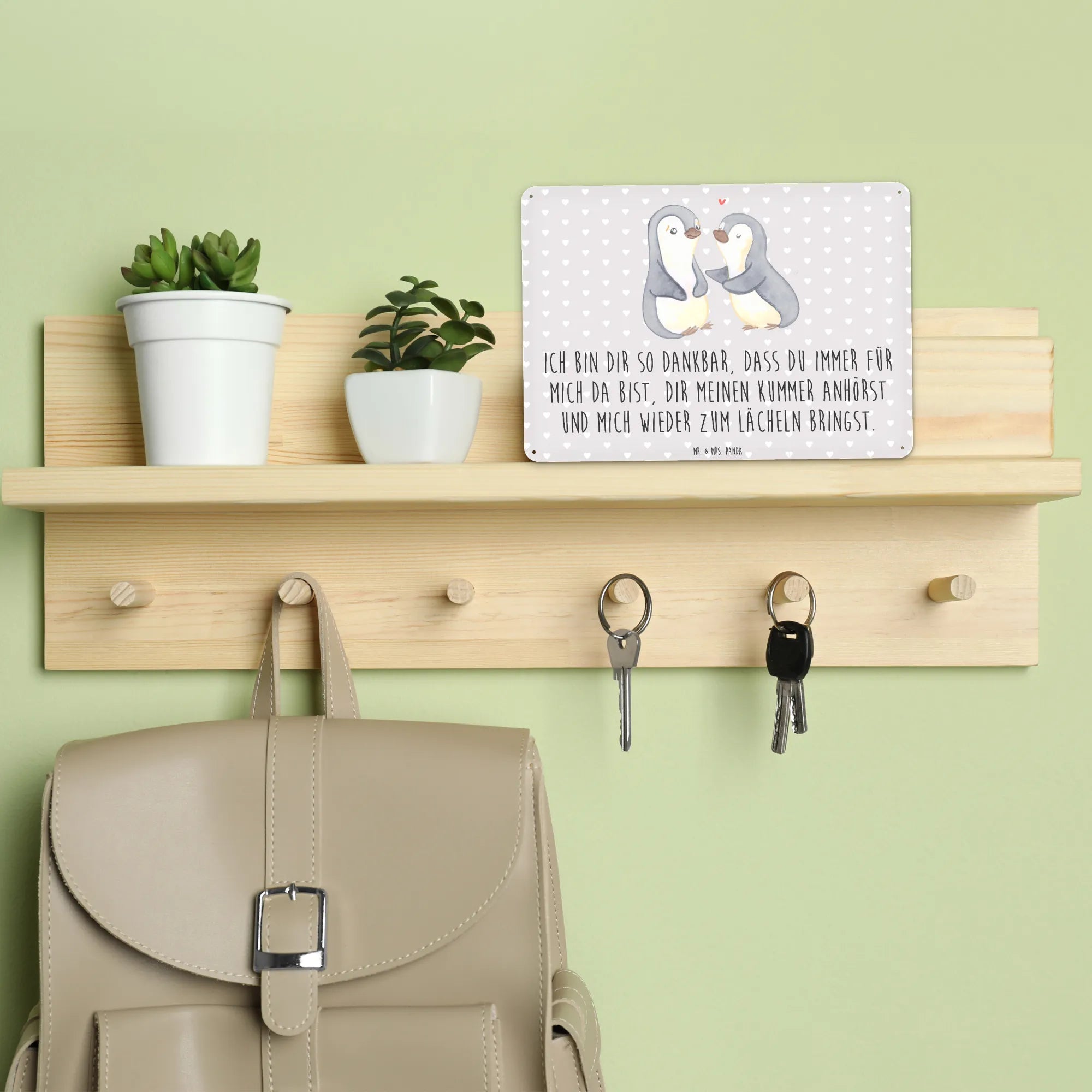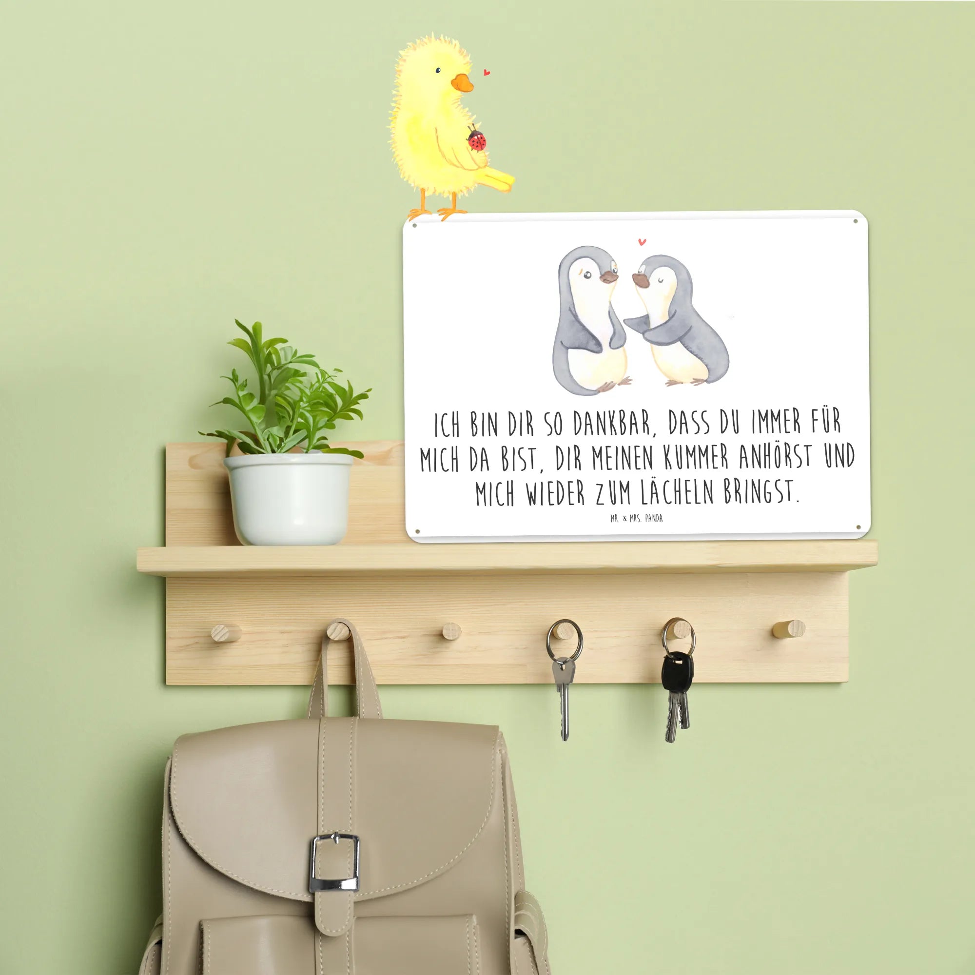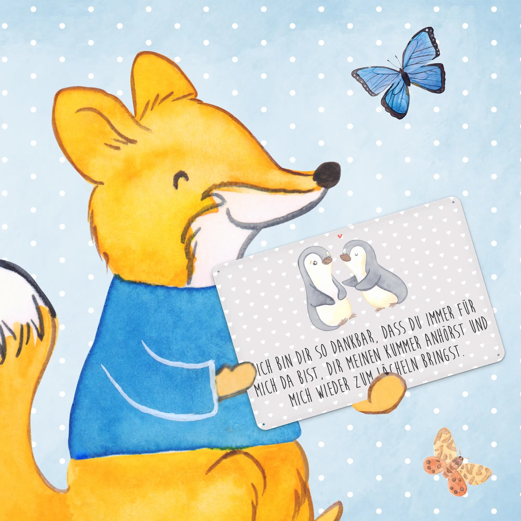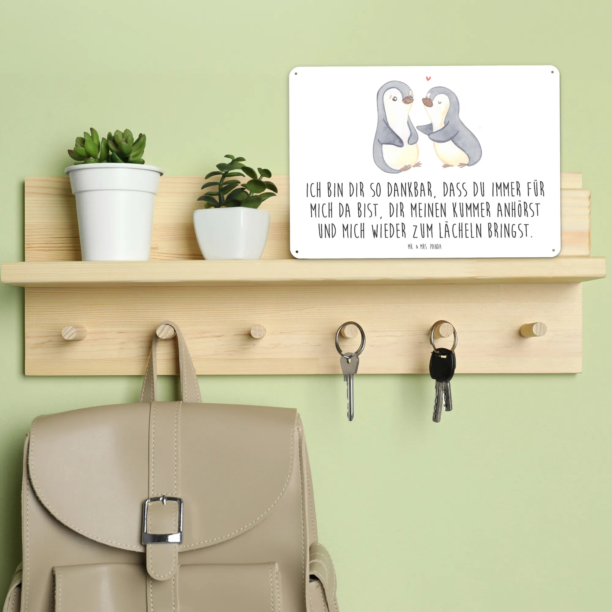 Metalowy szyld pingwiny pocieszyć - DIN A6 - biały