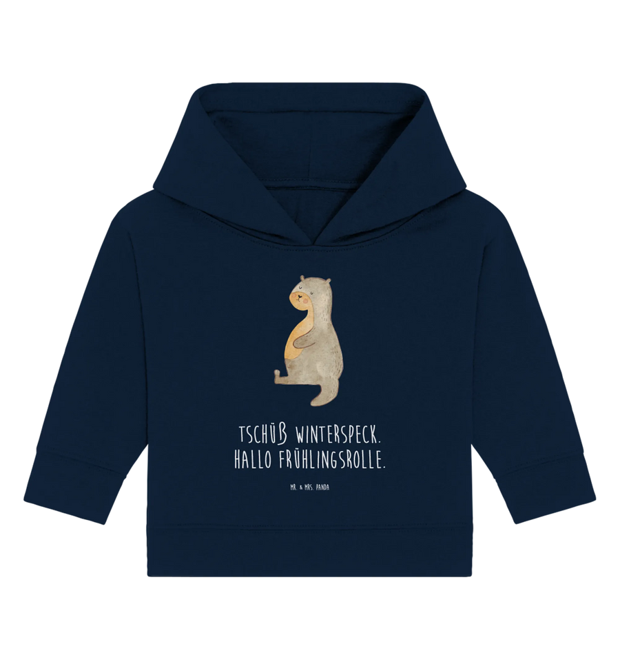 Organiczna bluza z kapturem dla niemowląt wydra brzuch - 12. - 18. Monat - z napisem - French Navy