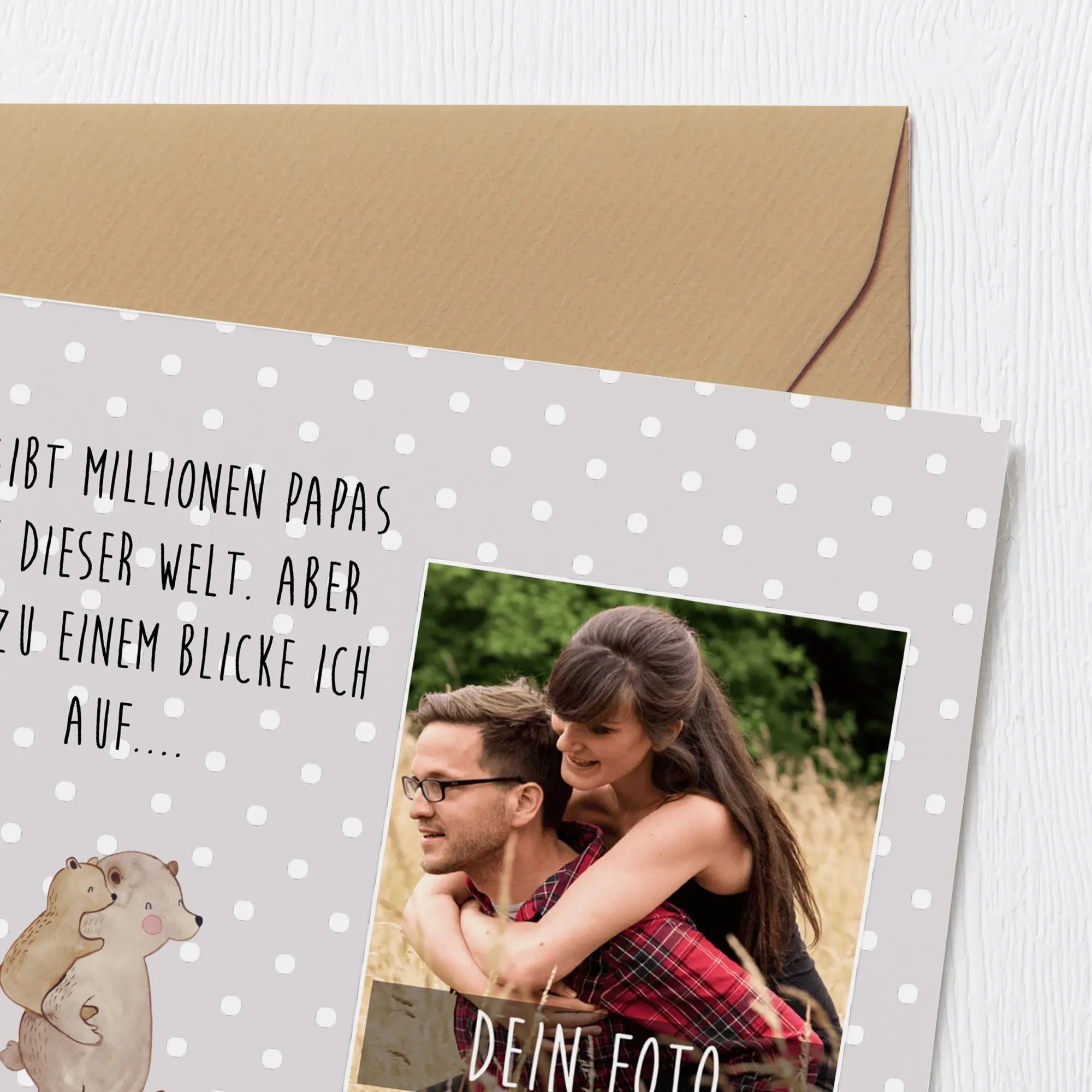 Die personalisierte Foto Deluxe Karte mit dem tollen Papa Bär Motiv von Mr. & Mrs. Panda ist das ideale Geschenk für alle Väter, Papis, Onkels und besonders für den Papa.