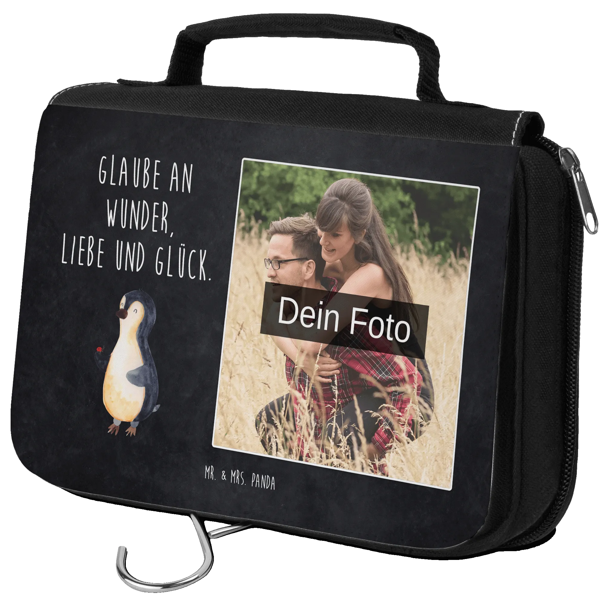 Kulturtasche mit Foto Pinguin Marienkäfer - Eisblau