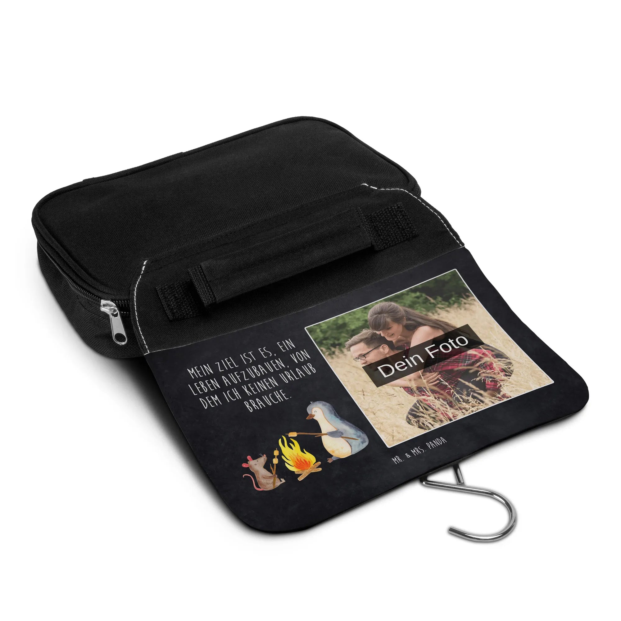 Personalizowana kosmetyczka ze zdjęciem pingwin ognisko - lodowoniebieski