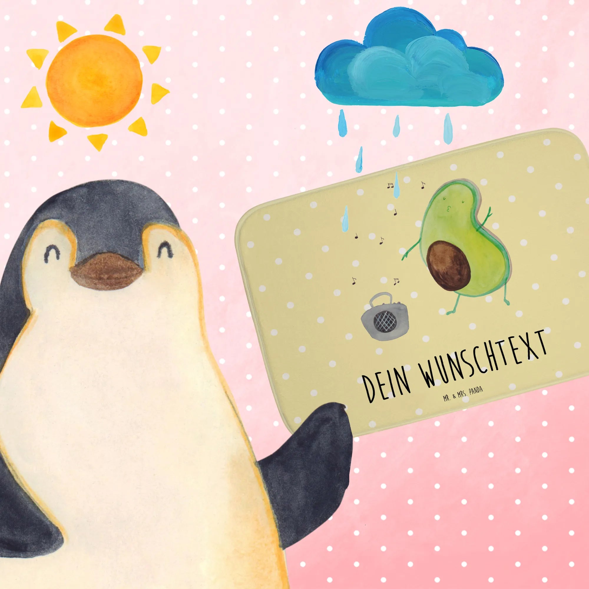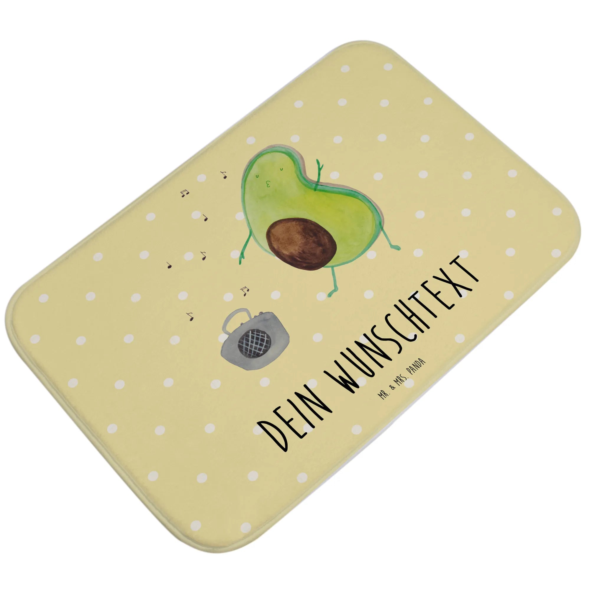 Entdecke den perfekten personalisierten Badvorleger "Avocado tanzt" von Mr. & Mrs. Panda! Dieser wunderschöne Badvorleger ist nicht nur ein stilvolles Accessoire für dein Badezimmer, sondern auch ein echter Hingucker. Die süße Avocado, die fröhlich vor einem Ghettoblaster tanzt, bringt sofort gute Laune und Freude in deinen Raum.