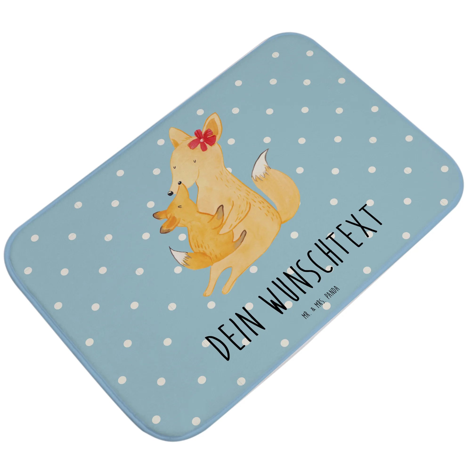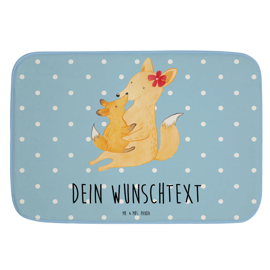 Personalizowana mata łazienkowa Lis Mama - Pastelowy niebieski