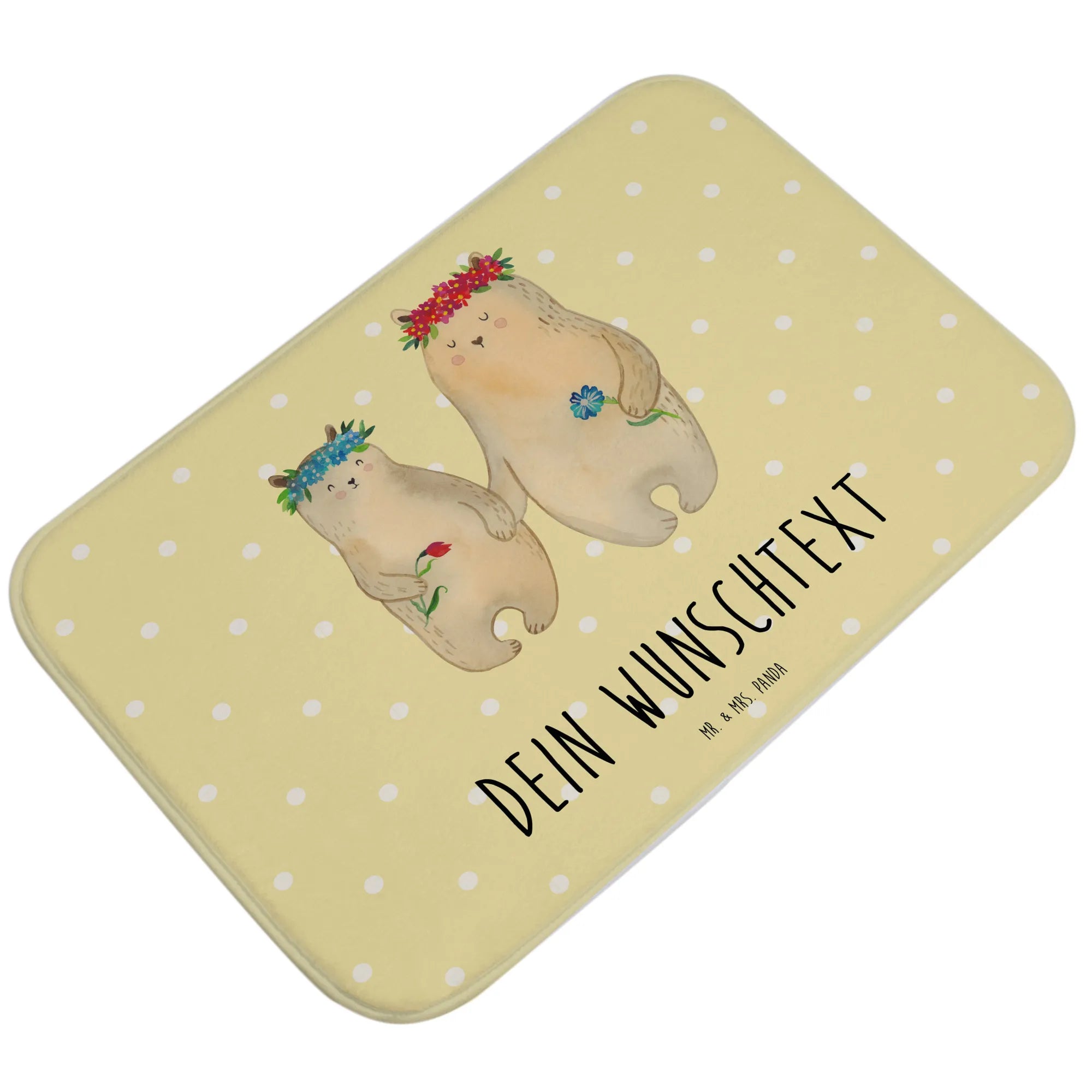 Personalizowana mata łazienkowa Niedźwiedzie z wianuszkiem - Pastelowy niebieski