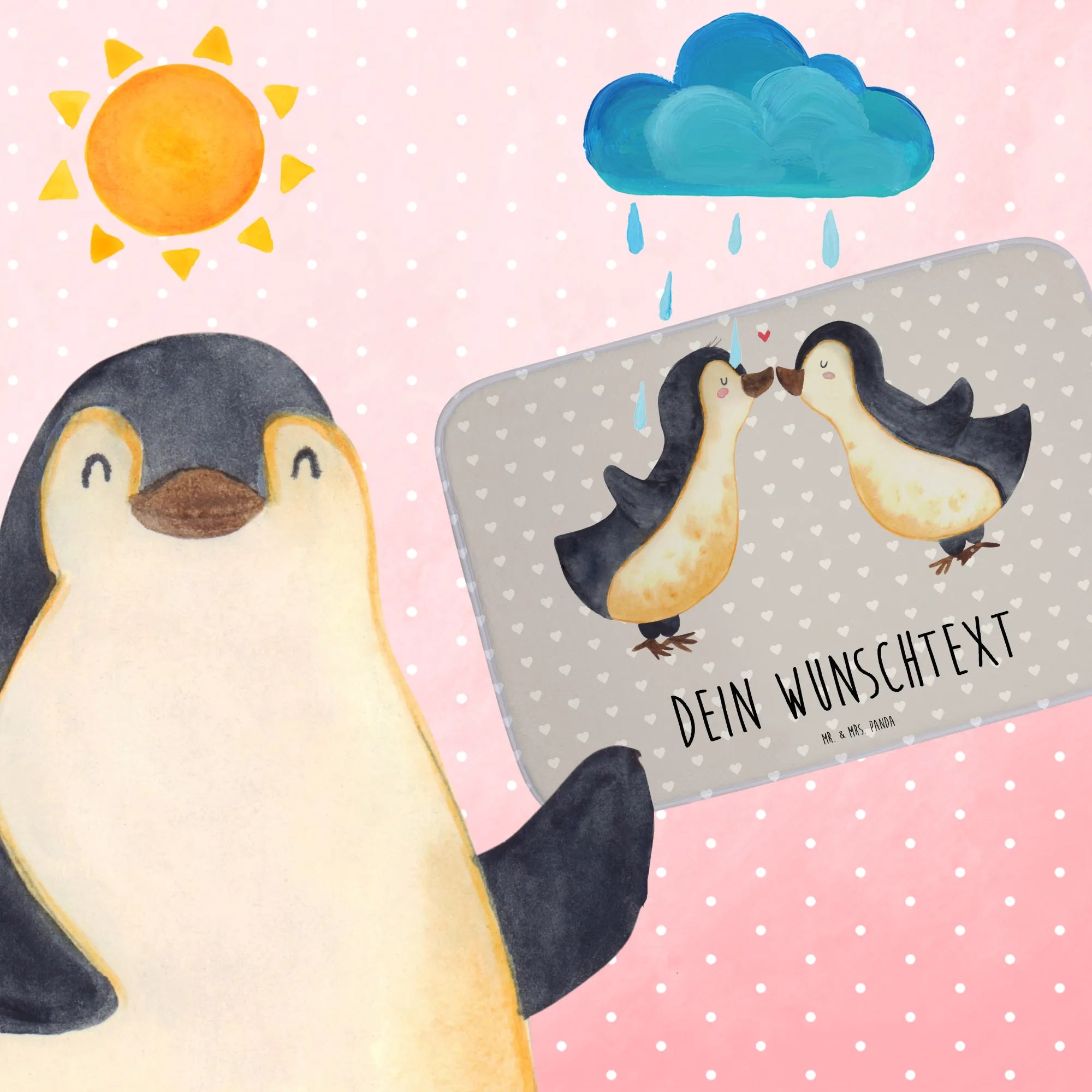 Personalizowana mata łazienkowa Pingwin Miłość