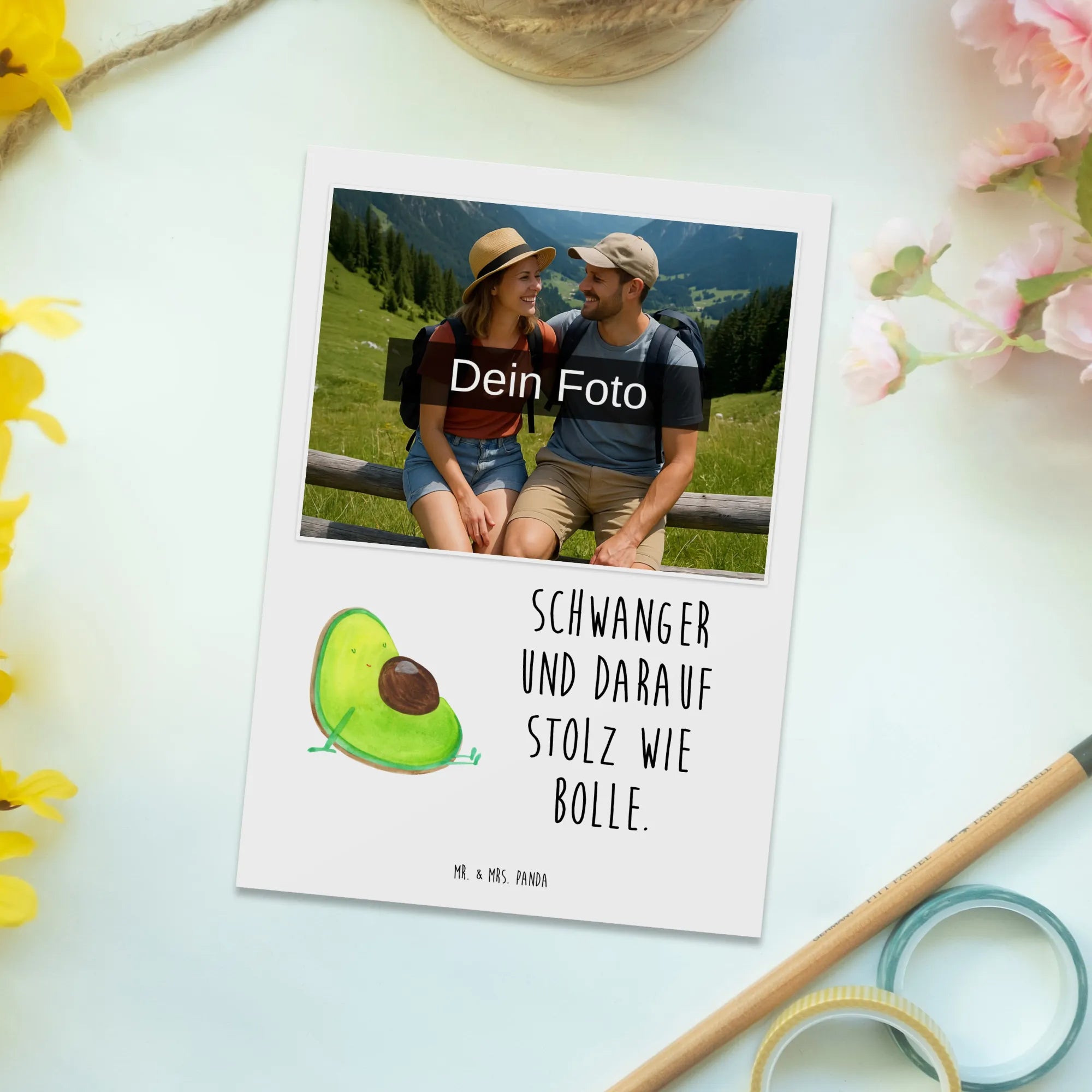 Die personalisierte Foto Postkarte mit dem süßen Motiv "Avocado schwanger" aus der besonderen Avocado Kollektion von Mr. & Mrs. Panda ist das perfekte Geschenk für angehende Mamas und deren Freunde. Diese einzigartige Postkarte bringt nicht nur Freude in die Schwangerschaft, sondern ist auch ein liebevolles Andenken an diese besondere Zeit. Stell dir vor, wie glücklich deine Freundin oder Schwester sein wird, diese Karte zu erhalten, die ihren Babybauch feierlich in Szene setzt. Wenn du nach einem originellen Geschenk für eine Babyparty oder Babyshower suchst, ist diese Karte genau das Richtige!