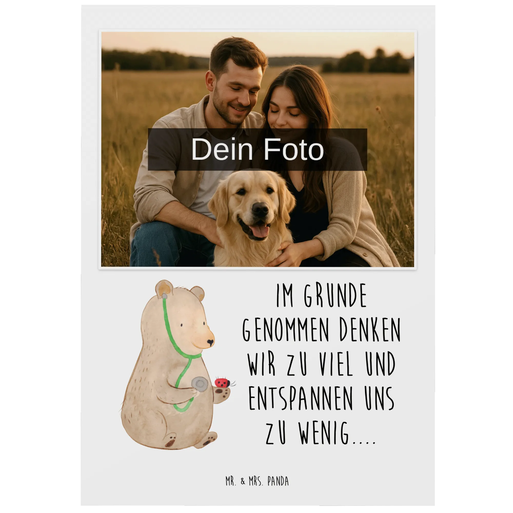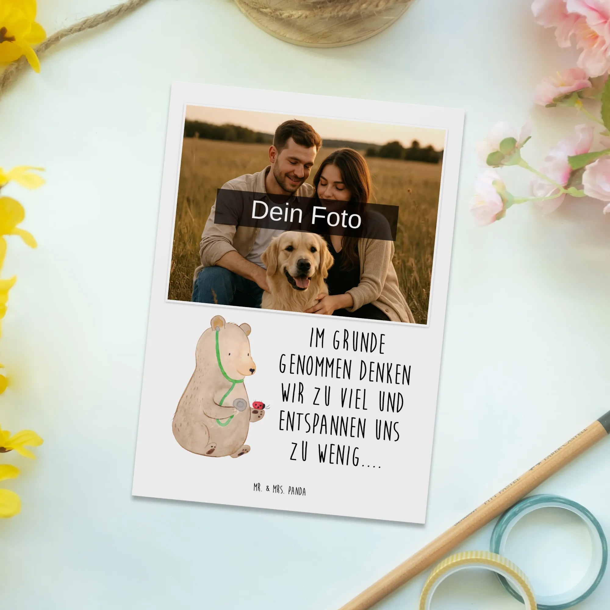 Die personalisierte Foto Postkarte "Bär Arzt" von Mr. & Mrs. Panda ist ein liebevolles Geschenk, das perfekt für jeden Anlass ist. Egal ob Du einen besonderen Menschen zum Geburtstag, zur Hochzeit oder zu einer Taufe beschenken möchtest, diese Postkarte bringt garantiert Freude!