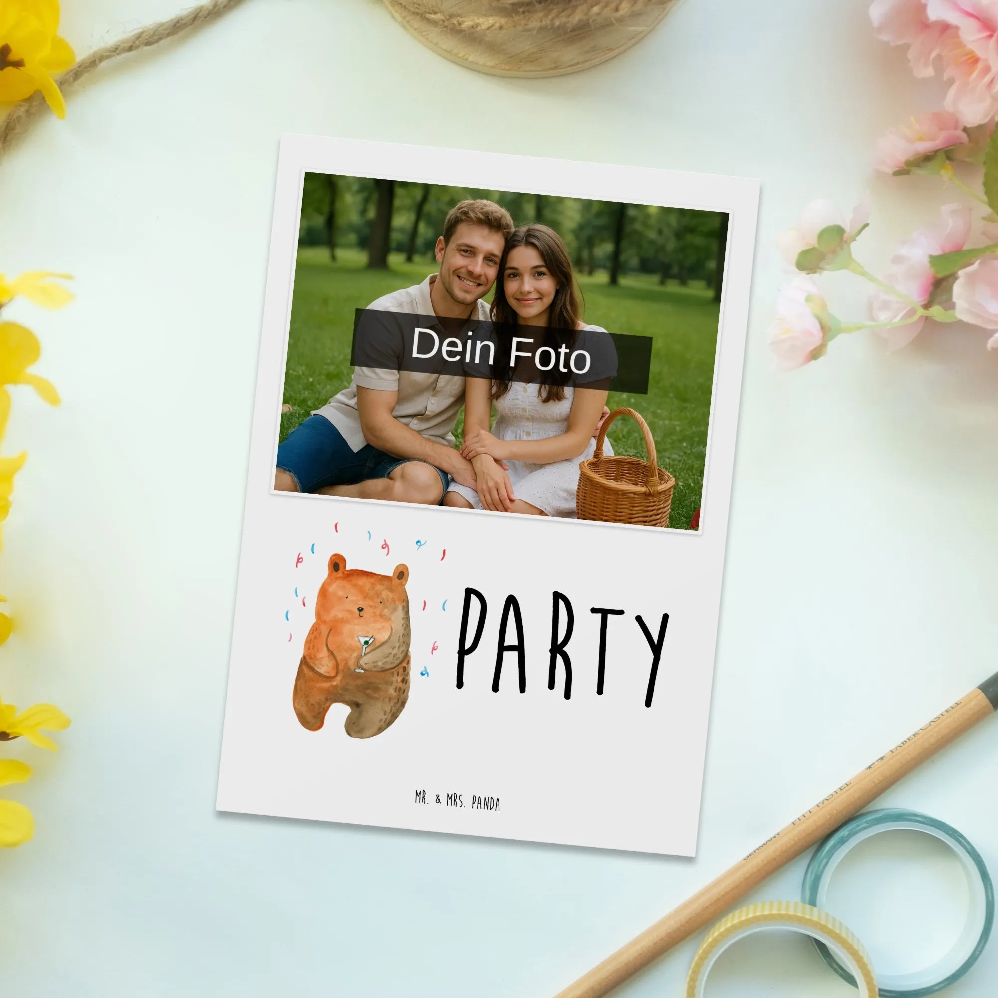Entdecke die persönliche Note unserer einzigartigen Personalisierte Foto Postkarte mit dem süßen Bär Party Motiv! Diese wunderschöne Postkarte, die in der beliebten Kollektion Bär von Mr. & Mrs. Panda kreiert wurde, ist das ideale Geburtstagsgeschenk für kleine und große Feiern. Egal ob für den besten Freund, dein Kind oder als tolle Mitbringsel zu einer Party - diese Postkarte zaubert jedem ein Lächeln ins Gesicht.