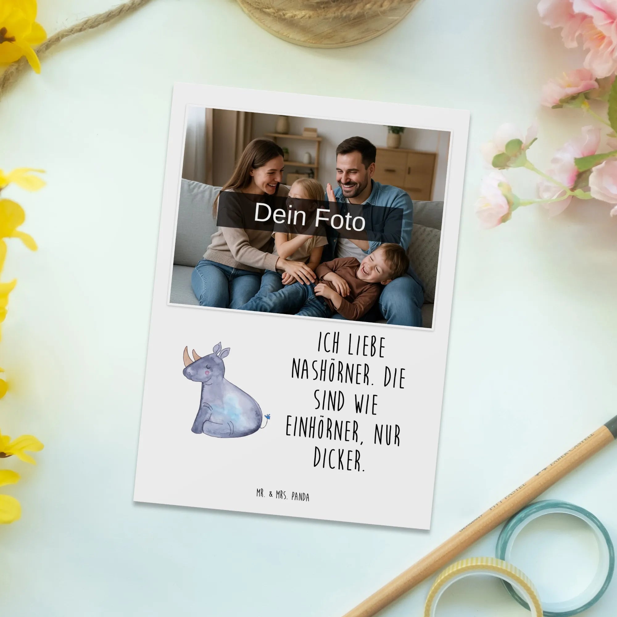 Hochwertiger Druck, liebevolle Gestaltung und ein ganz persönlicher Touch machen diese Foto Postkarte zu einem perfekten Geschenk. Setze deiner Kreativität keine Grenzen und kreiere ein Stück, das nicht nur trivial ist, sondern auch Herzen berührt. Die Einhorn-Kollektion von Mr. & Mrs. Panda steht für Freude, Humor und Leichtigkeit – perfekt für alle, die das Leben lieben und gerne lachen. Lass das Nashorn in dir sprechen und überrasche deine Liebsten mit dieser einzigartigen und humorvollen Postkarte, die nicht nur in Erinnerung bleibt, sondern auch Freude verbreitet!