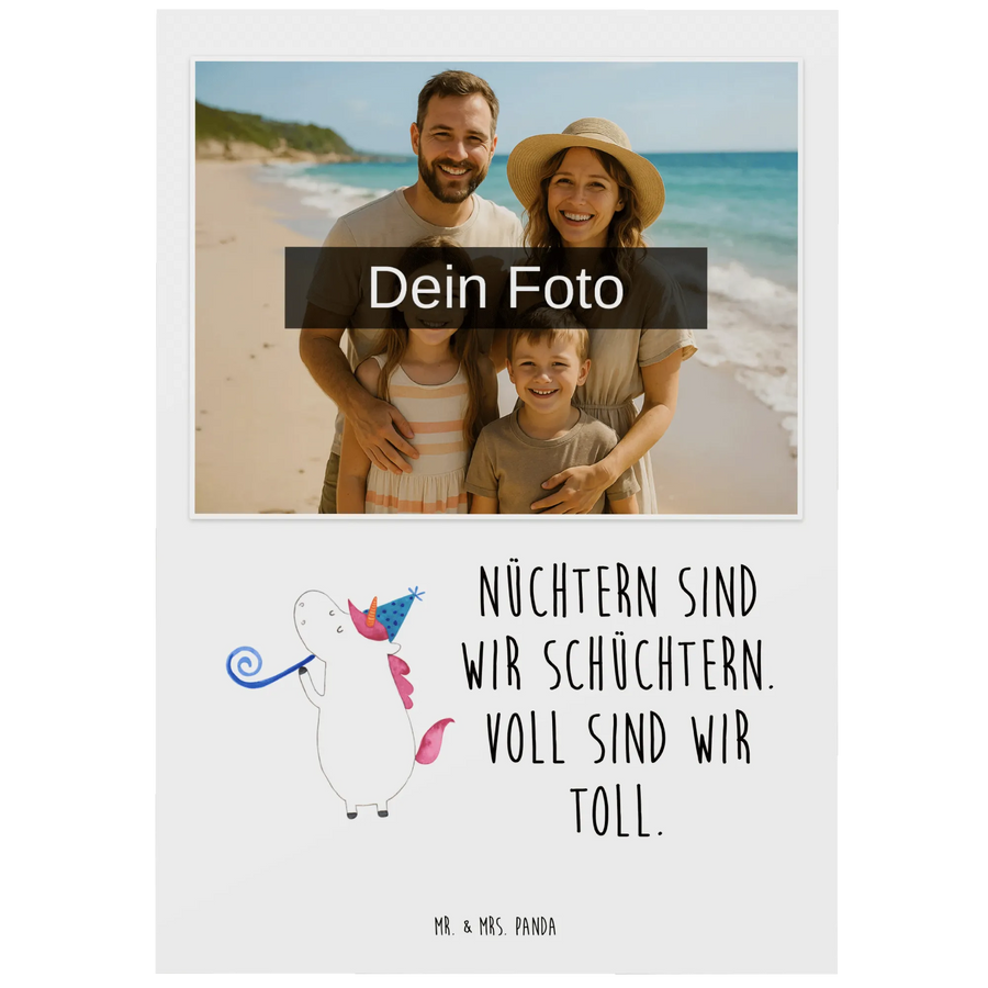 Die personalisierte Foto Postkarte "Einhorn Party" aus der einzigartigen Einhorn-Kollektion von Mr. & Mrs. Panda ist das perfekte Geschenk für alle Einhorn-Fans und Party-Liebhaber. Diese Postkarte bringt nicht nur Farbe und Freude in jeden Raum, sondern auch die Möglichkeit, sie individuell mit deinem eigenen Foto und Wunschtext zu gestalten.