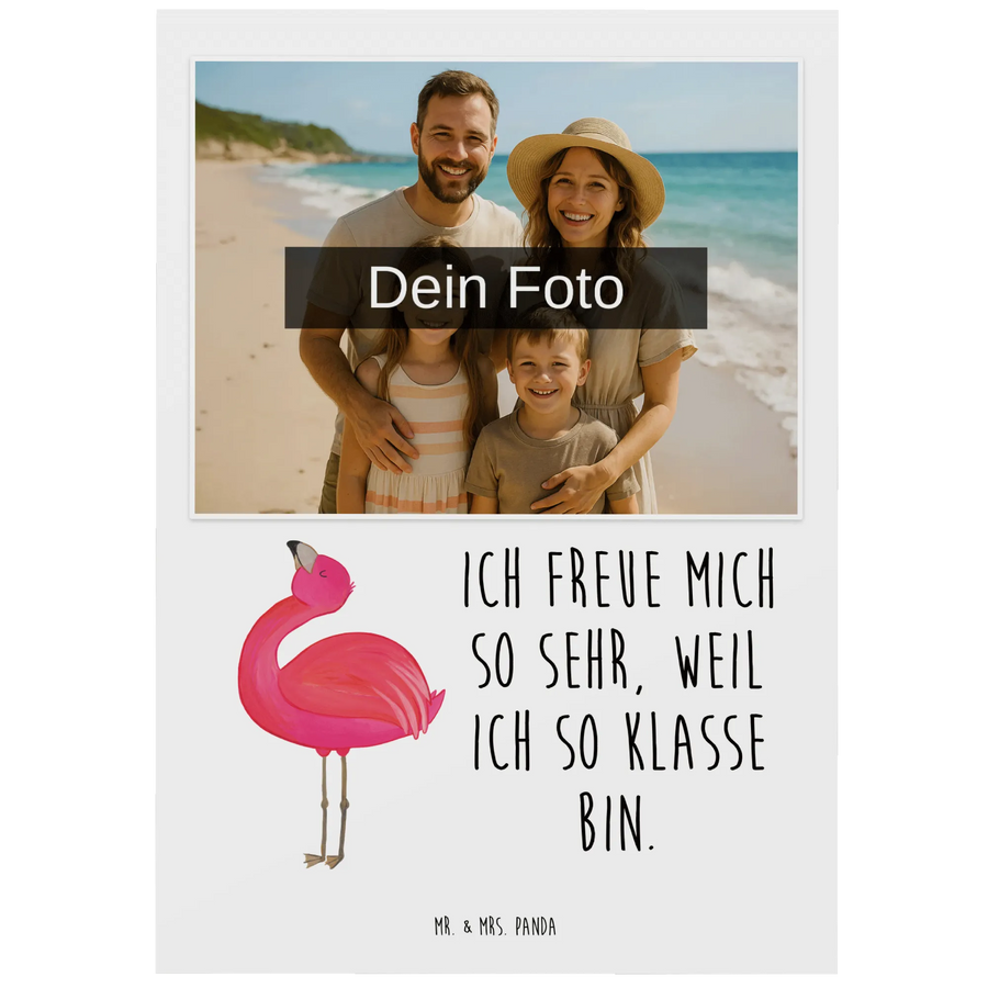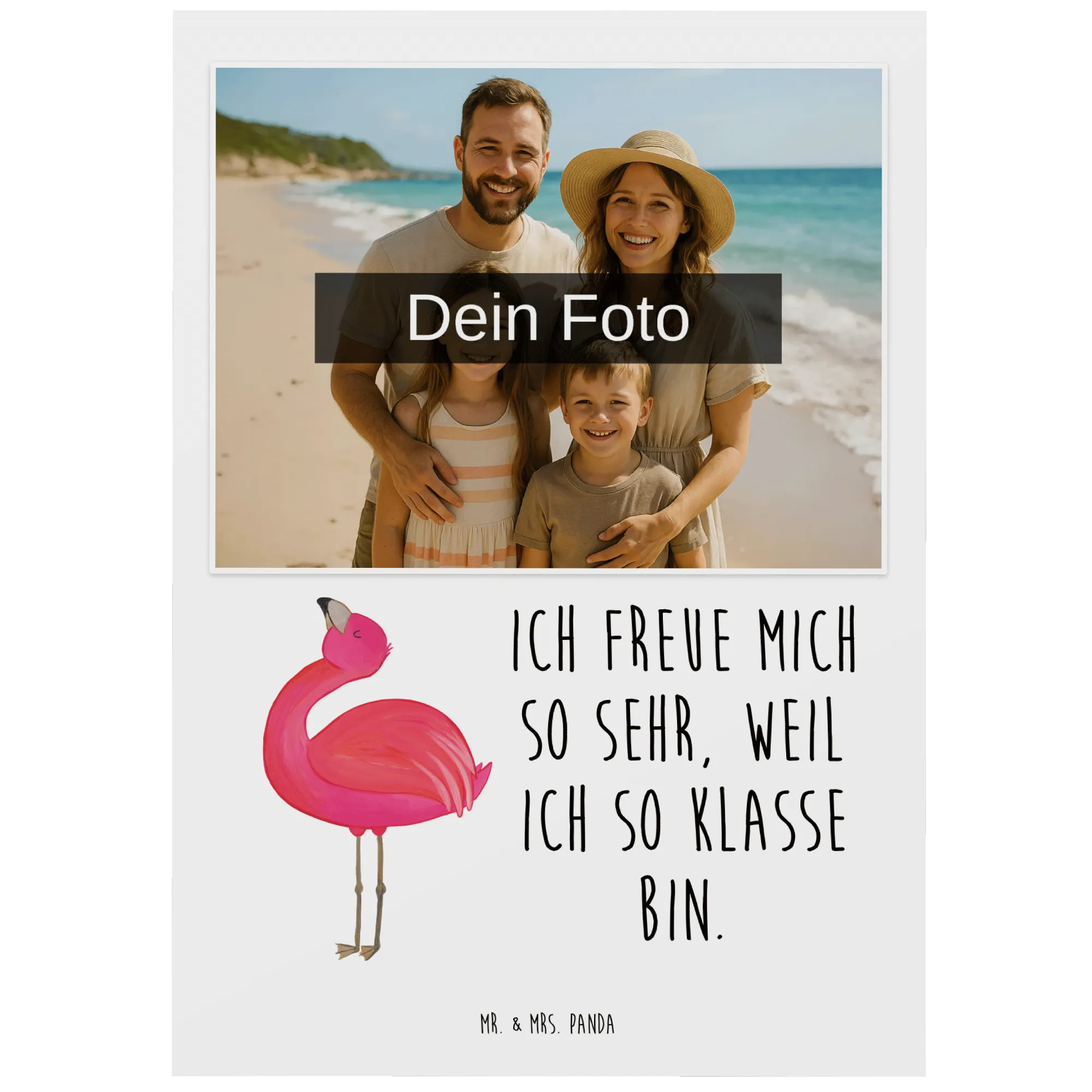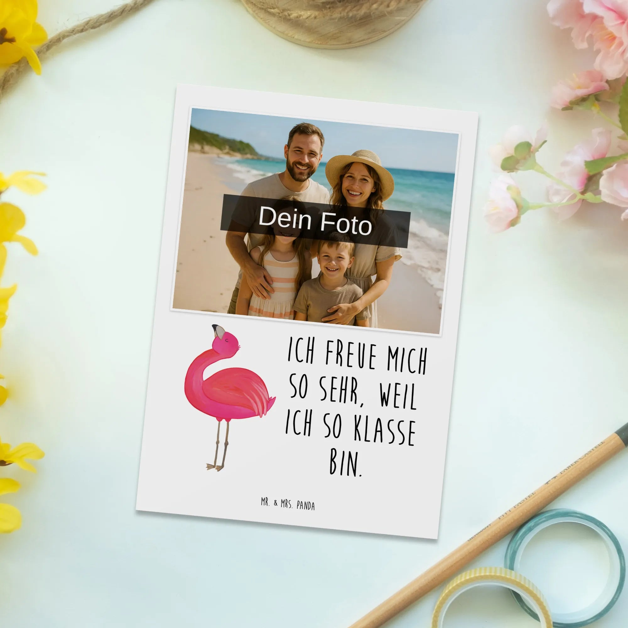 Die persönliche Foto-Postkarte "Flamingo stolz" von Mr. & Mrs. Panda ist das perfekte Geschenk für alle, die Freude an Selbstakzeptanz und Selbstliebe haben.