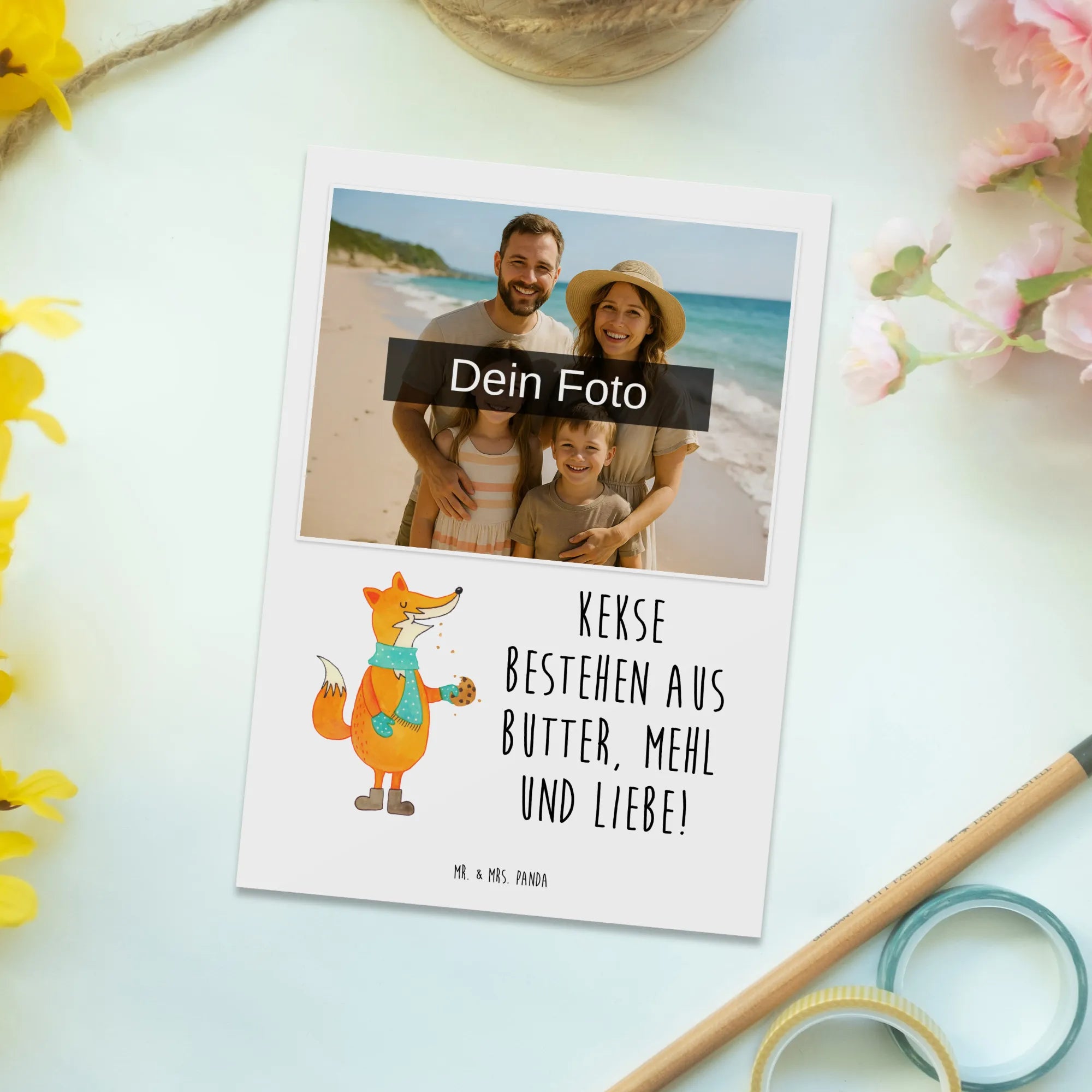 Du kannst dein Foto individuell anpassen und mit dem süßen Spruch: 'Kekse bestehen aus Butter, Mehl und Liebe!' kombinieren. So wird jede Postkarte zu einem echten Einzelstück! Die Fuchs Kollektion von Mr. & Mrs. Panda spiegelt die Lebensfreude und Geselligkeit dieser schlauen Tiere wider.