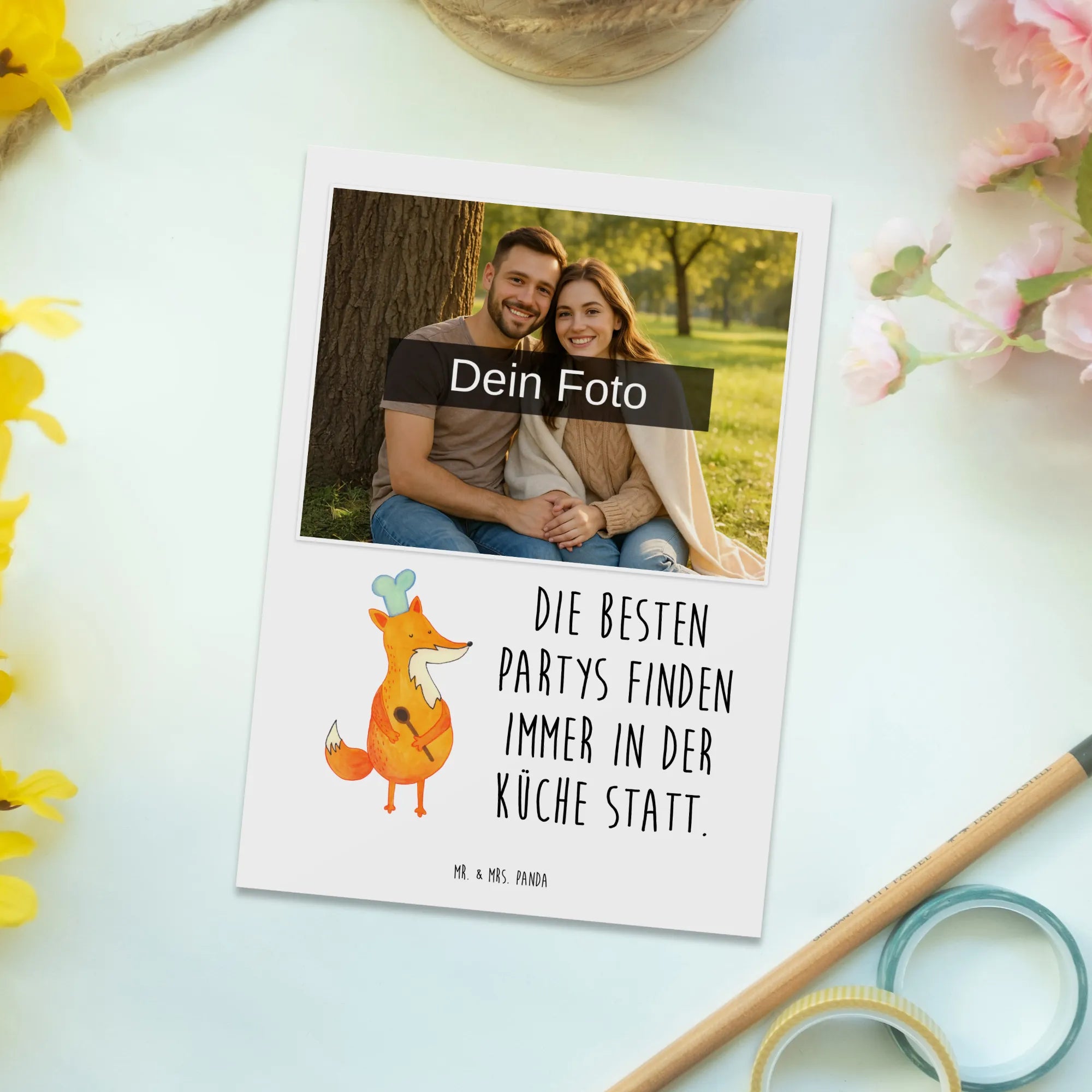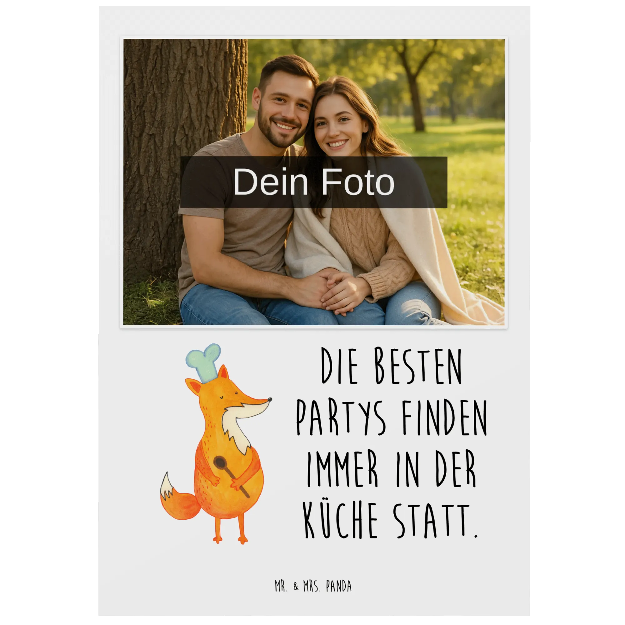 Personalisierte Foto Postkarte Fuchs Koch – Mr. & Mrs. Panda