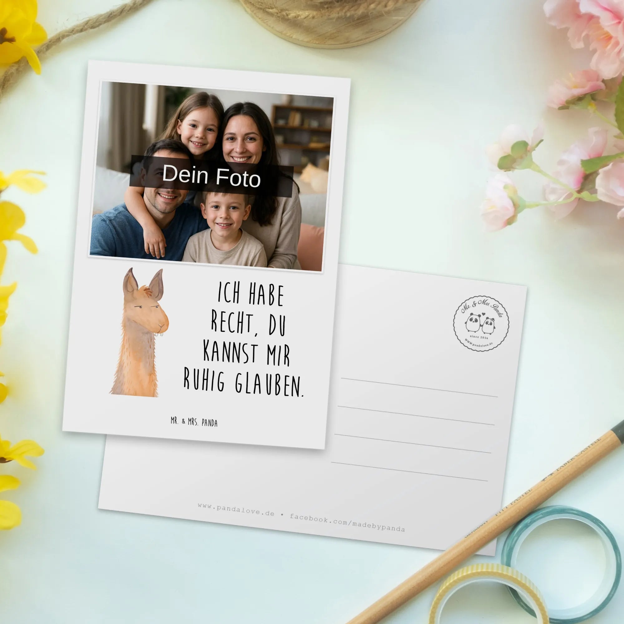 Die Lama-Kollektion von Mr. & Mrs. Panda enthält viele liebevoll handgezeichnete Designs, die jedes Geschenk zu etwas Einzigartigem machen. Diese Postkarte ist dazu gedacht, Freude zu verbreiten und als Erinnerungsstück zu dienen, das in jeder Wohnung einen schönen Platz findet. Überrasche deine Liebsten mit dieser charmanten Karte und zeige, dass du an sie denkst – sie werden es dir danken!