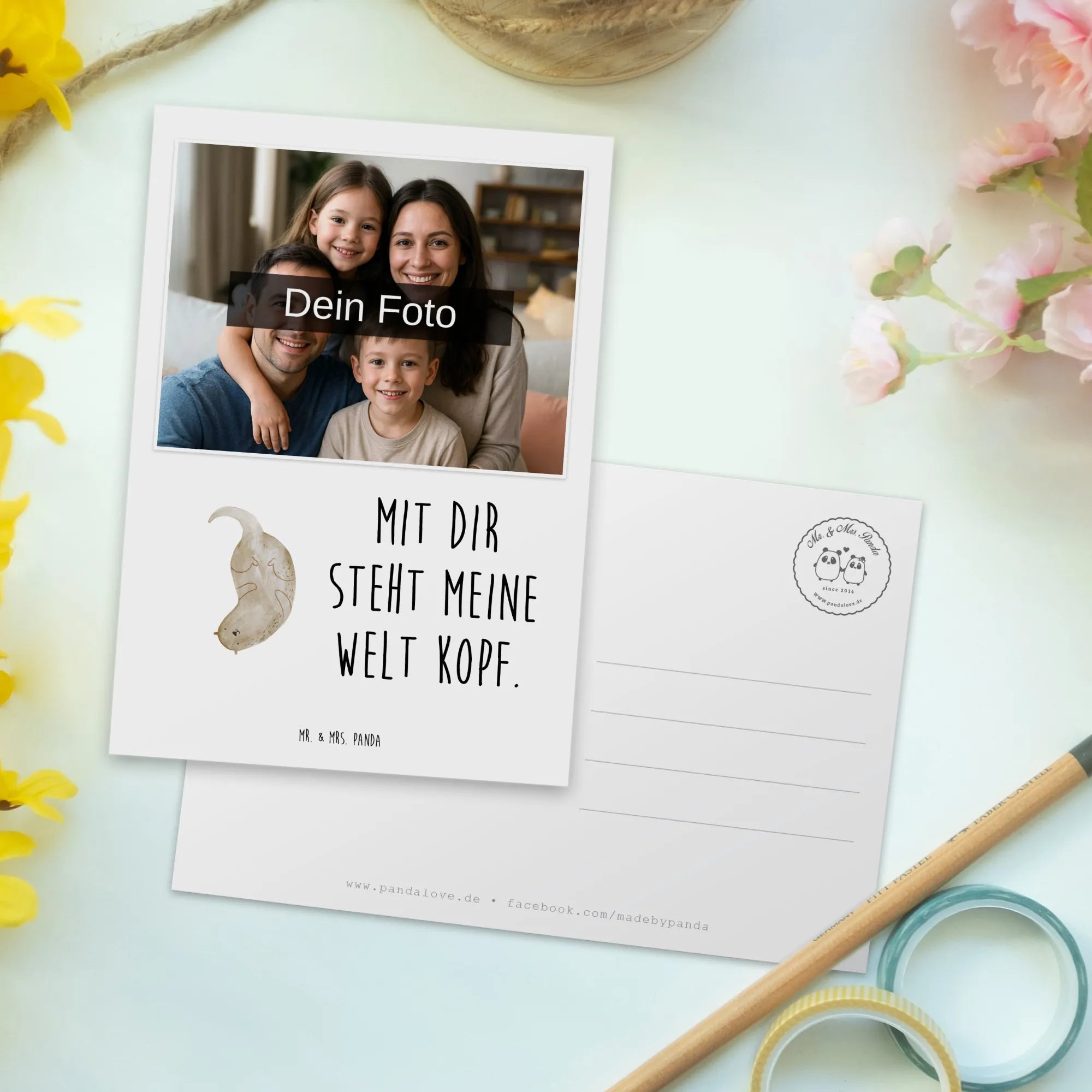 Falls du auf der Suche nach dem perfekten Geschenk für einen Otter-Fan bist, dann ist die personalisierte Foto Postkarte mit dem Motív "Otter kopfüber" aus der Otter-Kollektion von Mr. & Mrs. Panda genau das Richtige! Diese liebevoll gestaltete Postkarte bringt ein Lächeln in jedes Gesicht und zaubert Freude in den Alltag.
